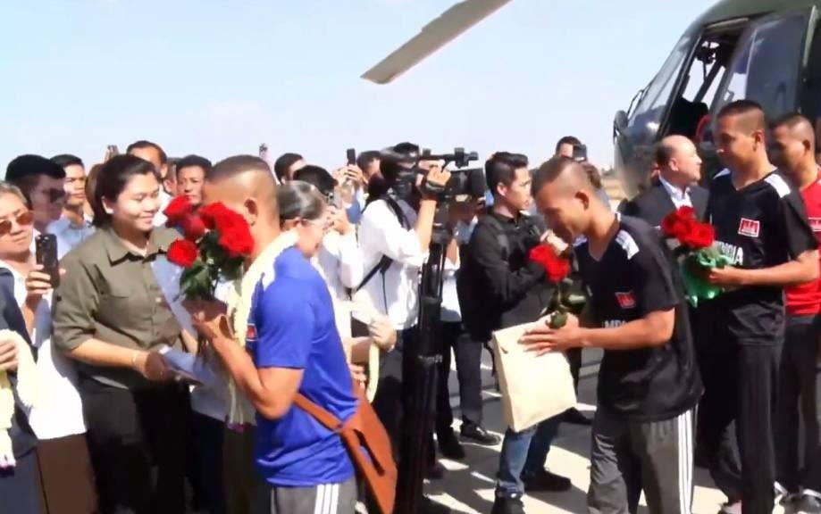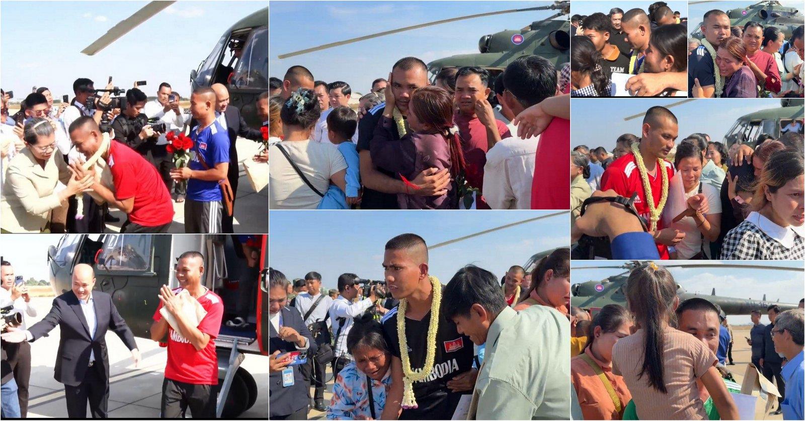(ភ្នំពេញ)៖ វីរៈកងទ័ពកម្ពុជា១៨រូប បានធ្វើដំណើរតាមឧទ្ធម្ភាគចក្រមកដល់រាជធានីភ្នំពេញហើយ ក្រោយភាគីថៃដោះលែងប្រគល់ឲ្យមកកម្ពុជាវិញហើយ នៅព្រឹកថ្ងៃទី៣១ ខែធ្នូ ឆ្នាំ២០២៥ បន្ទាប់ពីចាប់ខ្លួនអស់រយៈពេល១៥៥ថ្ងៃ ពោលគឺកាលពីថ្ងៃទី២៩ ខែកក្កដា ឆ្នាំ២០២៥៕