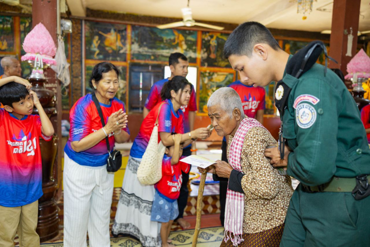 (សៀមរាប)៖ លោក លី វណ្ណៈ នាយករដ្ឋបាលសាលាខេត្តសៀមរាប នៅថ្ងៃទី៣១ ខែធ្នូ ឆ្នាំ២០២៥នេះ បានដឹកនាំសប្បុរសជនមកពីសហរដ្ឋអាមេរិក ចុះសួរសុខទុក្ខ និងសំណេះសំណាលជាមួយបងប្អូនប្រជាពលរដ្ឋភៀសសឹក ១៥០គ្រួសារ កំពុងស្នាក់ នៅបណ្តោះអាសន្នក្នុងមណ្ឌលសុវត្ថិភាព វត្តប្រាសាទគោកចក សង្កាត់គោកចក ក្រុងសៀមរាប។ ក្នុងនោះបានចែកជូនថវិកា ក្នុងមួយគ្រួសារ ៥ម៉ឺនរៀល និងសិស្សានុសិស្សម្នាក់ៗ ៥ពាន់រៀល ព្រមទាំងប្រគេនបច្ច័យដល់ចៅអធិការផងដែរ។