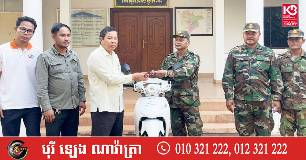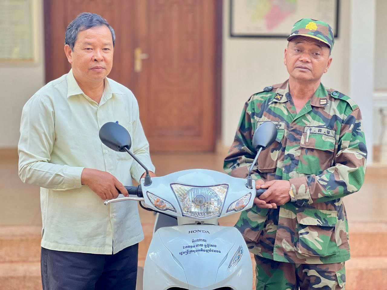 ប្រធានមន្ទីរអភិវឌ្ឍន៍ជនបទខេត្តព្រះវិហារ នាំម៉ូតូ១គ្រឿង ថវិកា គ្រឿងឧបភោគបរិភោគ និងសម្ភារៈអានាម័យ ទឹកស្អាត ជូនវីរកងទ័ពជួរមុខ ទិសជាំតែ–បុស្បូវ ខេត្តព្រះវិហារ