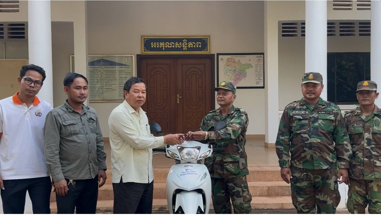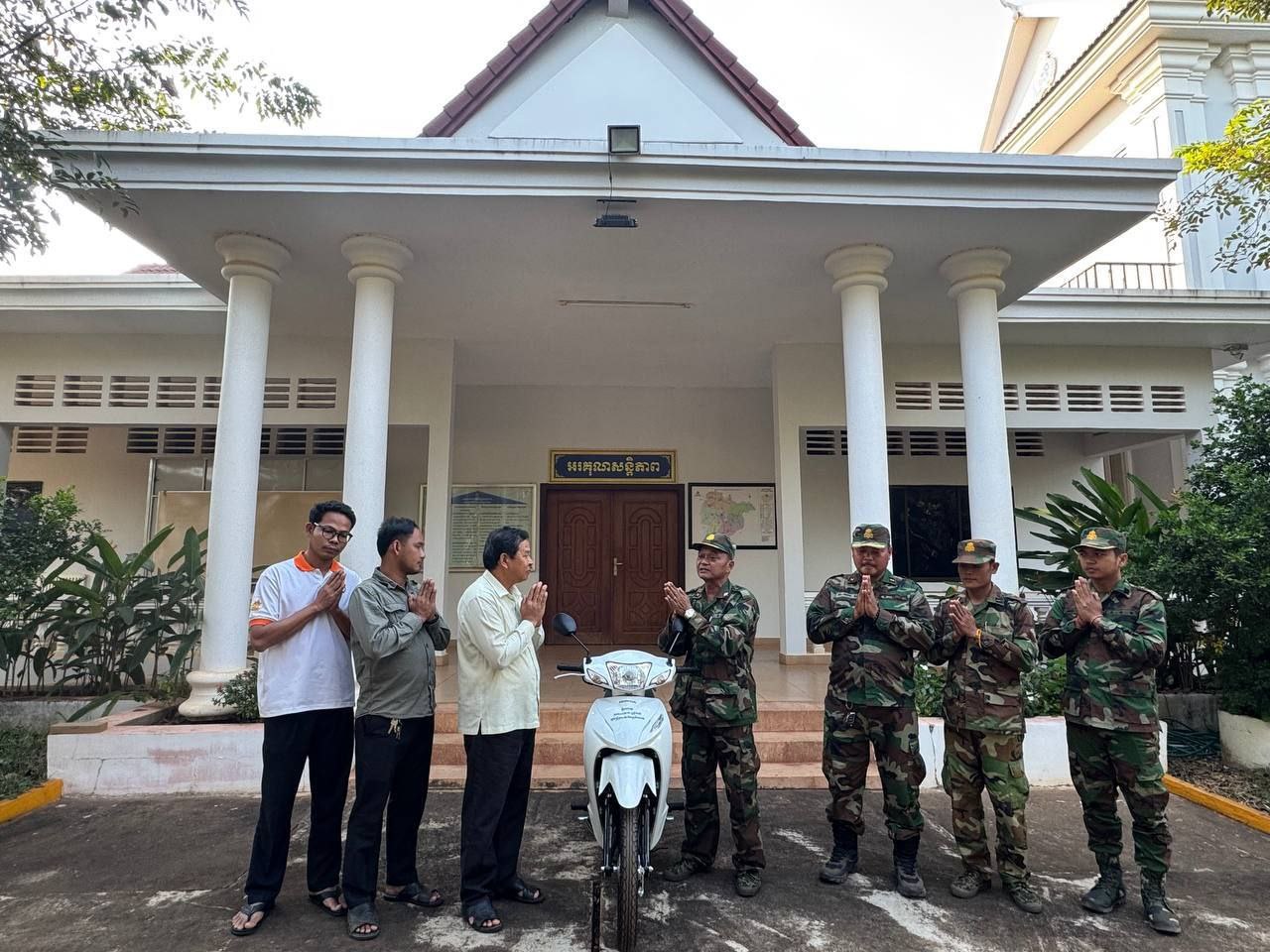 (ព្រះវិហារ)៖ ម៉ូតូ១គ្រឿង និង ថវិកា គ្រឿងឧបភោគបរិភោគ សម្ភារៈអនាម័យ ទឹកស្អាត ដែលជាអំណោយរបស់លោក ឆាយ ឫទ្ធិសែន រដ្ឋមន្រ្តីក្រសួងអភិវឌ្ឍន៍ជនបទ ត្រូវបានលោក ម៉ប់ ធិរិត ប្រធានមន្ទីរអភិវឌ្ឍន៍ជនបទខេត្តព្រះវិហារ និងក្រុមការងារ បាននាំយកទៅប្រគល់ជូនមេបញ្ជាការផ្នែកសឹករងត្បែងមានជ័យ សម្រាប់ប្រើប្រាស់ក្នុងអង្គភាព នារសៀលថ្ងៃទី៣០ ខែធ្នូ ឆ្នាំ២០២៥។