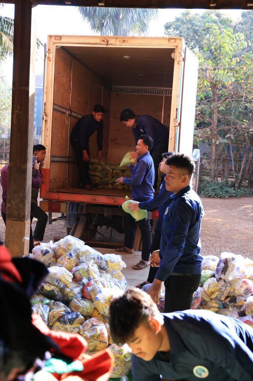 ក្នុងបុព្វហេតុការពារជាតិ! ក្រុមយុវជនបូជាការពារយុត្តិធម៌ ក្រោមការចង្អុលបង្ហាញរបស់អ្នកឧកញ៉ា ឡេង ណាវ៉ាត្រា បាននាំយកស្បៀងប្រគល់ជូនវីរកងទ័ព និងជនភៀសសឹក