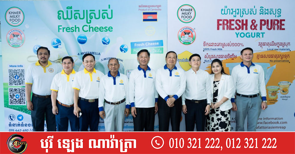 (ភ្នំពេញ)៖ ថ្ងៃពុធ ១២កើត ខែបុស្ស ឆ្នាំម្សាញ់ សប្តស័ក ពុទ្ធសករាជ ២៥៦៩ ត្រូវនឹងថ្ងៃទី៣១ ខែធ្នូ ឆ្នាំ២០២៥ ឧកញ៉ា តែ តាំងប៉ ប្រធានក្រុមប្រឹក្សាភិបាល សមាគមមូលនិធិសម្តេចតេជោ និង FASMEC បានដឹកនាំសមាជិកក្រុមប្រឹក្សាភិលបាល អញ្ជើញទស្សនកិច្ចសិក្សានិងស្វែងយល់ពី ចង្វាក់ផលិតកម្មរបស់សហគ្រាស ខ្មែរមីលឃីហ៊្វូត Khmer Milky Food Co.,LTD. ដែលផលិតឈីស និមិត្តសញ្ញា ឡាហ្វាតតូរៀ (LA FATTORIA )។