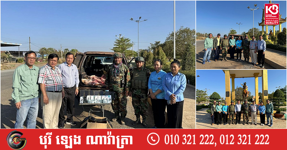 លោកបណ្ឌិត ទ្រី សុធារិទ្ធ នាយកសាលាជាតិផែនការ និងស្ថិតិ នៃក្រសួងផែនការ ដឹកនាំក្រុមការងារនាំស្បៀង សម្ភារៈ ប្រគល់ជូនវីរកងទ័ពជួរមុខ អង្គភាពកងពលតូចអន្តរាគមន៍លេខ៧ ឈរជើងទិសភ្នំខ្មោច