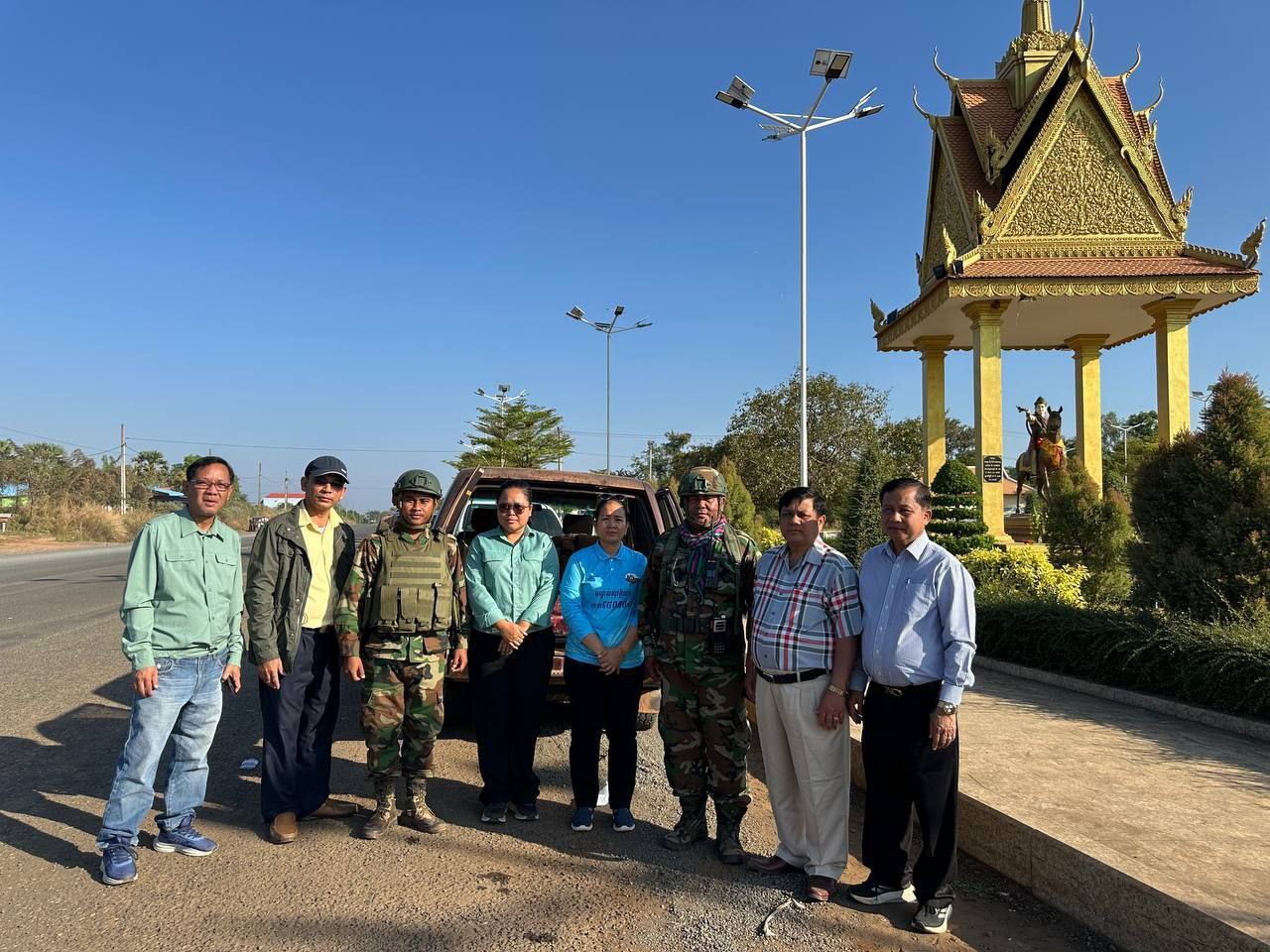 (ព្រះវិហារ)៖ លោកបណ្ឌិត ទ្រី សុធារិទ្ធ នាយកសាលាជាតិផែនការ និងស្ថិតិ នៃក្រសួងផែនការ នៅថ្ងៃទី៣១ ខែធ្នូ ឆ្នាំ២០២៥ បានដឹកនាំក្រុមការងារ នាំអំណោយជាស្បៀងអាហារ សម្ភារៈប្រើប្រាស់ យកមកប្រគល់ជូនវីរកងទ័ពជួរមុខ នៃអង្គភាពកងពលតូចអន្តរាគមន៍លេខ៧ ដែលកំពុងឈរជើងការពារទឹកដីនៅទិសភ្នំខ្មោច សមរភូមិទិសទី១ប្រាសាទព្រះវិហារ។