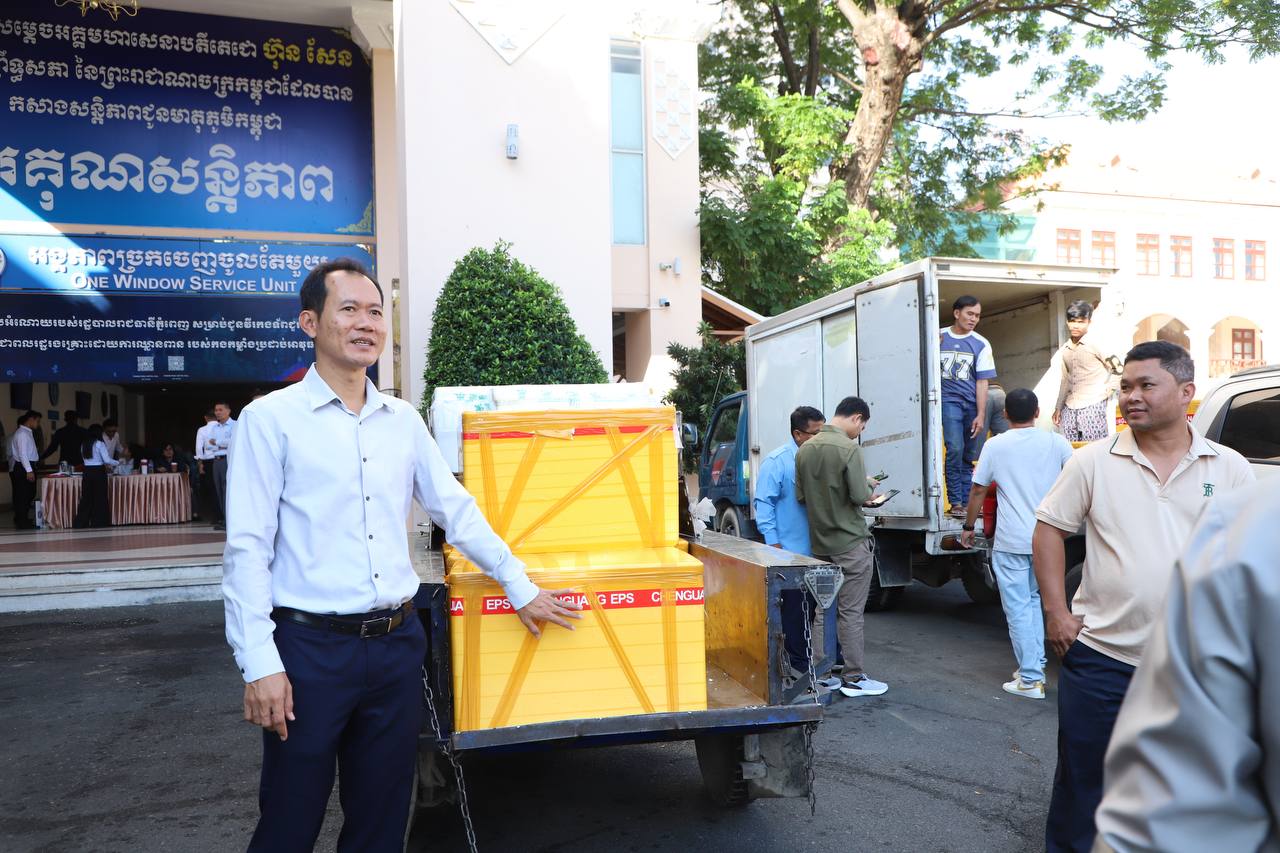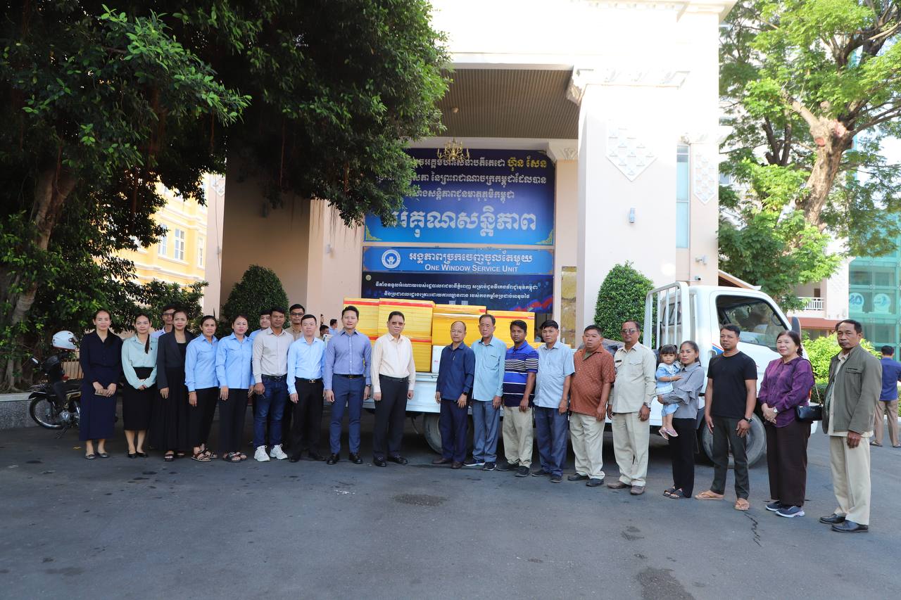 នាថ្ងៃទី៣១ ខែធ្នូ ឆ្នាំ២០២៥នេះ លោក ឆាយ វីរៈ អភិបាលរង និងលោក ហួត ហៃ តំណាងលោក ឃួង ស្រេង អភិបាលរាជធានីភ្នំពេញ រួមជាមួយមន្ត្រីរដ្ឋបាលរាជធានីជាច្រើនរូបទៀត បានបន្តទទួលអំណោយទាំងនេះ នៅសាលារាជធានីភ្នំពេញ។