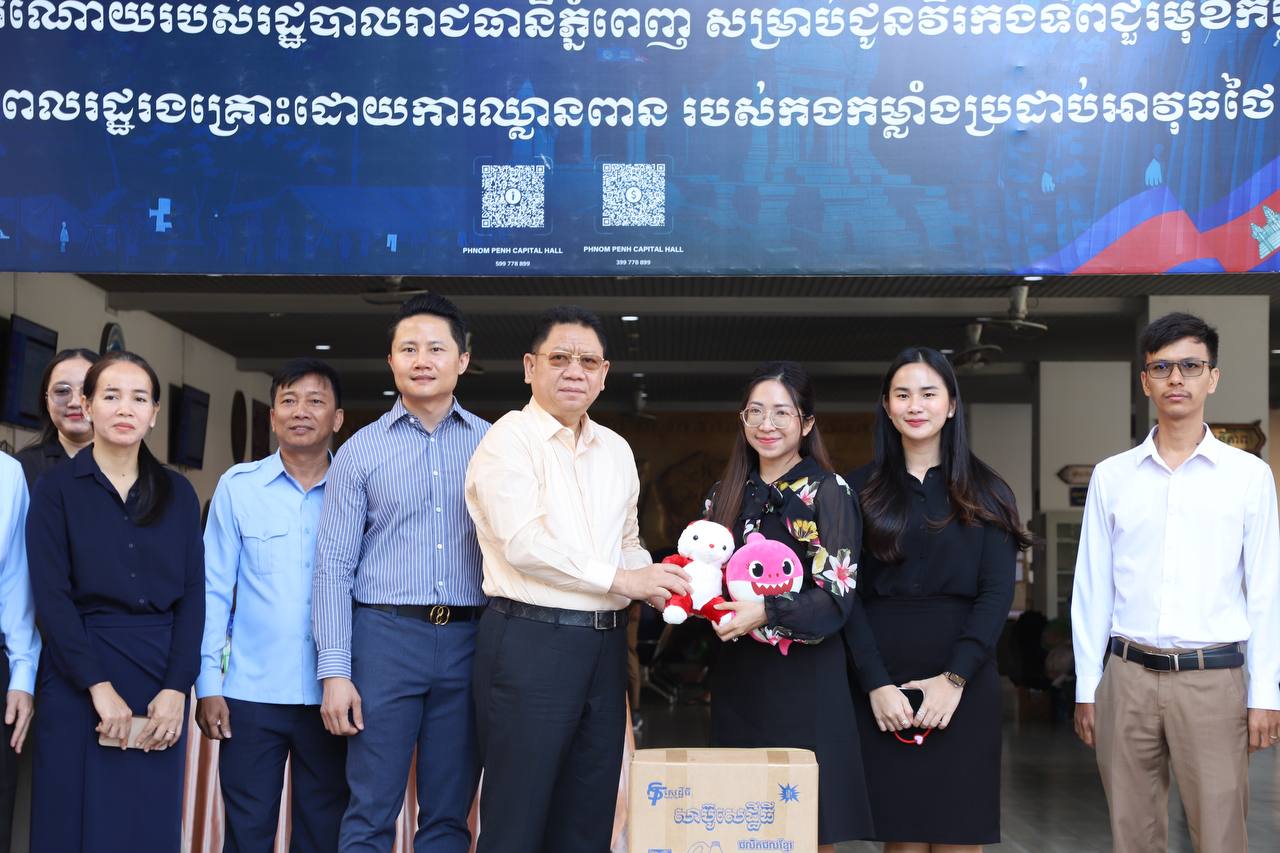 លោក ឆាយ វីរៈ អភិបាលរងរាជធានី ក្នុងនាម លោកឃួង ស្រេង បានថ្លែងនូវការអរគុណយ៉ាងជ្រាលជ្រៅចំពោះ សប្បុរសជនទាំងអស់ ដែលបាននាំយកអំណោយមកជូនមករដ្ឋបាលរាជធានីភ្នំពេញ ដើម្បីយកទៅចែកជូនដល់វីរកងទ័ពជួរមុខ និងជនភៀសសឹក។ ទឹកចិត្តដ៏សប្បុរសនេះ ពិតជាបានរួមចំណែកលើកទឹកចិត្តដល់កងកម្លាំងប្រដាប់អាវុធជួរមុខទាំងអស់ ដែលបានខិតខំការពារខ្សែបន្ទាត់ព្រំដែន និងការពារបូរណភាពទឹកដីឱ្យបានរឹងមាំ ដែលបានឆ្លុះបញ្ចាំងពីខឿនការពារជាតិ ប្រជាជន ស្របតាមកម្មវិធីនយោបាយ និងយុទ្ធសាស្ត្របញ្ចកោណដំណាក់កាលទី១ របស់រាជរដ្ឋាភិបាលកម្ពុជា ក្រោមការដឹកនាំប្រកបដោយគតិបណ្ឌិតរបស់ សម្តេចមហាបវរធិបតី ហ៊ុន ម៉ាណែត នាយករដ្ឋមន្ត្រី ។