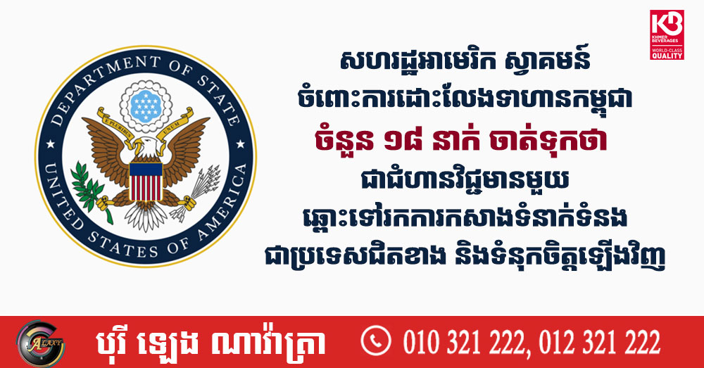 សហរដ្ឋអាមេរិក ស្វាគមន៍ចំពោះការដោះលែងទាហានកម្ពុជាចំនួន ១៨ នាក់ ចាត់ទុកថា ជាជំហានវិជ្ជមានមួយឆ្ពោះទៅរកការកសាងទំនាក់ទំនងជាប្រទេសជិតខាង និងទំនុកចិត្តឡើងវិញ (Video inside)