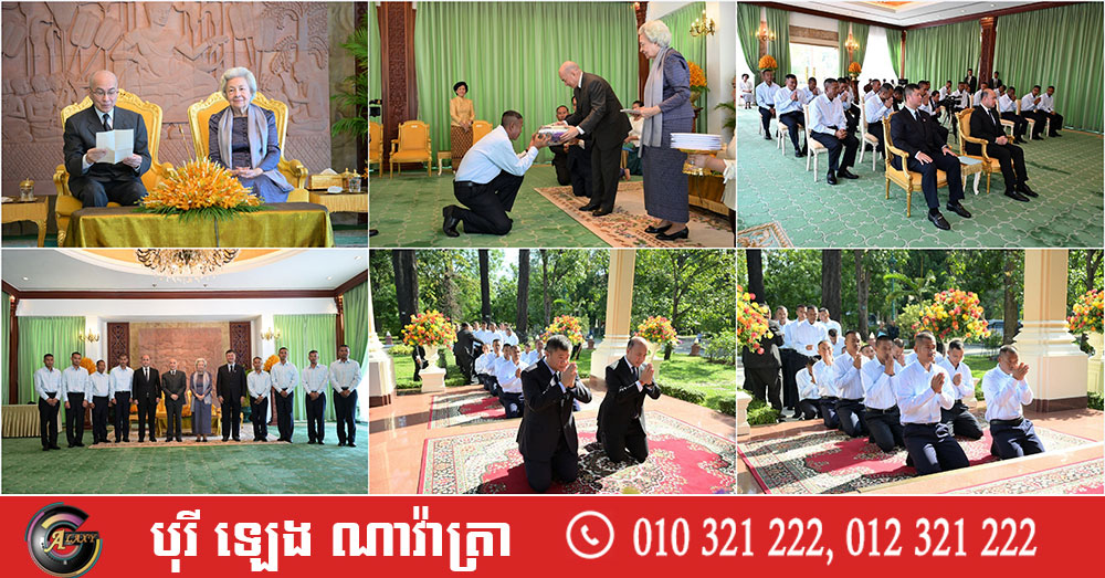 ព្រះកុរណាព្រះមហាក្សត្រ និងសម្តេចព្រះមហាក្សត្រី សព្វព្រះរាជហឬទ័យប្រោសព្រះរាជទានវីរកងទ័ពទាំង១៨រូប ដែលបាននិវត្តន៍មកកាន់មាតុប្រទេសវិញ ប្រកបដោយសុខសុវត្ថិភាពខ្ពស់ ក្រោយពីស្ថិតក្នុងការឃុំគ្រងរបស់ភាគីថៃអស់រយៈពេល ១៥៥ថ្ងៃ ចូលក្រាបថ្វាយបង្គំគាល់ (Video inside)