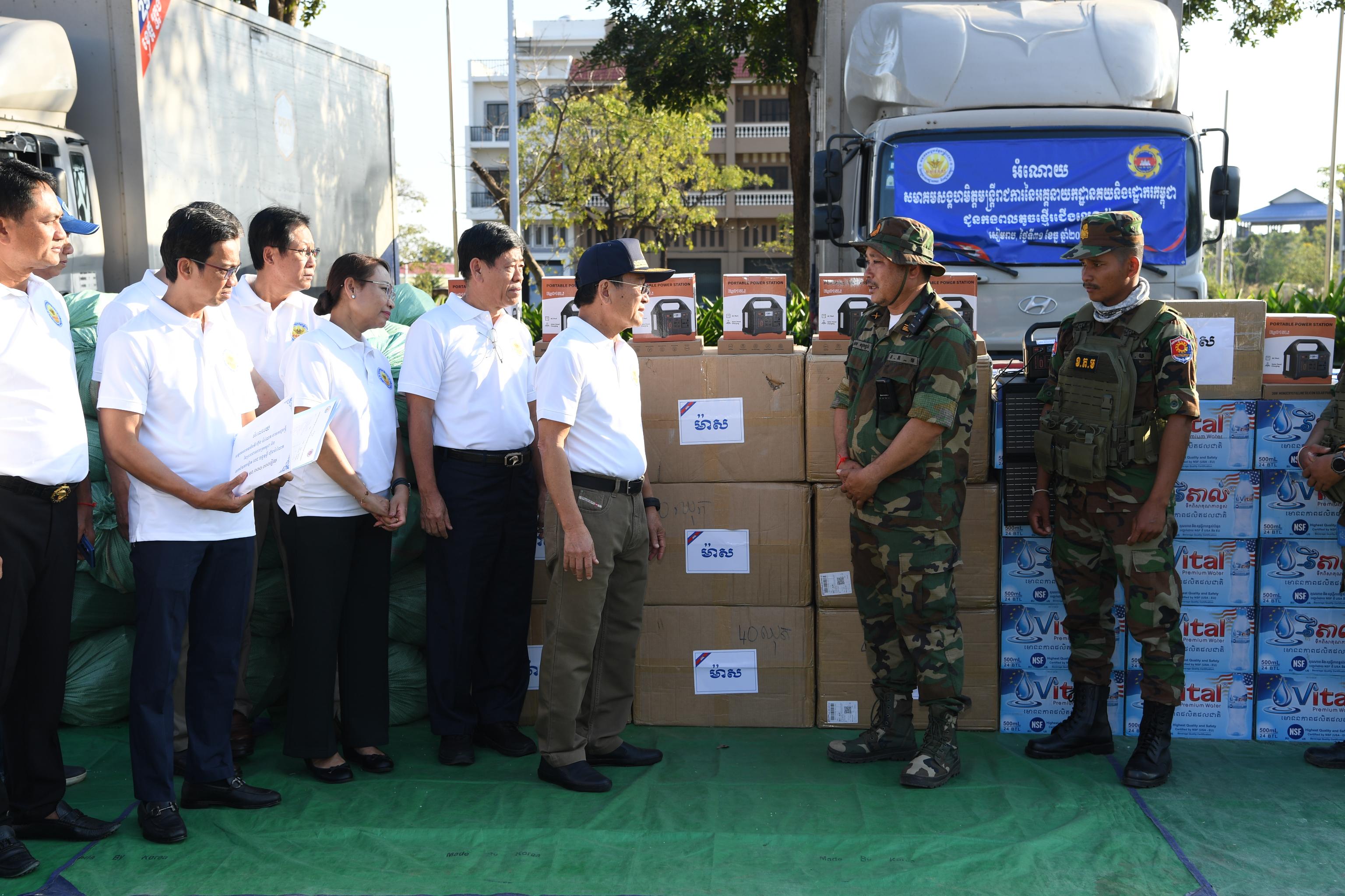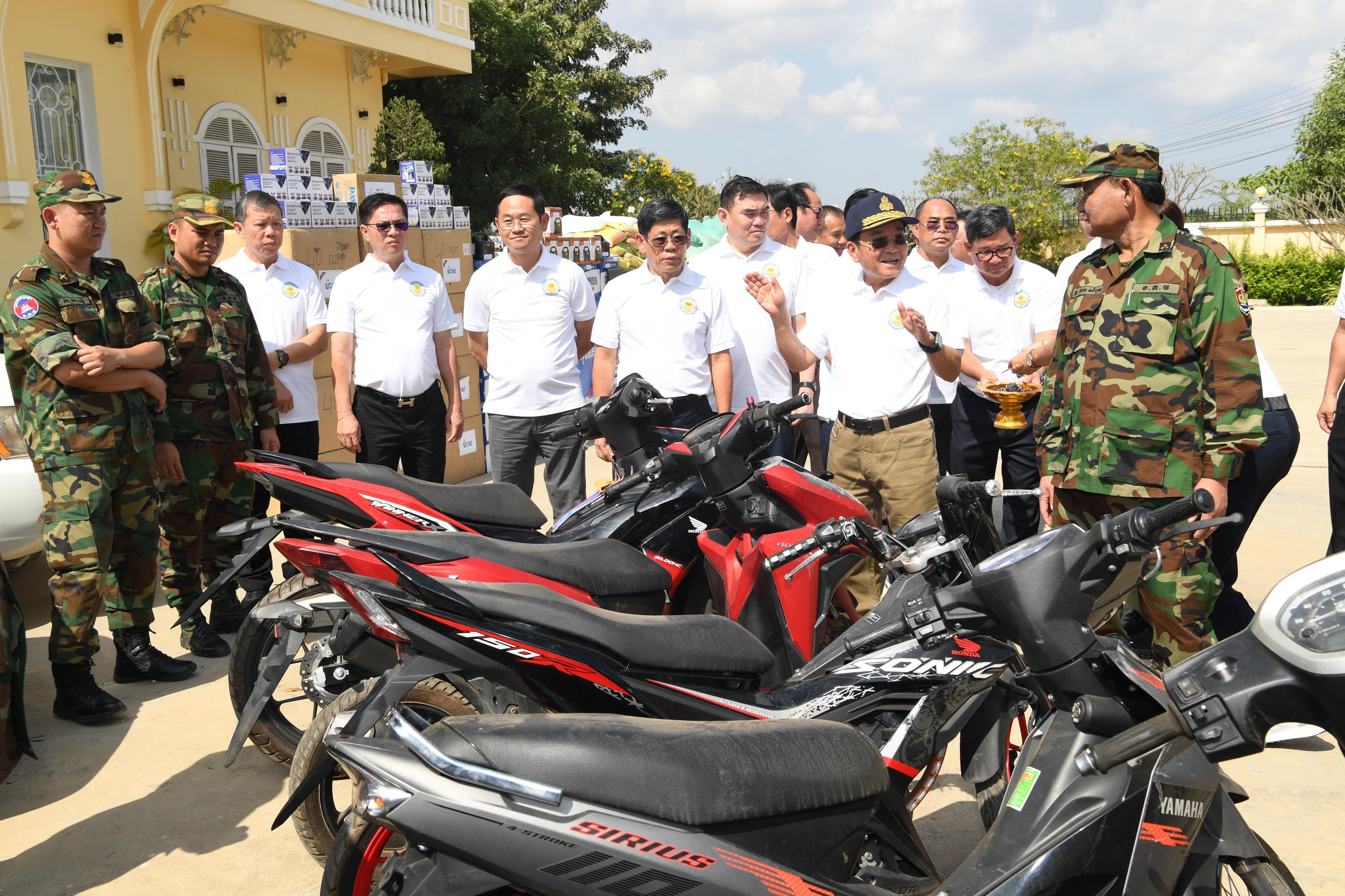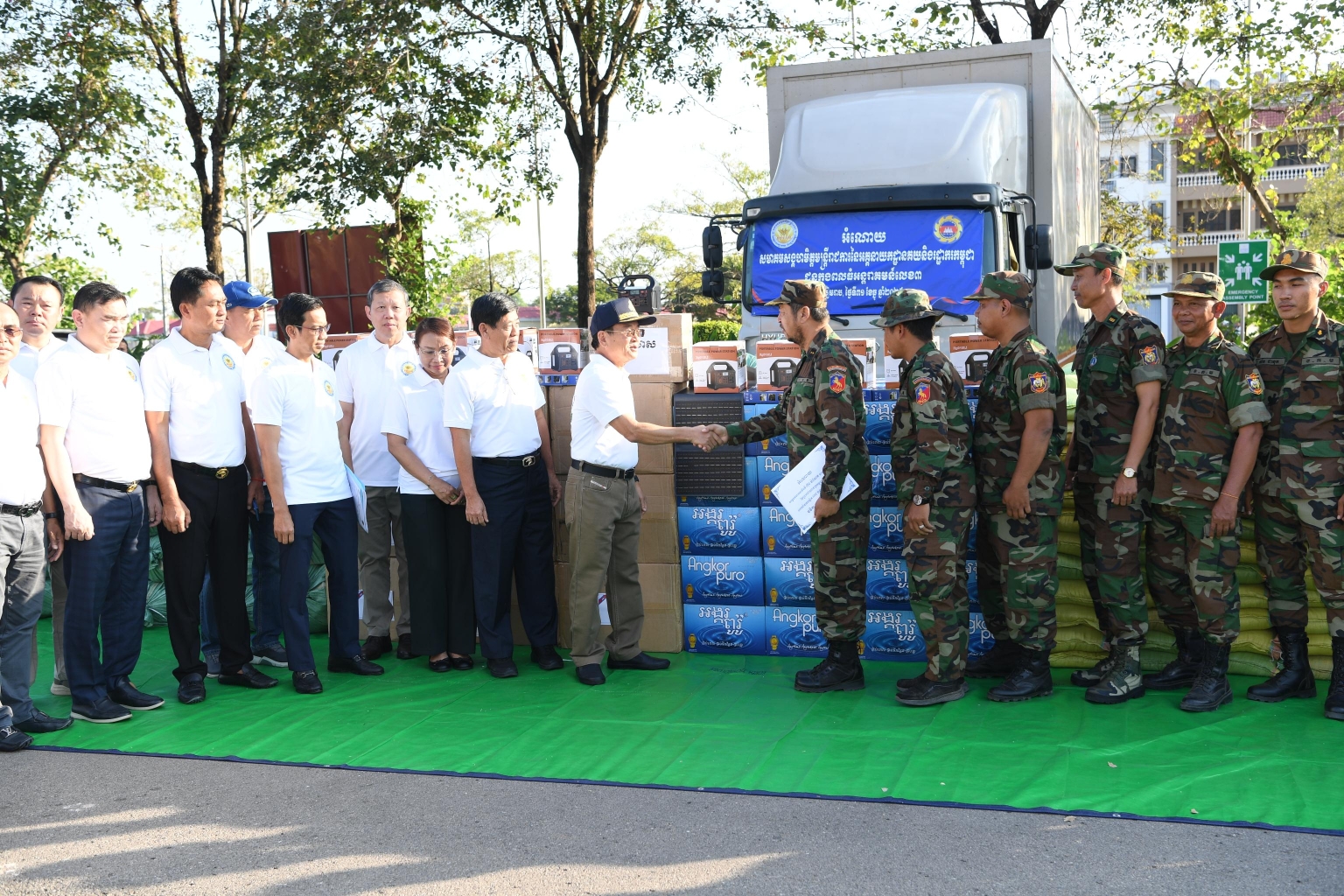 អំណោយ សម្រាប់ប្រគល់ជូនវីរកងទ័ព នាឱកាសនេះ រួមមាន៖ ឧបករណ៍ផ្ទុកអគ្គិសនី និងបន្ទះសូឡាសម្រាប់សាកថ្ម ៤៤ ឈុត, ម៉ាសការពារផ្សែងពុល ២០០០ ឈុត, តម្រងបន្ថែមសម្រាប់ប្ដូរម៉ាសការពារផ្សែងពុល ៤ កេស ស្មើ ៥០០ គូ, អង្ករ ១២ តោន,ទឹកសុទ្ធ ៨០០ កេស, កញ្ចប់ Kits ចំនួន ២៨០០ កញ្ចប់ (ក្នុង Kits នីមួយៗ មាន នំទាហាន ៥ កញ្ចប់, មី ១០ កញ្ចប់, ត្រីងៀតចម្អិនរួច ១ កន្ទុយ, សាច់ក្រកចម្អិនរួច ៥ ដុំ, ត្រីខ ២ កំប៉ុង, បាយក្ដាំង ២ កញ្ចប់, អំបុក ២ ដប, ពងទាប្រៃ ៤ គ្រាប់, គ្រាប់ចន្ទី ២00 ក្រាម, ទឹកដោះគោស្រស់ ១ យួរ ស្មើ ៤ ប្រអប់តូច, ទឹកដោះគោខាប់ ២ កំប៉ុង, ទឹកក្រូច ៣ កំប៉ុង, បារី ១០ កញ្ចប់, ថ្នាំ Vitamin Berocca ១ ទីប, ថ្នាំបំបាត់ការឈឺចាប់ ២ បន្ទះ, កាហ្វេ ១០ កញ្ចប់, ស្ករចាហួយ ២ កញ្ចប់តូច) និងថវិកា ៤០ លានរៀល។ ក្រៅពីនេះ ក៏មានការប្រគល់នូវរថយន្តចំនួន ៧ គ្រឿង និងទោចក្រយានយន្ត ចំនួន ៧ គ្រឿង ដល់យោធភូមិភាគទី៥ ដែលមានអង្គភាពកងទ័ពប្រចាំសមរភូមិទិសខេត្តពោធិ៍សាត់ ខេត្តបាត់ដំបង និងខេត្តបន្ទាយមានជ័យផងដែរ ។