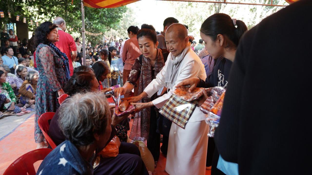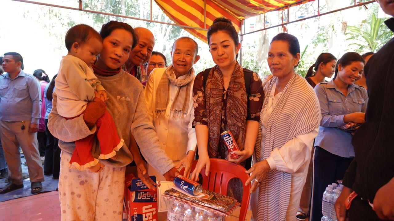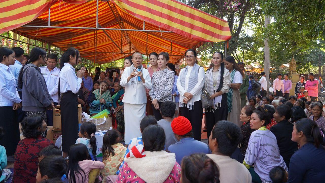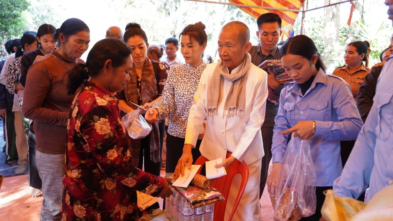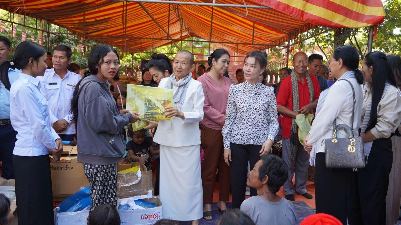 (សៀមរាប)៖ អ្នកឧកញ៉ាមហាឧបាសិកាធម្មបណ្ឌិត ញឹក ប៊ុនថា ប្រធានមជ្ឈមណ្ឌលវប្បធម៌ ព្រះពុទ្ធសាសនាកម្ពុជា និងក្រុមកាងារ នៅថ្ងៃទី៣១ ខែធ្នូ ឆ្នាំ២០២៥នេះ បានសួរសុខទុក្ខ និងនាំយកអំណោយរបស់សប្បុរសជន មកប្រគល់ជូនក្រុមគ្រួសារវីរកងទ័ព និងប្រជាពលរដ្ឋភៀសសឹកចំនួន ៤០០គ្រួសារ ដែលកំពុងស្នាក់នៅក្នុងមណ្ឌលសុវត្ថិភាព នៃខេត្តសៀមរាប។