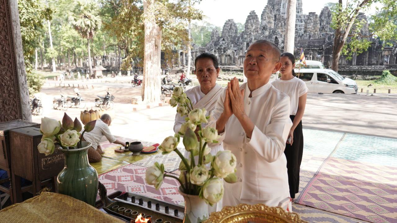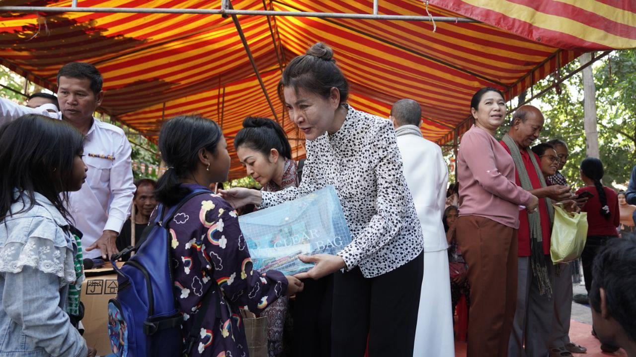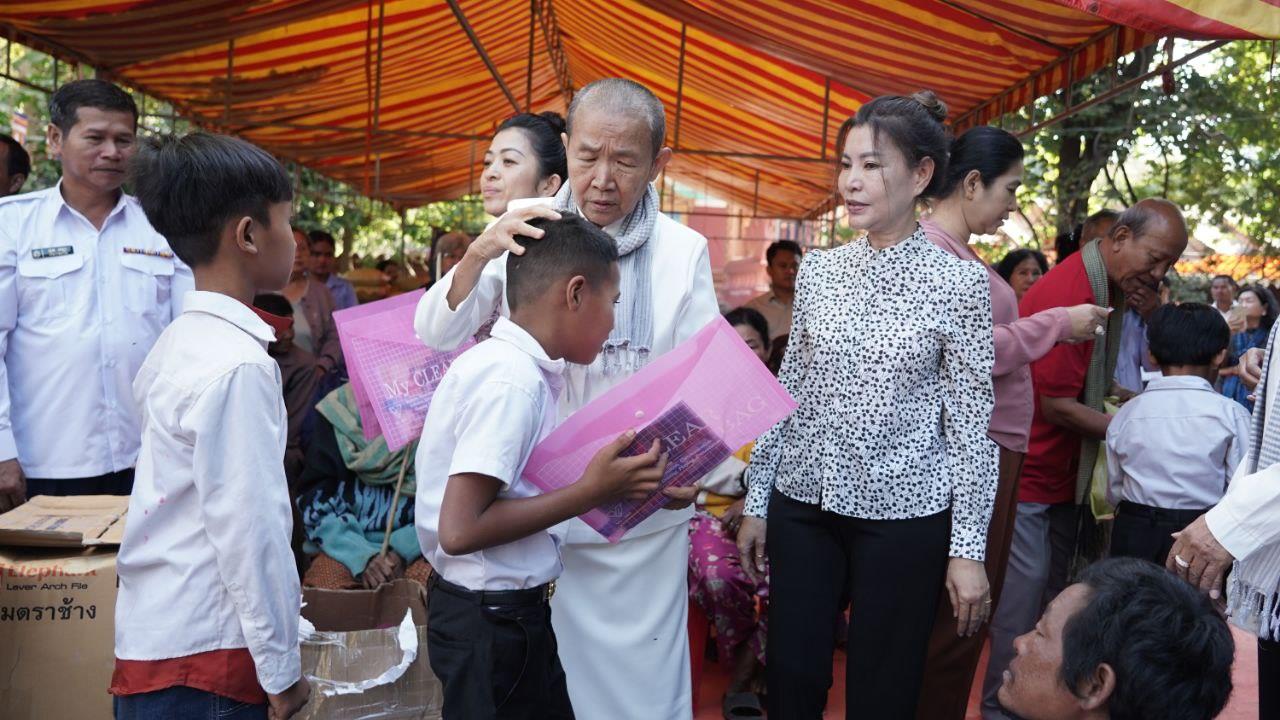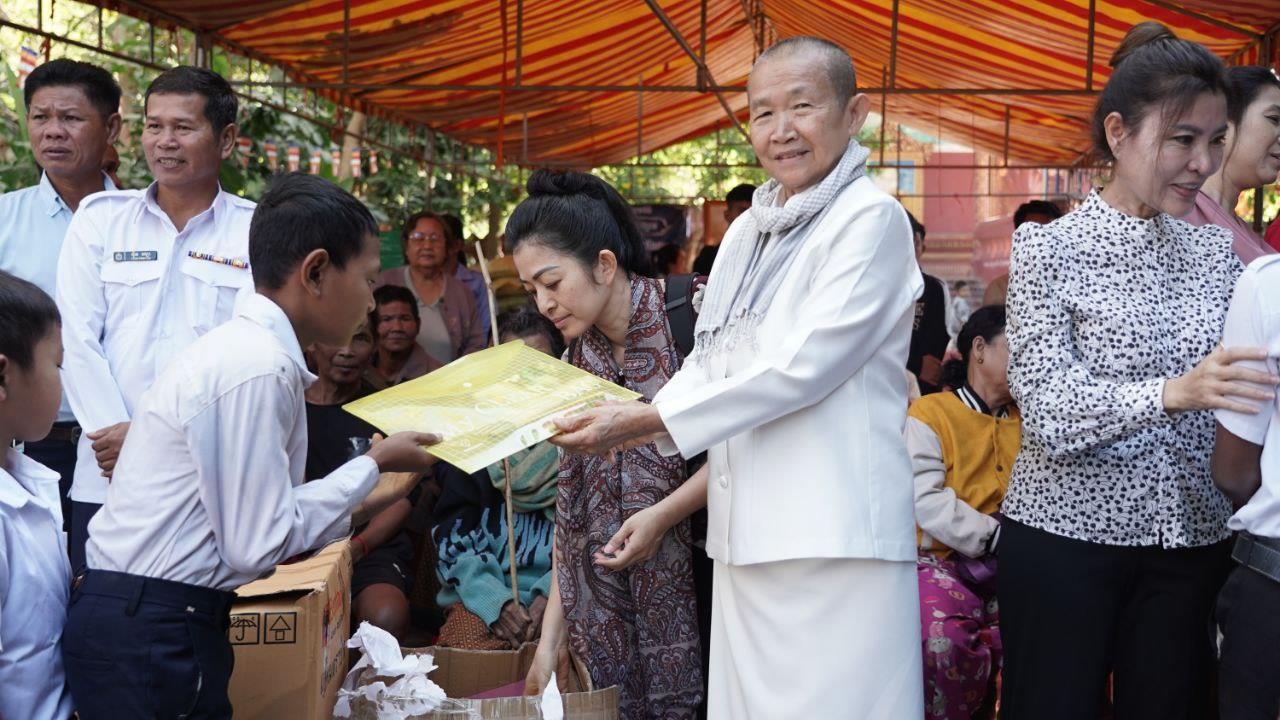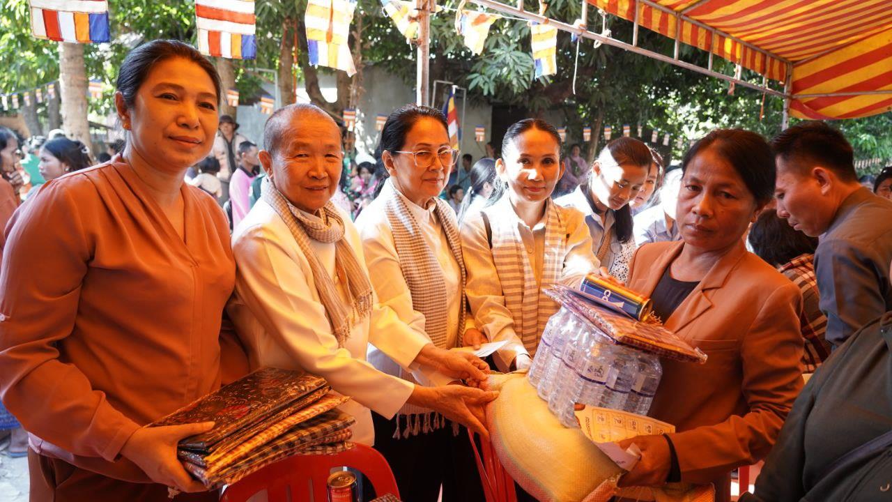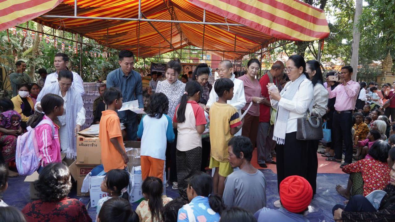(សៀមរាប)៖ អ្នកឧកញ៉ាមហាឧបាសិកាធម្មបណ្ឌិត ញឹក ប៊ុនថា ប្រធានមជ្ឈមណ្ឌលវប្បធម៌ ព្រះពុទ្ធសាសនាកម្ពុជា និងក្រុមកាងារ នៅថ្ងៃទី៣១ ខែធ្នូ ឆ្នាំ២០២៥នេះ បានសួរសុខទុក្ខ និងនាំយកអំណោយរបស់សប្បុរសជន មកប្រគល់ជូនក្រុមគ្រួសារវីរកងទ័ព និងប្រជាពលរដ្ឋភៀសសឹកចំនួន ៤០០គ្រួសារ ដែលកំពុងស្នាក់នៅក្នុងមណ្ឌលសុវត្ថិភាព នៃខេត្តសៀមរាប។