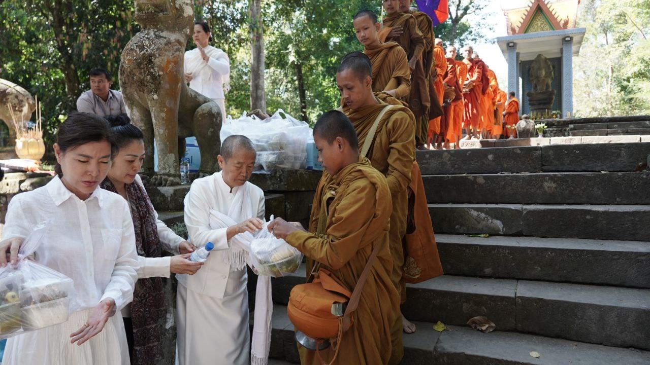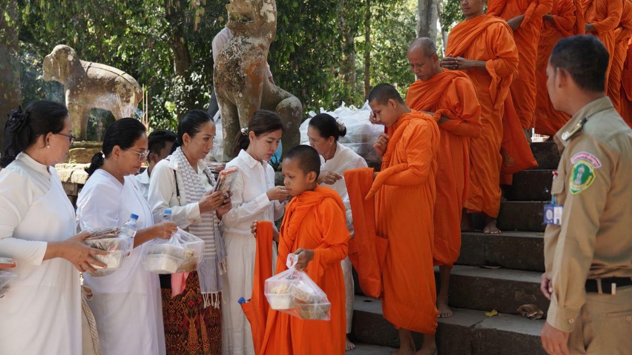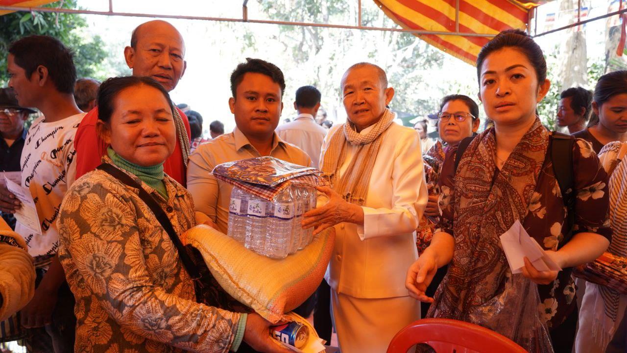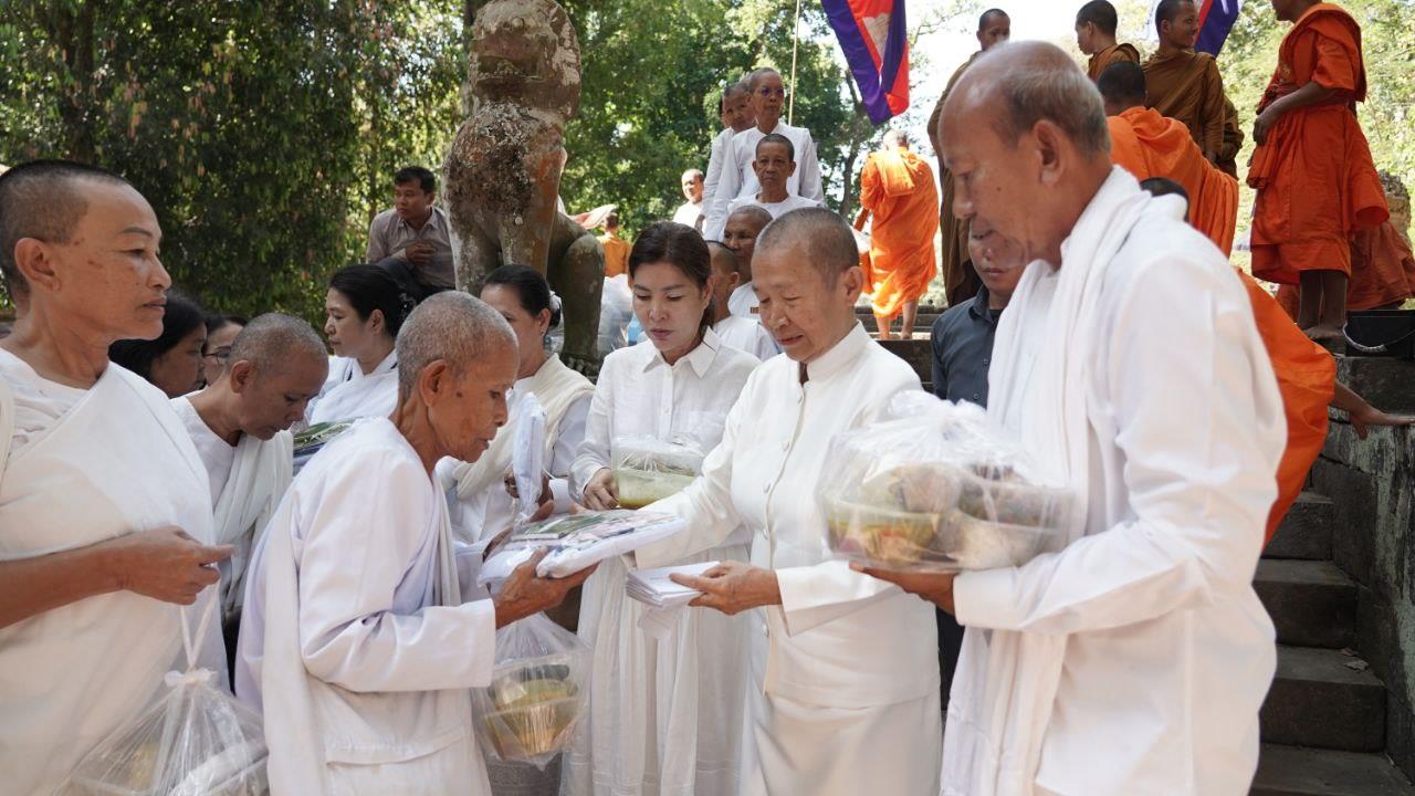 គួរបញ្ជាក់ថា សម្រាប់សម្ភារឧបត្ថម្ភជូនគ្រួសារកងទ័ព និងជនភៀសសឹក រួមមានអង្ករចំនួន ១០គីឡូ សារ៉ុង ក្រម៉ា និងទឹកបរិសុទ្ធ ព្រមទាំងថវិកា ២ម៉ឺនរៀលក្នុងមួយគ្រួសារ ។ ជាមួយនេះ អ្នកឧកញ៉ាមហាឧបាសិកាធម្មបណ្ឌិត ញឹក ប៊ុនថា និងក្រុមការងារ បានអញ្ជើញបួងសួងនៅទីសក្ការលោកតារាជ នាប្រាសាទអង្គរវត្ត និងនៅវត្តប្រាសាទព្រះវិហារប្រាំពីរល្វែង និងទៅសមាធិ សុំសេចក្តីសុខ រួមទាំរាប់បាតព្រះសង្ឃចំនួន៦៥អង្គ និងជូនទានដល់ ដូនជីតាជី ៥០នាក់ ដើម្បីឧទ្ទិសកុសលដល់វីរកងទ័ពពលីផងដែរ៕