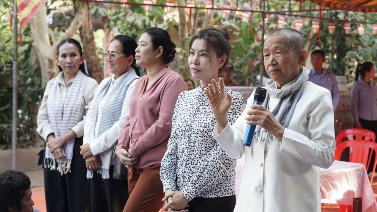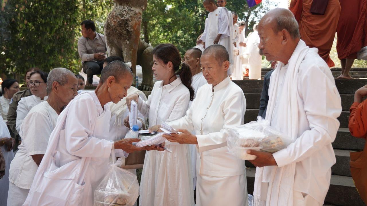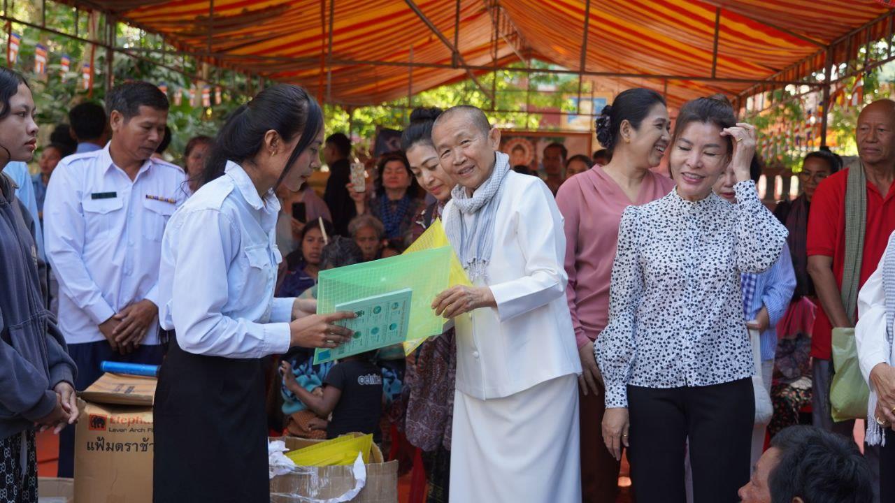 ក្នុងឱកាសនោះ អ្នកឧកញ៉ាអគ្គមហាឧបាសិកាធម្មបណ្ឌិត ញឹក ប៊ុនថា ក៏បានសាកសួរសុខទុក្ខ និងអប់រំព្រះធម៌ដល់គ្រួសារវីរកងទ័ព និងប្រជាពលរដ្ឋភៀសសឹក ដោយក្ដីនឹករលឹក និងអាណិតអាសូរជាទីបំផុត ក្នុងស្ថានភាពដែលតំបន់ព្រំដែន មានសភាពតានតឹងខ្លាំង បង្ខំឱ្យប្រជាពលរដ្ឋត្រូវចាកចោលលំនៅដ្ឋាន ផ្ទះសម្បែងមួយរយៈដើម្បីជំលៀសខ្លួន និងគ្រួសារចេញមករកតំបន់ដែលធានាសន្តិសុខ សុវត្ថិភាពសម្រាប់ស្នាក់នៅជាបណ្តោះអាសន្នសិន។