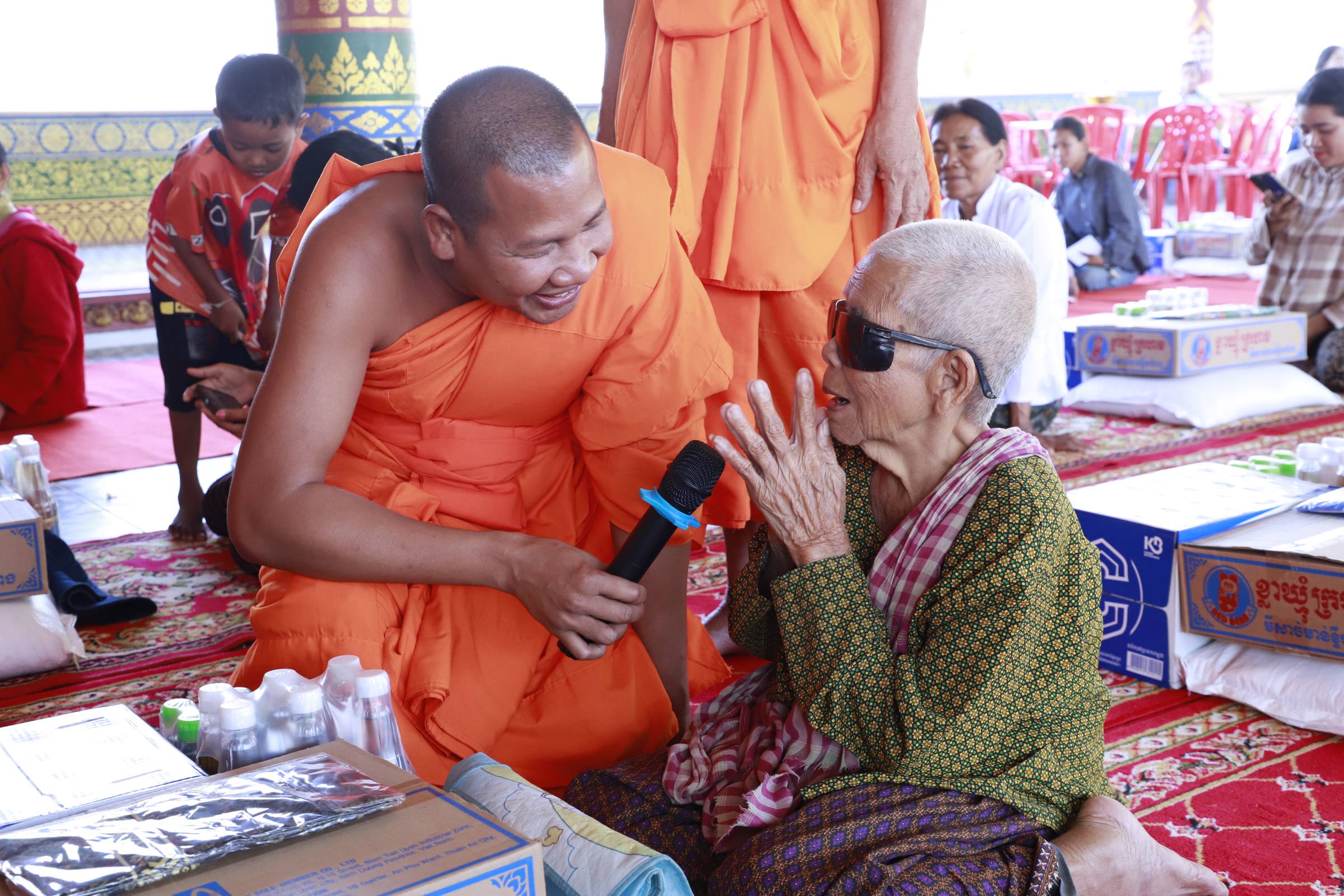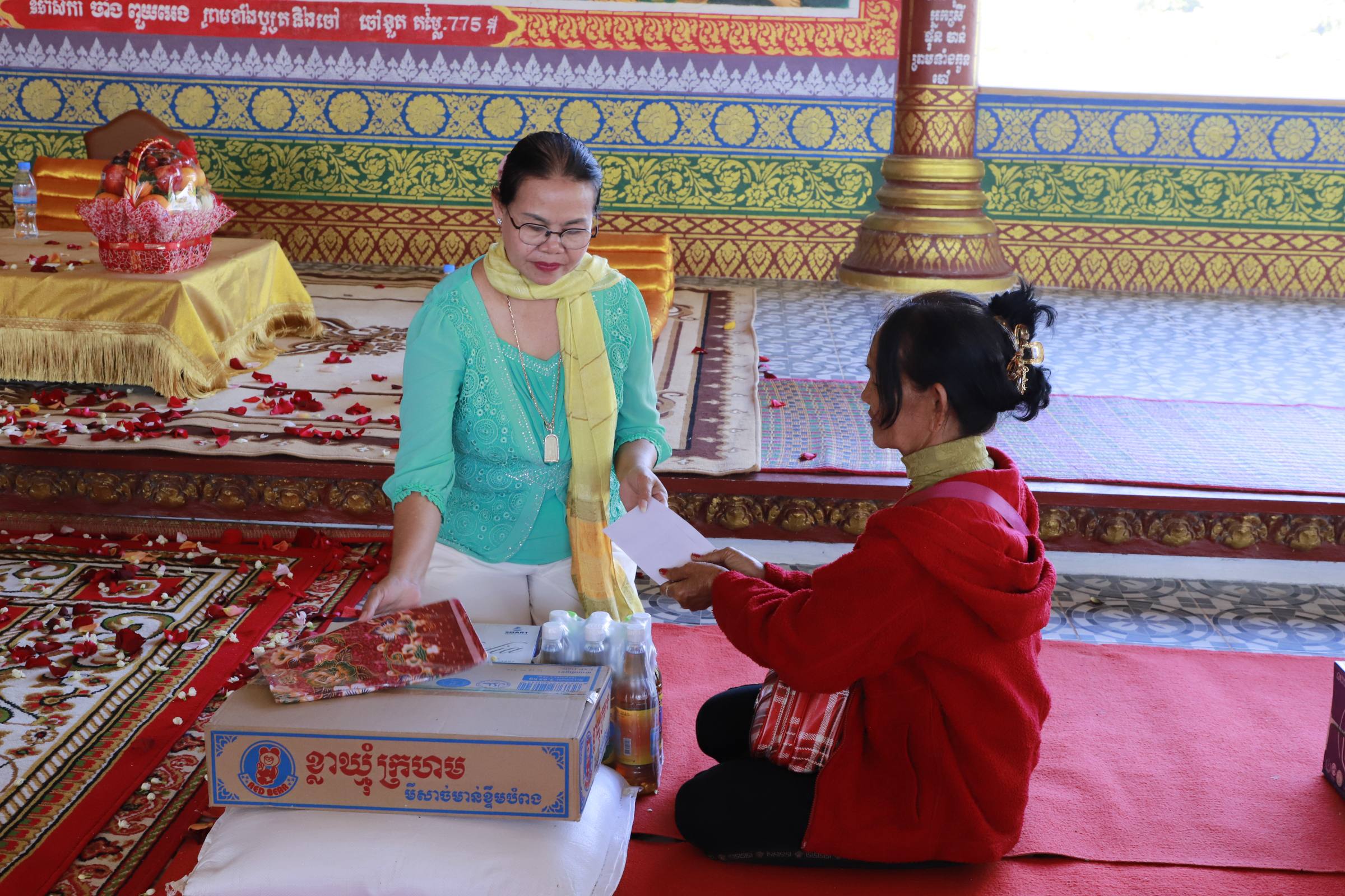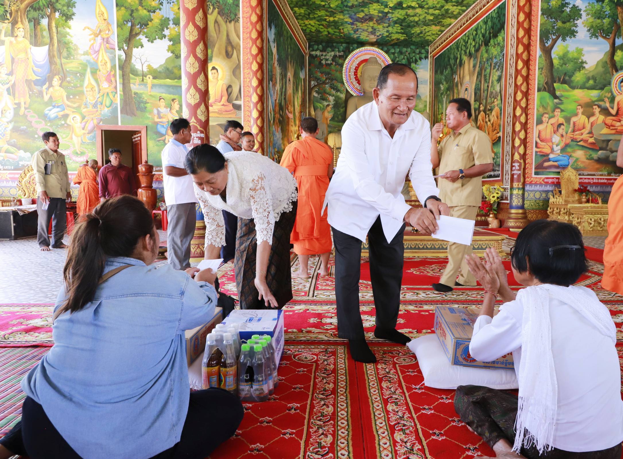 អ្នកតំណាងរាស្រ្តមណ្ឌលកំពង់ឆ្នាំង និងព្រះគ្រូចៅអធិការវត្តសម្ដេច នន្ទ ង៉ែត ប្រគល់អំណោយរបស់សប្បុរសជនជូនដល់ជនភៀសសឹក និងចាស់ជរា ៥០គ្រួសារ