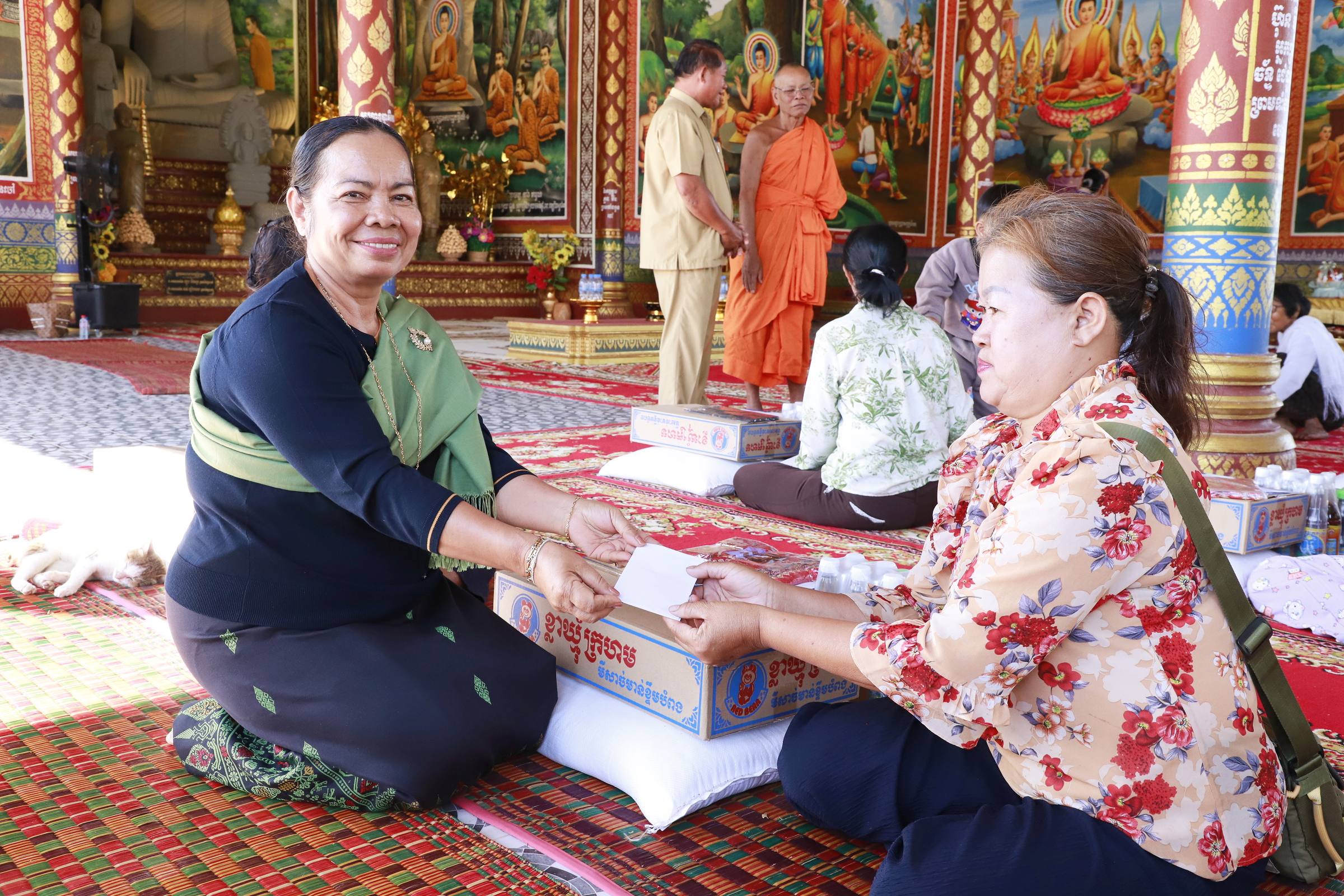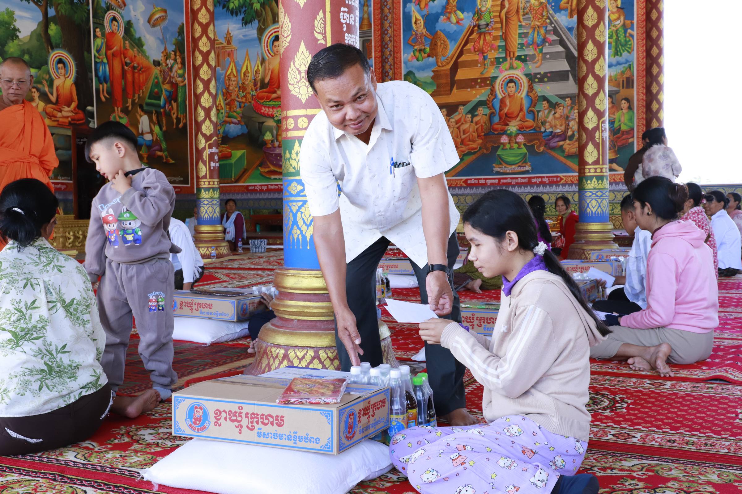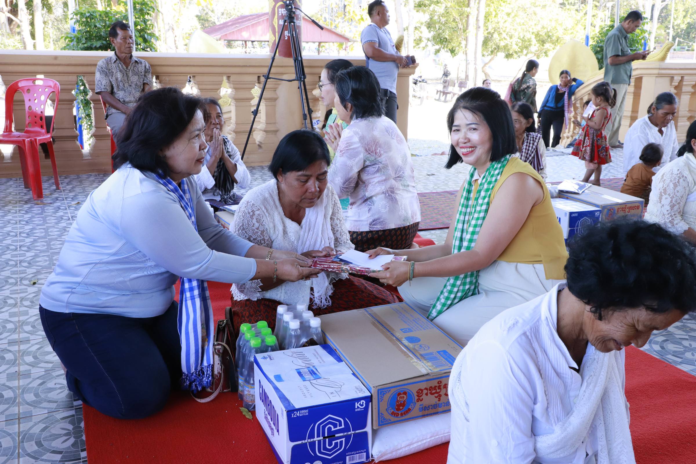 សូមបញ្ជាក់ដែរថា លោក ឡុង ឈុនឡៃ អ្នកតំណាងរាស្រ្តមណ្ឌលកំពង់ឆ្នាំង និងលោកស្រី និងព្រះសិរីមង្គលមុនី ម៉ុច សៅលី បានប្រគល់អំណោយជូនដល់ប្រជាពលរដ្ឋភៀសសឹក ក្នុងជនចាស់ជរា ក្នុងមួយគ្រួសារ ទទួលបាន៖ អង្ករ ២០គីឡូក្រាម មីខ្លាឃ្មុំ ១កេស ទឹកត្រី ១យួរ ទឹកស៊ីអ៉ីវ ១យួរ ទឹកបរិសុទ្ធ ១កេស សារ៉ុង ១ និងថវិកា ៦ម៉ឺនរៀល៕