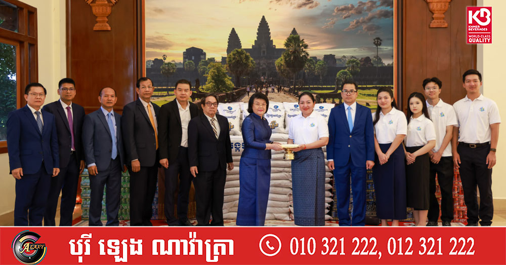 សម្តេចរដ្ឋសភាធិបតី ឃួន សុដារី អញ្ជើញទទួលអំណោយជាថវិកា ១០លានរៀល អង្ករ និងសម្ភារមួយចំនួន ពីលោកស្រីឧកញ៉ា សុខ សុភាព អគ្គនាយិកាក្រុមហ៊ុនឆាមពាន និងស្វាមី សម្រាប់ចែកជូនដល់វីរកងទ័ពនិងជនភៀសសឹក