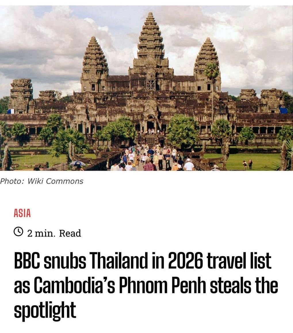 អវត្តមានរបស់ប្រទេសថៃ នៅក្នុងបញ្ជីឆ្នាំ២០២៦ របស់ BBC បង្កជាការភ្ញាក់ផ្អើល ដោយសារកេរ្តិ៍ឈ្មោះដ៏យូរអង្វែងរបស់ថៃ ជាមហាអំណាចទេសចរណ៍។ យ៉ាងណាក៏ដោយ រាជធានីភ្នំពេញ ត្រូវបាន BBC ពណ៌នាថាជា «ការកែលម្អដ៏សំខាន់»។ នៅពេលដែលអ្នកដំណើរជាច្រើនធ្លាប់មើលរំលងនោះ រាជធានីរបស់កម្ពុជាឥឡូវនេះត្រូវបានទទួលស្គាល់ថាជាទីក្រុង ដែលមានទាក់ទាញអ្នកទេសចរ និងចក្ខុវិស័យច្បាស់លាស់។