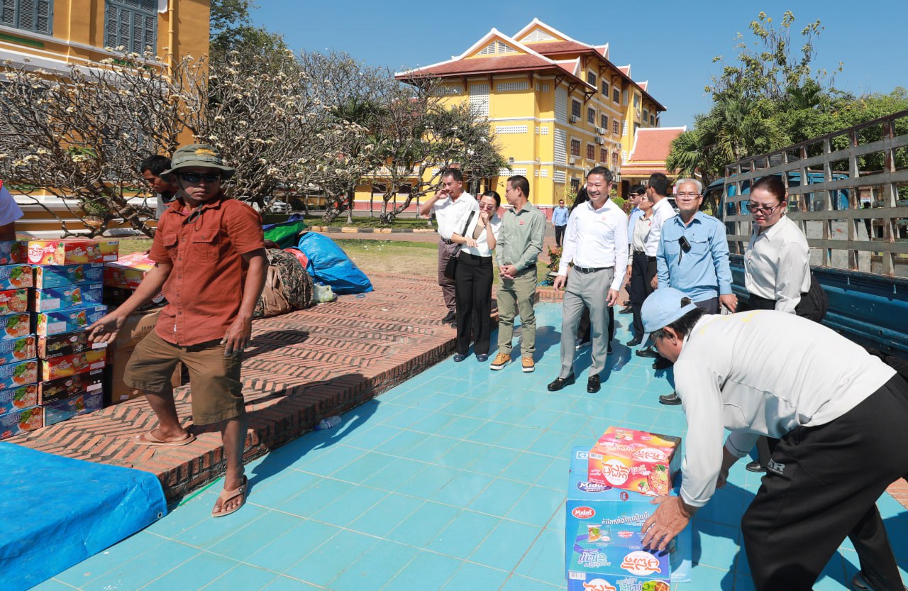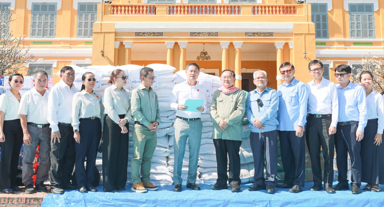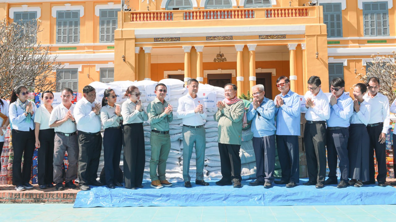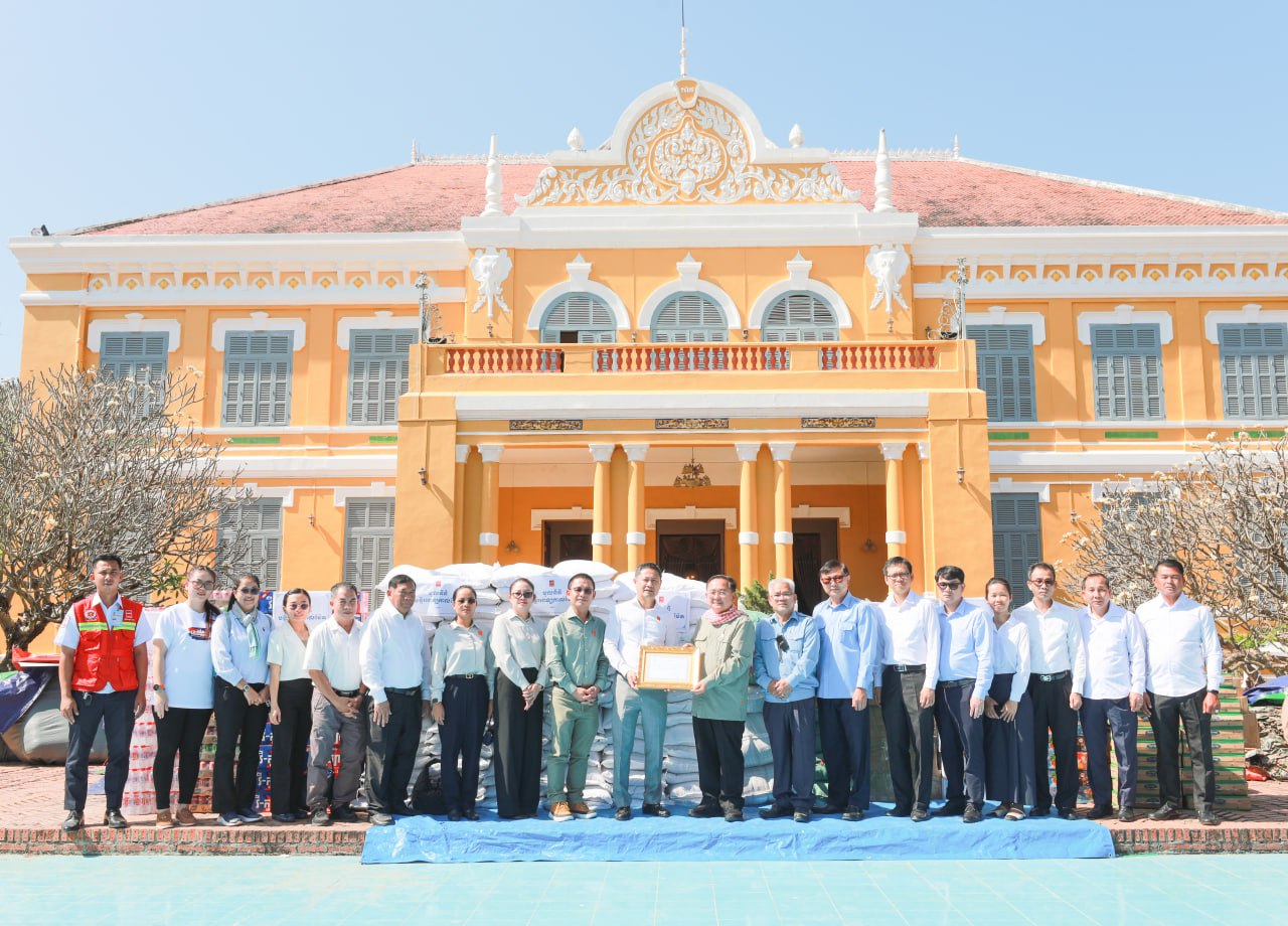 (បាត់ដំបង)៖ លោកសាស្ដ្រាចារ្យ គង់ សន្យា អគ្គនាយកមន្ទីរពេទ្យកាល់ម៉ែត បានដឹកនាំក្រុមការងារនាំយកអំណោយមូលនិធិមន្ទីរពេទ្យកាល់ម៉ែត ដែលមានជាគ្រឿងឧបភោគ បរិភោគ សម្ភារៈប្រើប្រាស់ចាំបាច់មួយចំនួន និងថវិកា mkប្រគល់ជូនរដ្ឋបាលខេត្តបាត់ដំបង សម្រាប់ឧបត្ថម្ភជូនប្រជាជនភៀសសឹក នាថ្ងៃទី២ ខែមករា ឆ្នាំ២០២៦។