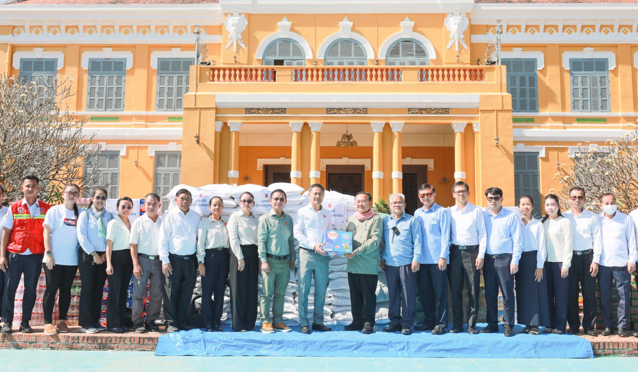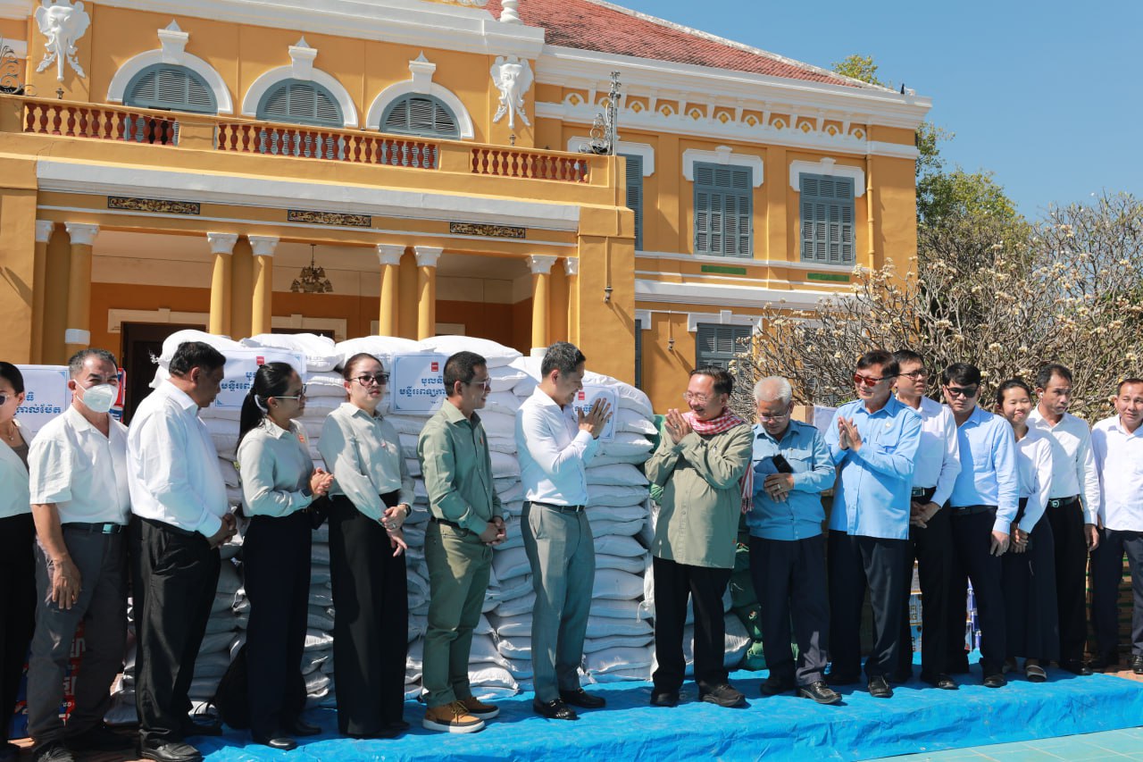 អគ្គនាយកមន្ទីរពទ្យកាល់ម៉ែត និងសហការី នាំយកអំណោយមូលនិធិរបស់មន្ទីរពេទ្យ ជាស្បៀង សម្ភារៈប្រើប្រាស់ចាំបាច់ និងថវិកា ប្រគល់ជូនរដ្ឋបាលខេត្តបាត់ដំបង សម្រាប់ឧបត្ថម្ភជូនប្រជាជនភៀសសឹក