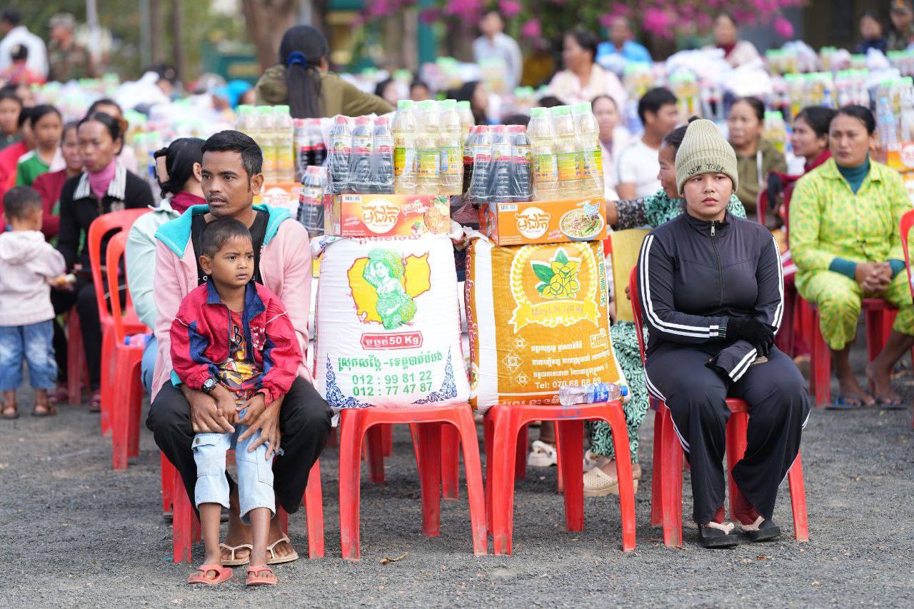 គ្រឿងឧបភោគបរិភោគ និងថវិកា ជាអំណោយរបស់សម្តេចធិបតី និងលោកជំទាវបណ្ឌិត ដែលត្រូវបាននាំយកមក ចែកជូន ដល់គ្រួសារវីរកងទ័ព និងគ្រួសារជនភៀសសឹក ក្នុងមួយគ្រួសារទទួលបានអង្ករ ៥០គីឡូក្រាម ទឹកត្រី ១យួរ ទឹកស៊ីអ៉ីវ ១យួរ មី ១កេស សម្លៀកបំពាក់ និងថវិកាមួយចំនួន៕