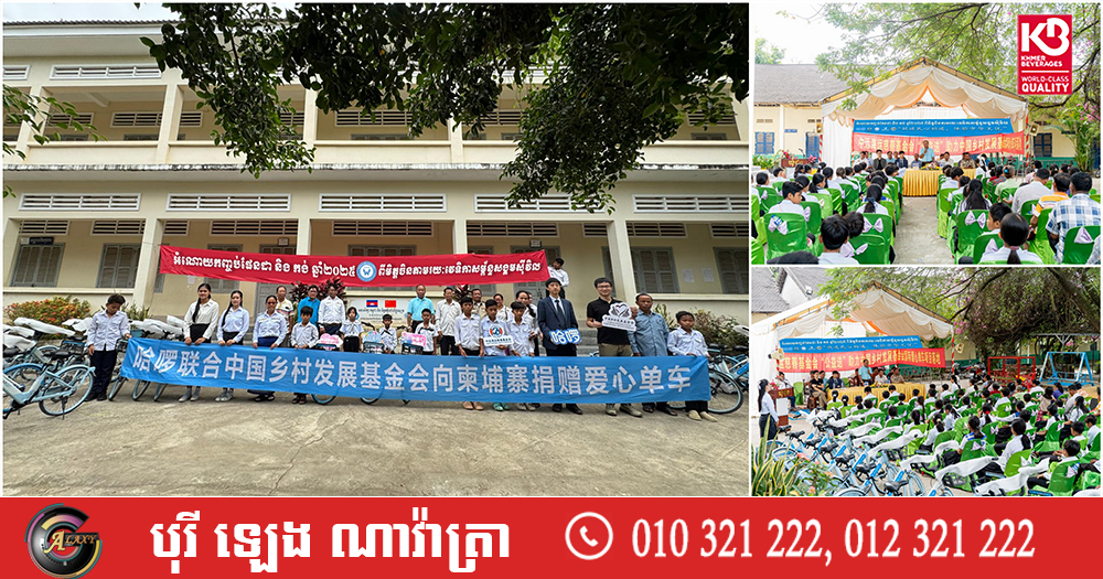(តាកែវ)៖ ក្រោមកិច្ចសហការយ៉ាងជិតស្និទ្ធជាមួយវេទិកាសម្ព័ន្ធសង្គមស៊ីវិល ក្នុងការរួមចំណែកលើកទឹកចិត្តដល់ការសិក្សារបស់កុមារ នៅជនបទ ក្រុមហ៊ុន Hello Bike តាមរយៈ មូលនិធិចិនដើម្បីអភិវឌ្ឍជនបទ (CFRD) បានរៀបចំសកម្មភាពចែកកង់៩៥គ្រឿង ជូនដល់សិស្សានុសិស្សសិក្សានៅសាលាបឋមសិក្សាអង្គកំនប់ ស្ថិតក្នុងភូមិស្វាយខម ឃុំដូង ស្រុកបាទី ខេត្តតាកែវ នាព្រឹកថ្ងៃទី២ ខែមករា ឆ្នាំ២០២៦។