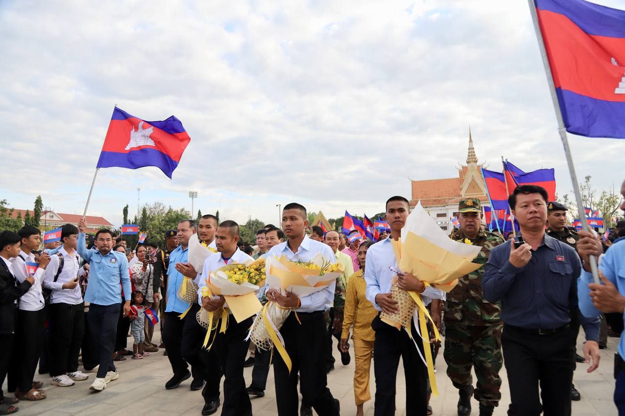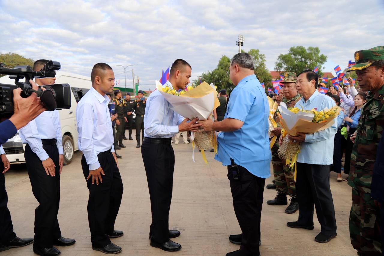 (ស្ទឹងត្រែង)៖ នៅរសៀលថ្ងៃទី៣ ខែមករា ឆ្នាំ២០២៦នេះ រដ្ឋបាលខេត្តស្ទឹងត្រែង បានរៀបចំពិធីដង្ហែ និងទទួលស្វាគមន៍យ៉ាងអធិកអធម និងប្រកបដោយមោទនភាពជូនដល់វីរកងទ័ពខ្មែរចំនួន៤រូប ក្នុងចំណោមវីរកងទ័ពសរុប១៨រូប ដែលត្រូវបានដោះលែងឱ្យវិលត្រឡប់មកមាតុប្រទេសវិញ បន្ទាប់ពីការចាប់ខ្លួនក្រោយបទឈប់បាញ់កាលពីថ្ងៃទី២៩ ខែកក្កដា ឆ្នាំ២០២៥កន្លងទៅ និងជាប់នៅប្រទេសថៃអស់រយៈពេល១៥៥ថ្ងៃ។