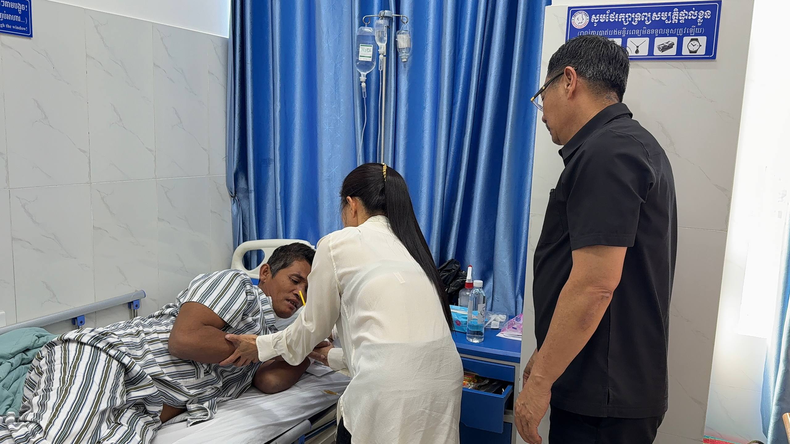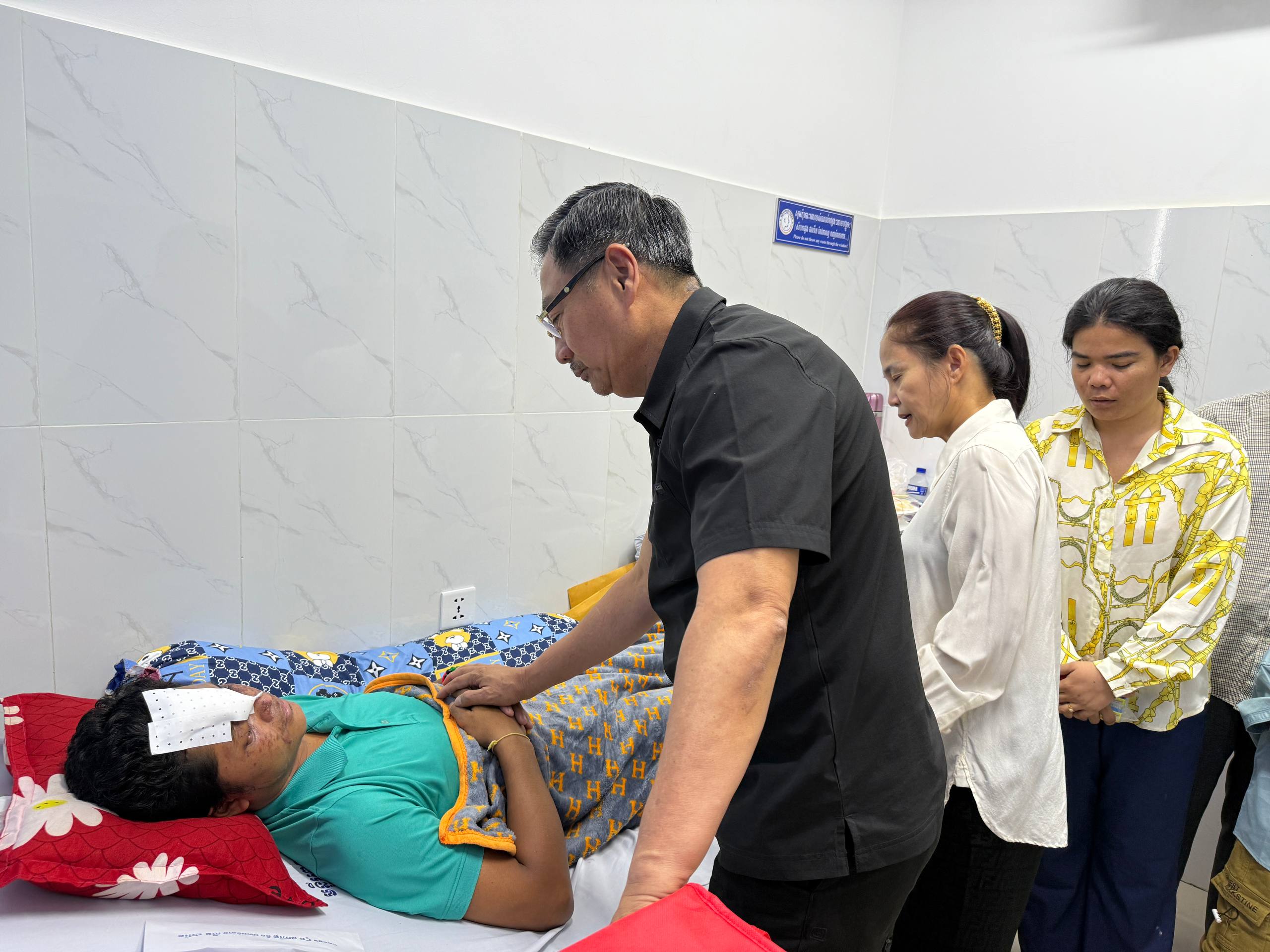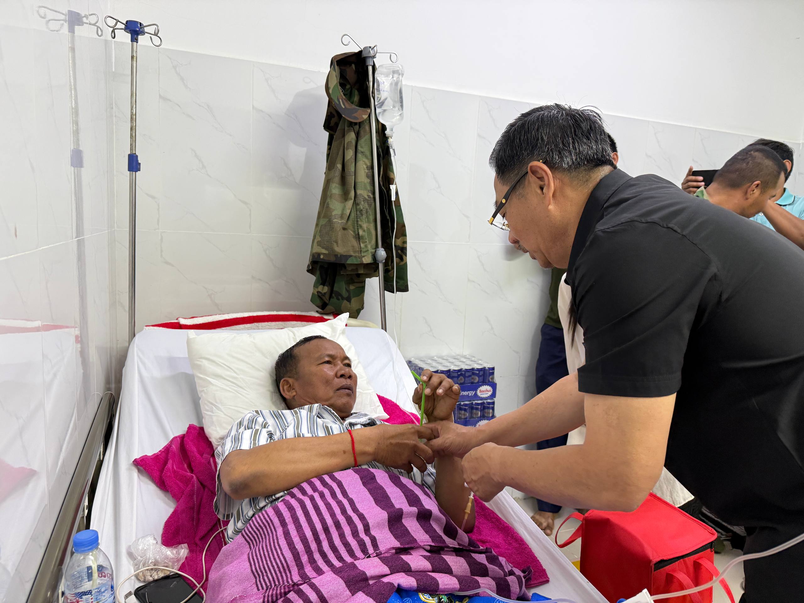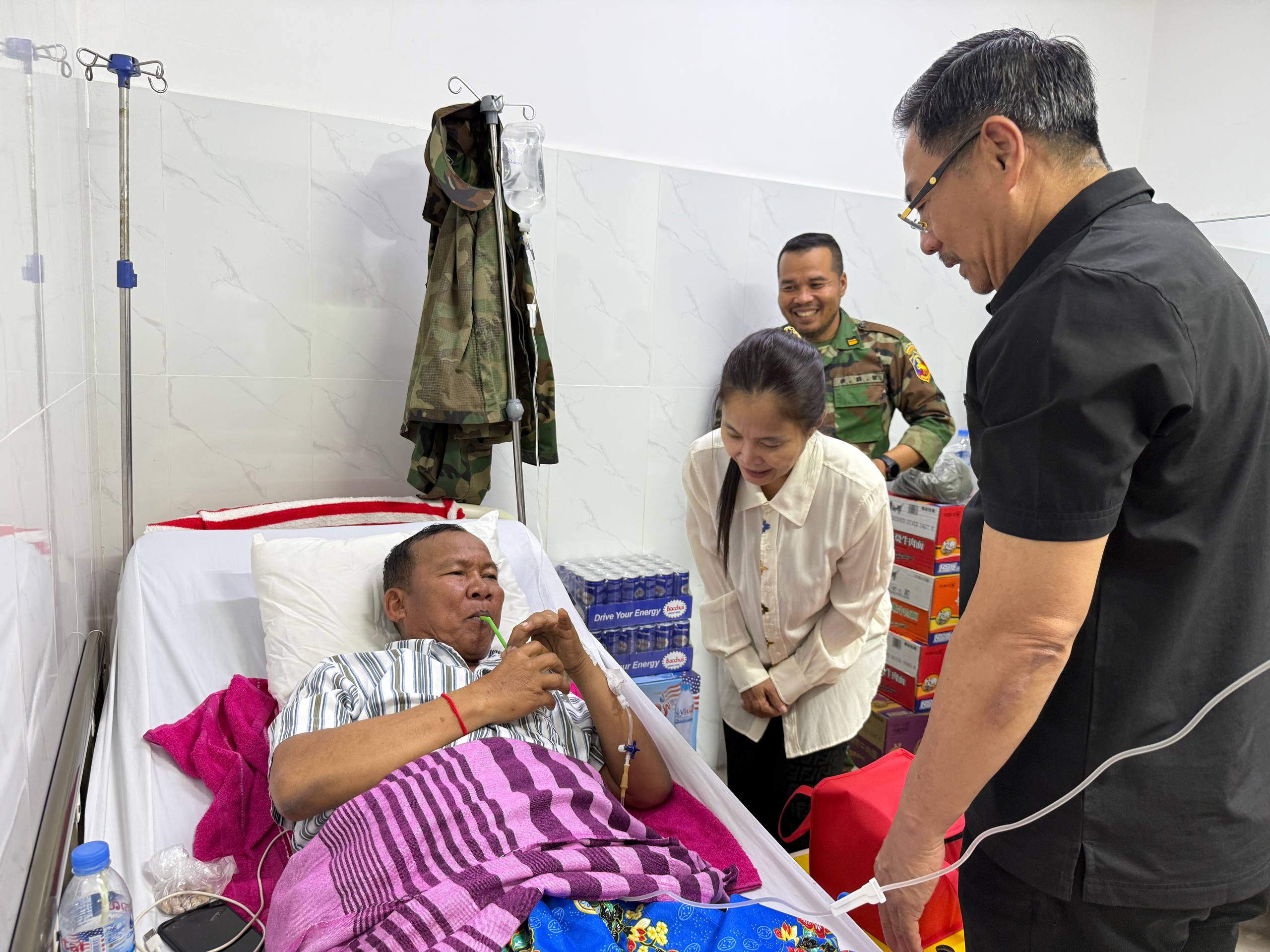 (ភ្នំពេញ)៖ នៅរសៀលថ្ងៃទី៣ ខែមករា ឆ្នាំ២០២៦នេះ លោកឧត្តមសេនីយ៍ឯក ជួន ណារិន្ទ អគ្គស្នងការរង និងជាស្នងការនគរបាលរាជធានីភ្នំពេញ និងលោកស្រី លីម ដារ៉ែន បានបន្ដអញ្ជើញចុះសួរសុខទុក្ខផ្ទាល់ជាមួយវីរកងទ័ព និងវីរកងនគរបាលកម្ពុជា ដែលបានរងរបួសក្នុងសមរភូមិប្រយុទ្ធកន្លងមក ក្នុងនោះក៏មានវីរកងទ័ពប្រចាំទិសប្រាសាទព្រះវិហារ ឈ្មោះបេ សុផាត ដែលបានរងរបួសភ្នែកទាំងសងខាងធ្ងន់ធ្ងរកំពុងសម្រាកទទួលការព្យាបាលយ៉ាងយកចិត្តទុកដាក់ពីសំណាក់ក្រុមគ្រូពេទ្យ នាមន្ទីរពេទ្យព្រះអង្គដួង។