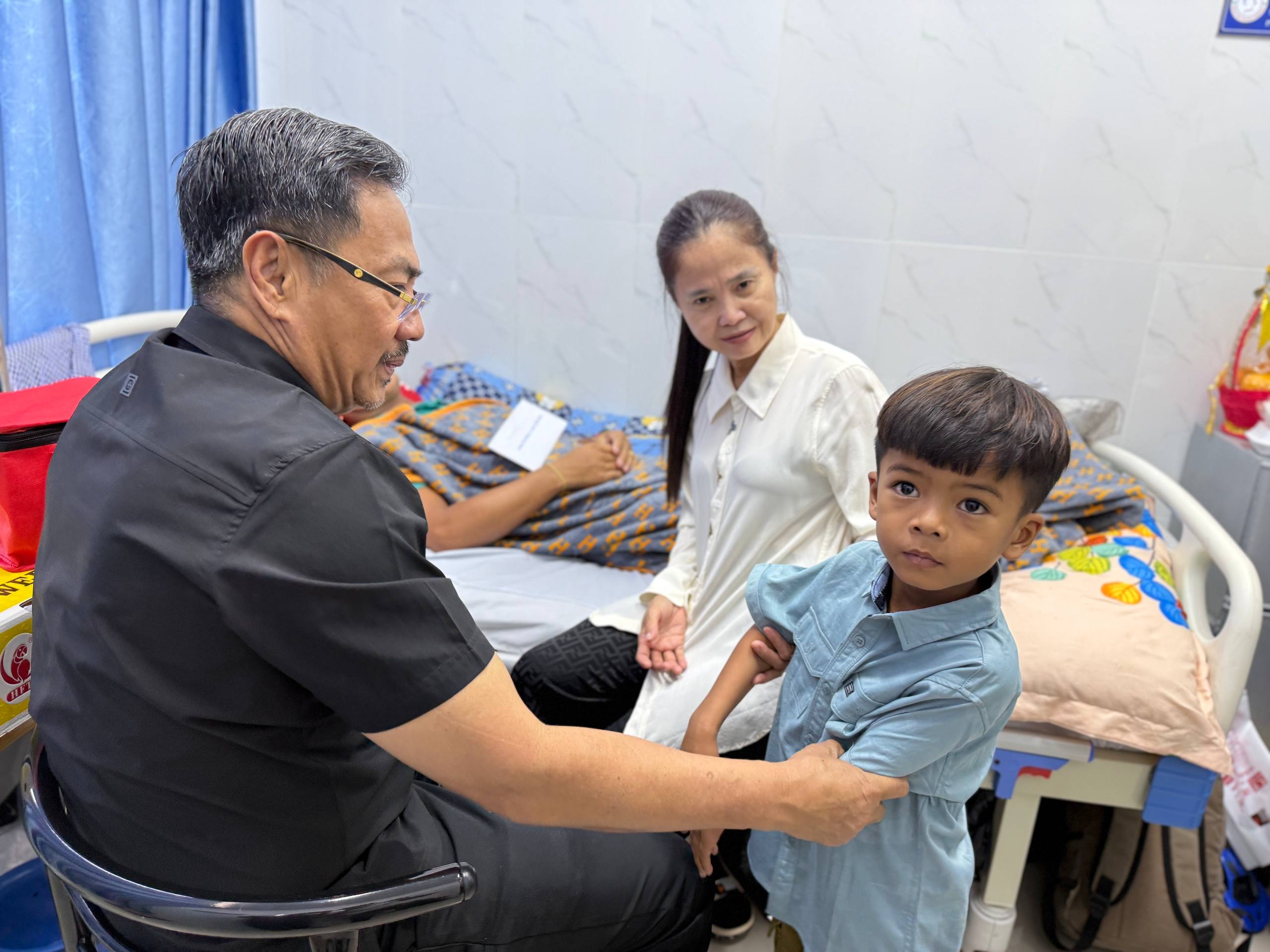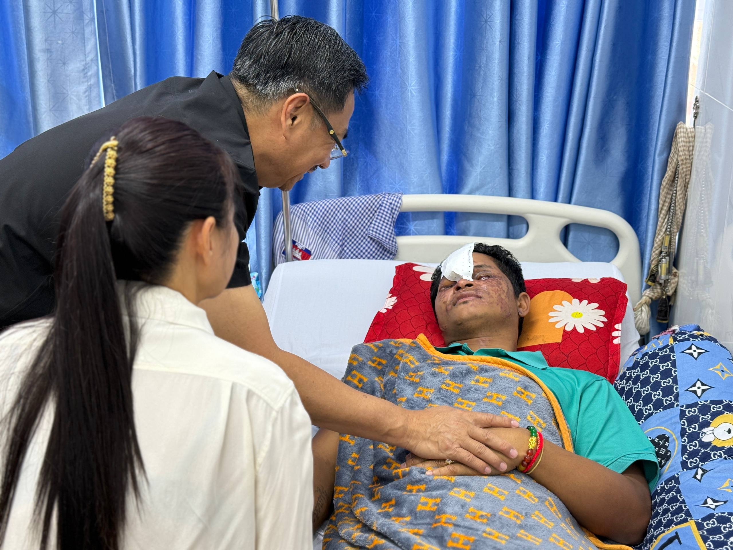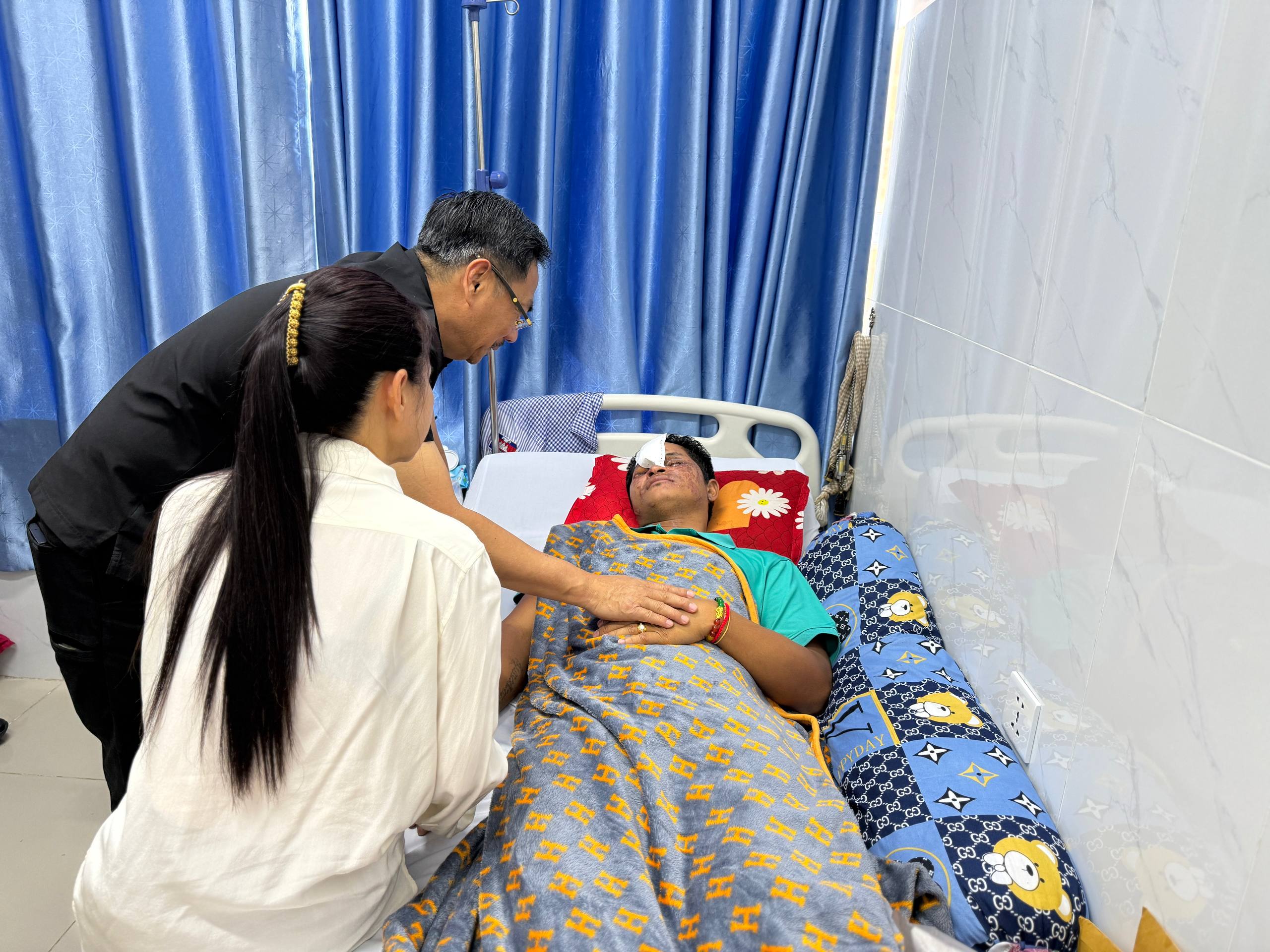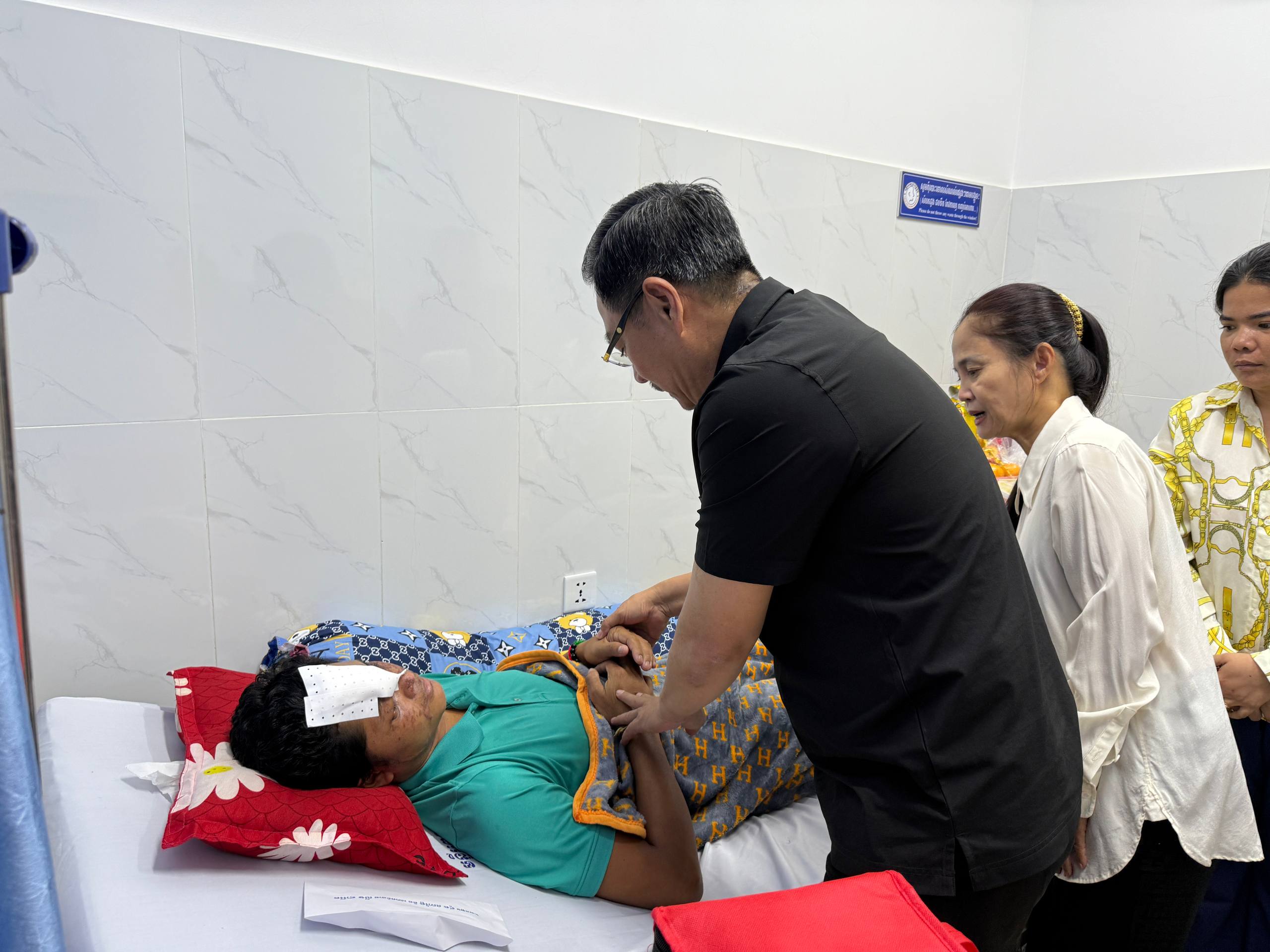 (ភ្នំពេញ)៖ នៅរសៀលថ្ងៃទី៣ ខែមករា ឆ្នាំ២០២៦នេះ លោកឧត្តមសេនីយ៍ឯក ជួន ណារិន្ទ អគ្គស្នងការរង និងជាស្នងការនគរបាលរាជធានីភ្នំពេញ និងលោកស្រី លីម ដារ៉ែន បានបន្ដអញ្ជើញចុះសួរសុខទុក្ខផ្ទាល់ជាមួយវីរកងទ័ព និងវីរកងនគរបាលកម្ពុជា ដែលបានរងរបួសក្នុងសមរភូមិប្រយុទ្ធកន្លងមក ក្នុងនោះក៏មានវីរកងទ័ពប្រចាំទិសប្រាសាទព្រះវិហារ ឈ្មោះបេ សុផាត ដែលបានរងរបួសភ្នែកទាំងសងខាងធ្ងន់ធ្ងរកំពុងសម្រាកទទួលការព្យាបាលយ៉ាងយកចិត្តទុកដាក់ពីសំណាក់ក្រុមគ្រូពេទ្យ នាមន្ទីរពេទ្យព្រះអង្គដួង។