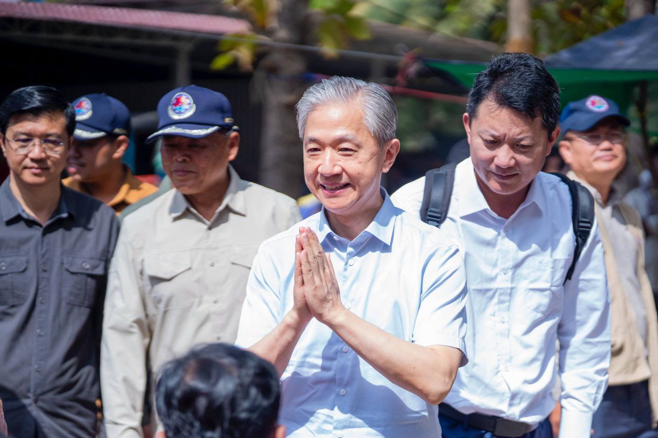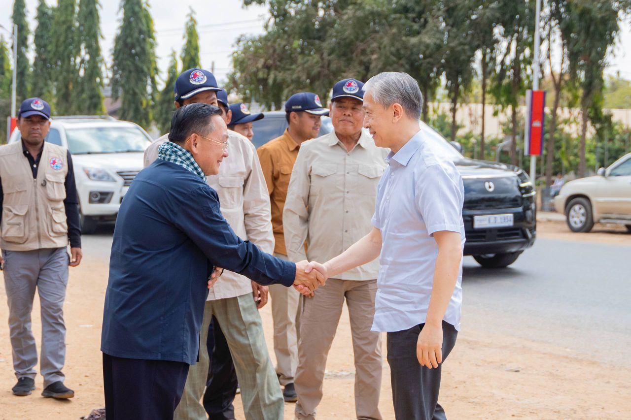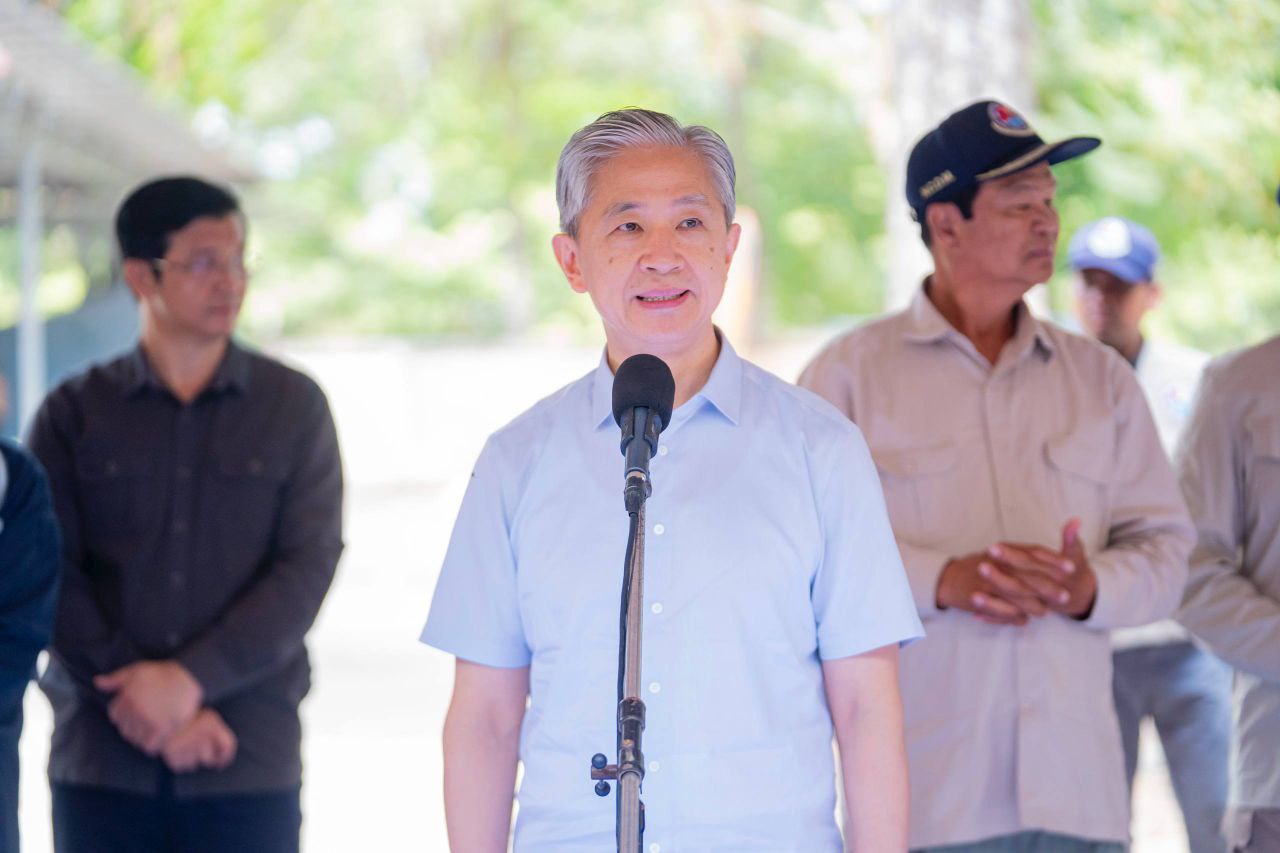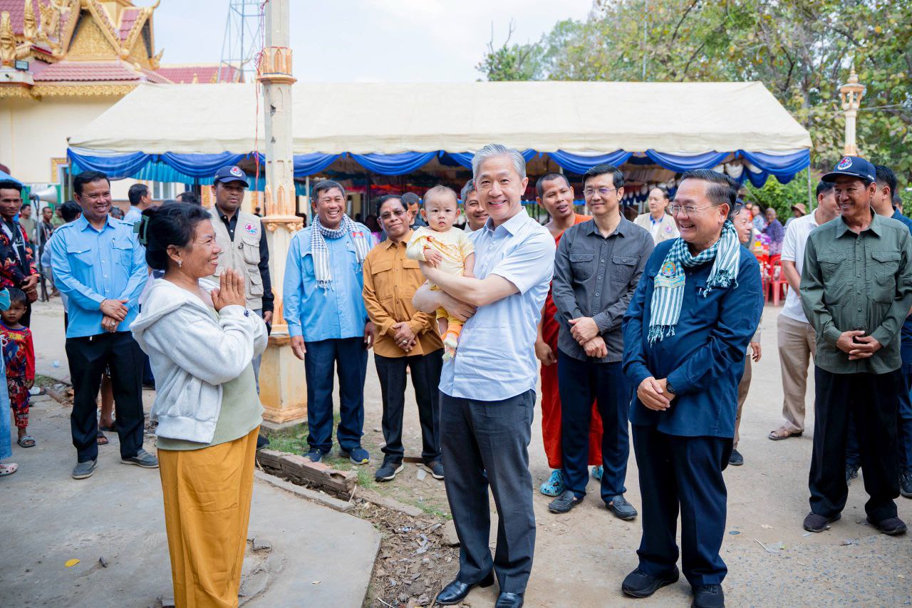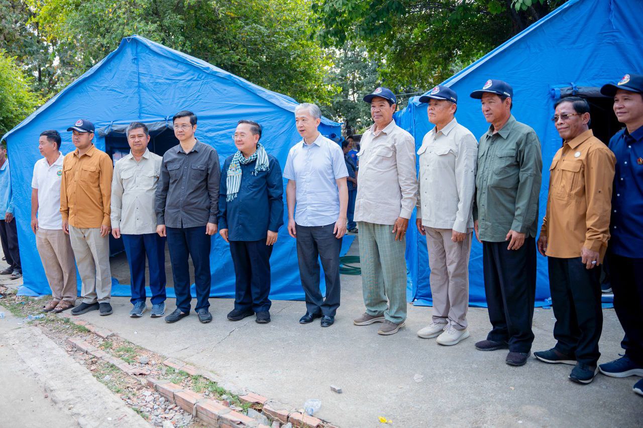 (បាត់ដំបង)៖ លោក Wang Wenbin ឯកអគ្គរដ្ឋទូតចិនប្រចាំកម្ពុជា និងលោកកិត្តិសង្គហបណ្ឌិត គន់ គីម ទេសរដ្ឋមន្ត្រី អនុប្រធានទី១ គណៈកម្មាធិការជាតិគ្រប់គ្រងគ្រោះមហន្តរាយ អមដំណើរដោយលោក សុខ លូ អភិបាលខេត្តបាត់ដំបង នៅថ្ងៃទី០៣ ខែមករា ឆ្នាំ២០២៦ បានចុះសាកសួរសុខទុក្ខ និងនាំយកអំណោយរបស់រដ្ឋាភិបាលចិន ឧបត្ថម្ភជូនប្រជាពលរដ្ឋភៀសសឹកចំនួន ១,២០០គ្រួសារ នៅក្នុងឃុំខ្នាចរមាស ស្រុកបវេល ខេត្តបាត់ដំបង។