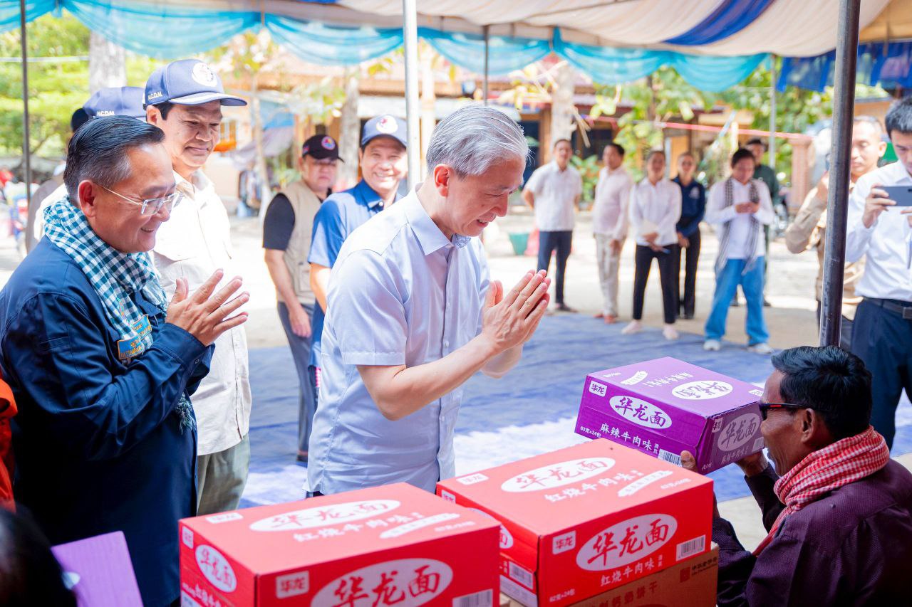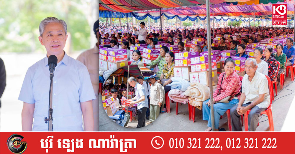 ឯកអគ្គរដ្ឋទូតចិនប្រចាំកម្ពុជា និងទេសរដ្ឋមន្រ្តី គន់ គីម នាំយកអំណោយរបស់រដ្ឋាភិបាលចិន ចុះចែកជូនប្រជាពលរដ្ឋភៀសសឹក ១,២០០គ្រួសារ នៅខេត្តបាត់ដំបង