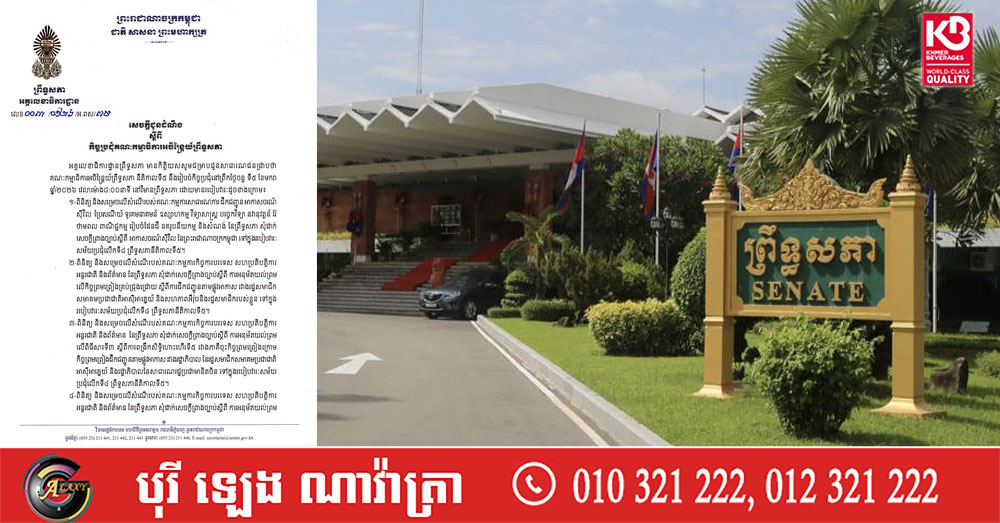 ព្រឹទ្ធសភា នឹងបើកកិច្ចប្រជុំគណៈកម្មាធិការអចិន្ត្រៃយ៍ នាព្រឹកស្អែកនេះ ដោយមានរបៀបវារៈចំនួន៦