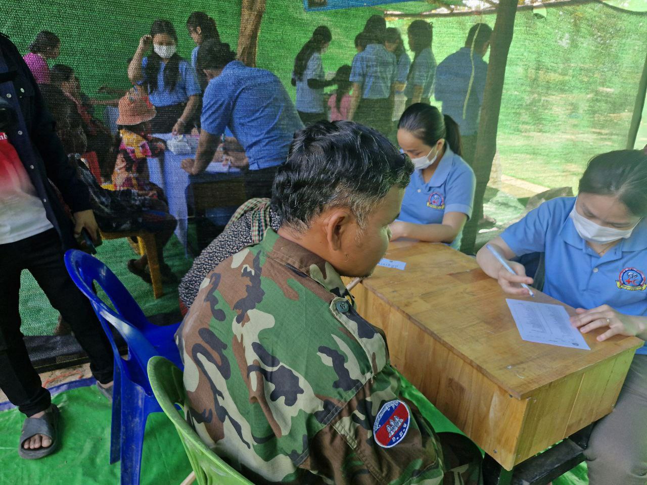 ក្រុមគ្រូពេទ្យស្ម័គចិត្តឯកឧត្តម ហ៊ុន ម៉ានី ចុះពិនិត្យព្យាបាលជំងឺ និងចែកជូនឱសថដោយមិនគិតថ្លៃ ជូនជនភៀសសឹក ស្នាក់នៅបណ្តោះអាសន្នក្នុងវត្តពង្រ