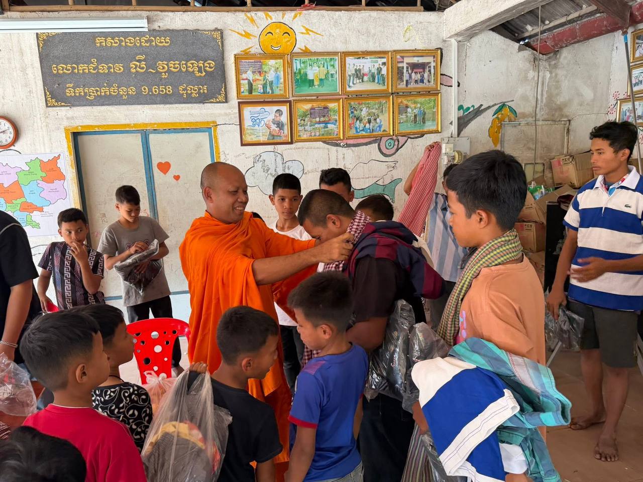 (កំពង់ស្ពឺ)៖ ព្រះរតនសោភ័ណ ម៉ន បឿន ព្រះចៅអធិការវត្តចំបក់ពោធិ៍ពាន់ ជាព្រះវិន័យធរគណខេត្តកំពង់ស្ពឺ (ស្តីទី) នៅថ្ងៃអាទិត្យ ១រោច ខែបុស្ស ឆ្នាំម្សាញ់ សប្តស័ក ពុទ្ធសករាជ ២៥៦៩ ត្រូវនឹងថ្ងៃទី៤ ខែមករា ឆ្នាំ២០២៦ បាននិមន្តនាំយកសម្ភារៈ ថវិកា អាហារស្បៀង សំលៀកបំពាក់ ចុះចែកកុមារកំព្រា ចំនួន៤៥នាក់ នៅមណ្ឌលកុមារកំព្រាត្រែងត្រយឹង ខេត្តកំពង់ស្ពឺ។