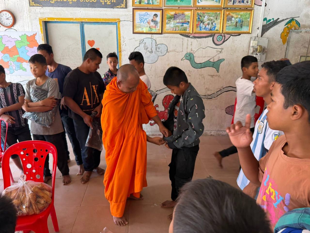 ព្រះវិន័យធរគណខេត្តកំពង់ស្ពឺ ស្តីទី នាំយកសម្ភារៈ ថវិកា អាហារស្បៀង សំលៀកបំពាក់ ចុះចែកក្មេងកំព្រាជិត៥០នាក់ នៅមណ្ឌលកុមារកំព្រា ត្រែងត្រយឹង