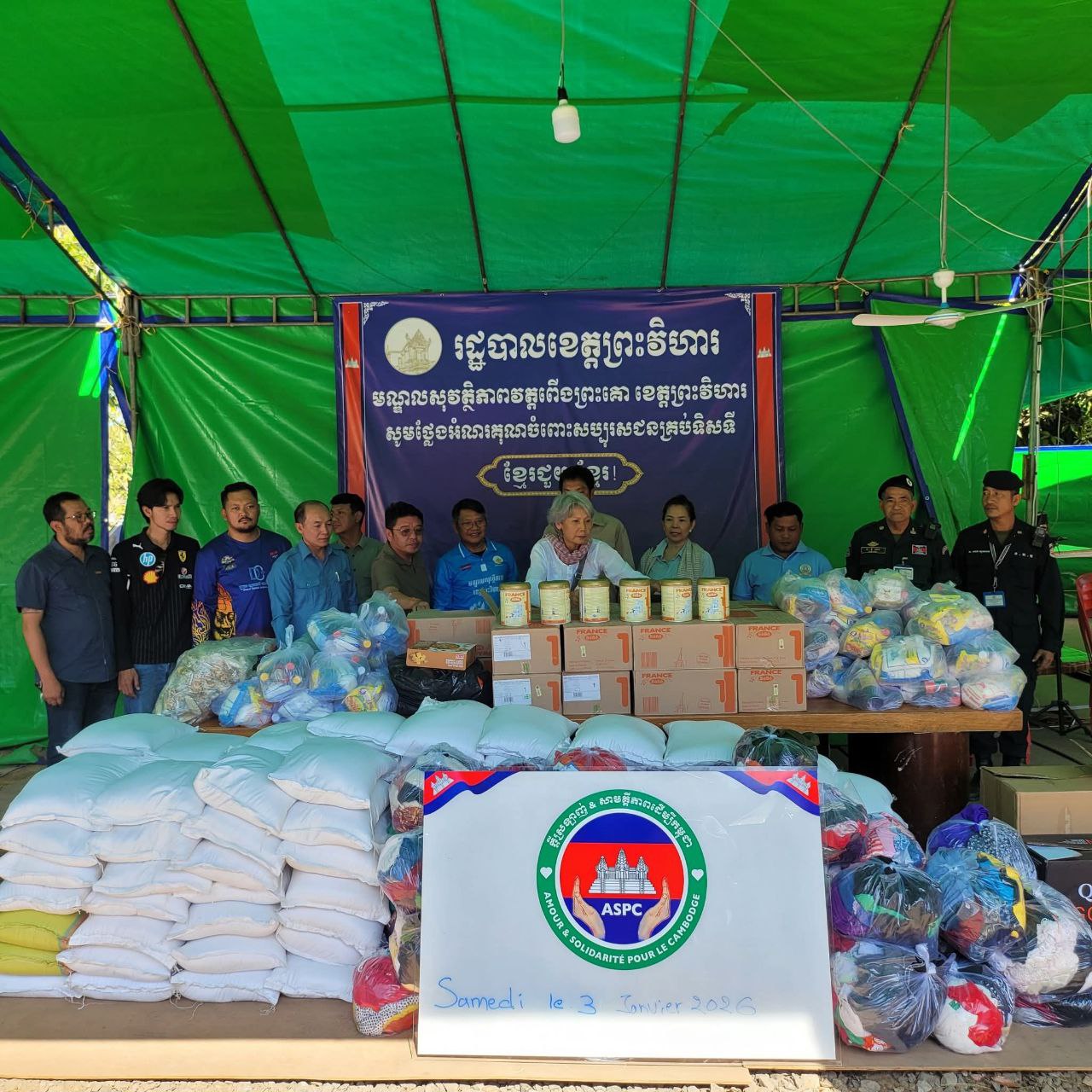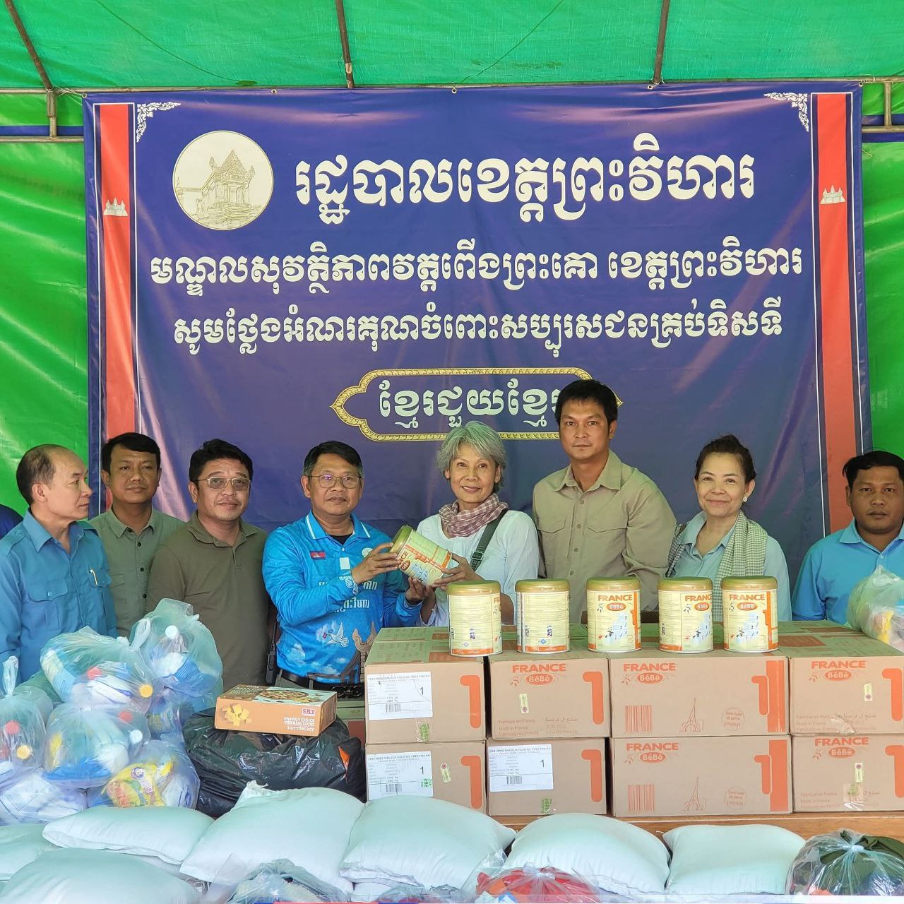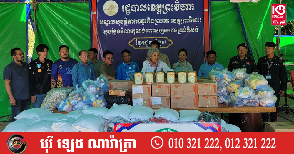 (ព្រះវិហារ)៖ លោក ប៊ុន រ៉េត ប្រធានសមាគមន៍ម៉ូតូBMWប្រចាំកម្ពុជា និងក្រុមការងារសមាគមន៍ខ្មែ-បារាំង នៅថ្ងៃទី០៤ ខែមករា ឆ្នាំ២០២៦នេះ បាននាំយកអំណោយម្សៅទឹកដោះគោសម្រាប់ទារក សម្លៀកបំពាក់ និងគ្រឿងឧបភោគបរិភោគ សម្ភារៈប្រើប្រាស់ ចែកជូនប្រជាពលរដ្ឋភៀសសឹកចំនួន ២៥០គ្រួសារ កំពុងស្នាក់នៅបណ្តោះអាសន្នមណ្ឌលសុវត្ថិភាពវត្តពើងព្រះគោ ស្រុកត្បែងមានជ័យ ក្រោមវត្តមានលោក អ៊ុក គឹមសាន អភិបាលរងខេត្តព្រះវិហារ និងជាប្រធានគ្រប់គ្រងមណ្ឌលភៀសសឹក និងក្រុមការងារ។