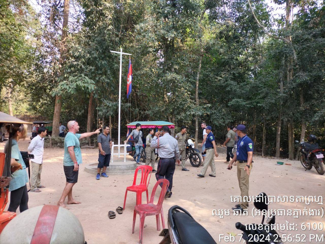 ១៖ រឿងហេតុបានកើតឡើងតាំងពីថ្ងៃទី០៧ ខែកុម្ភៈ ឆ្នាំ២០២៤ មកម៉្លេះ។ ករណីនេះ គឺជាជម្លោះឯកជនរវាងភ្ញៀវទេសចរជនជាតិអាមេរិក១រូប និងភ្ញៀវជនជាតិរុស្ស៊ី១រូបផ្សេងទៀត ដែលពុំមានពាក់ព័ន្ធជាមួយនឹងស្ថាប័នមានសមត្ថកិច្ចរបស់កម្ពុជាទេ ដោយមូលហេតុភាគីទាំងពីរ ដណ្តើមគ្នាយកទីតាំងថតរូប និងប្រើប្រាស់ភាសាហិង្សាដាក់គ្នាទៅវិញទៅមក នៅ បរិវេណខាងកើតសាលរបាំនៃប្រាសាទតាព្រហ្ម។