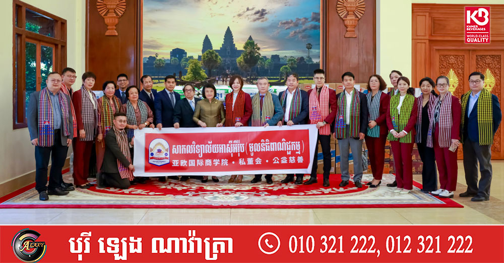 (ភ្នំពេញ)៖ សម្តេចមហារដ្ឋសភាធិការធិបតី ឃួន សុដារី ប្រធានរដ្ឋសភានៃកម្ពុជា នៅព្រឹកថ្ងៃទី៦ ខែមករា ឆ្នាំ២០២៦ បានអនុញ្ញតជូន គណៈប្រតិភូធុរជនចិនដែលវិនិយោគនៅកម្ពុជា ដឹកនាំដោយលោកស្រី ខារី លីវ នាយកប្រតិបត្តិមហាវិទ្យាល័យពាណិជ្ជកម្មអន្តរជាតិ នៃសាកលវិទ្យាល័យអាស៊ី -អឺរ៉ុប ចូលជួបសម្តែងការគួរសម ដើម្បីទទួលអនុសាសន៍និងបានប្រគល់អំណោយសប្បុរសធម៌ ជូនសម្តេចប្រធានរដ្ឋសភា សម្រាប់ចែកជូនវីរយុទ្ធជននៅសមរភូមិមុខនិងពលរដ្ឋភៀសសឹក។