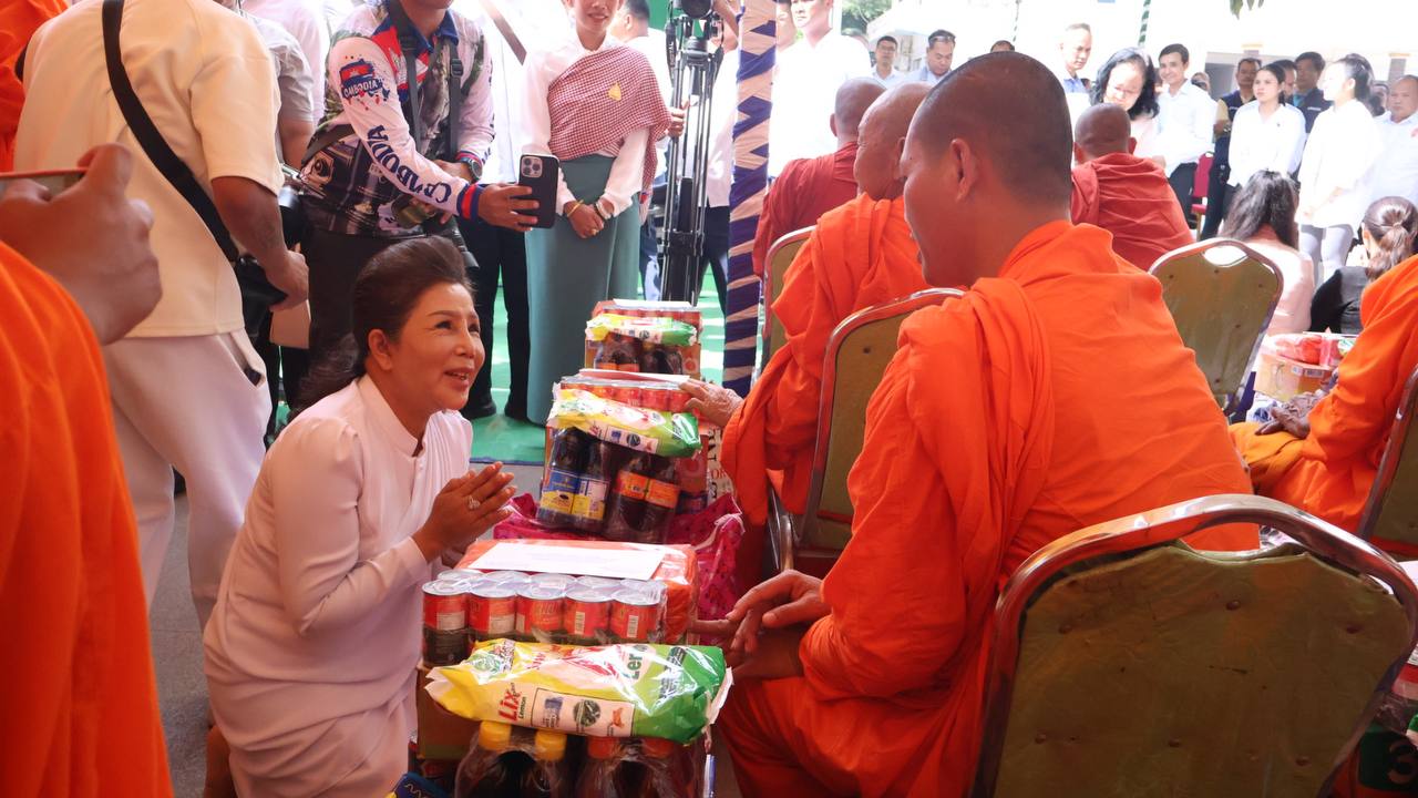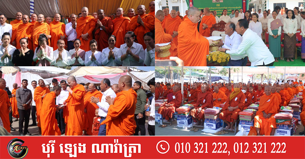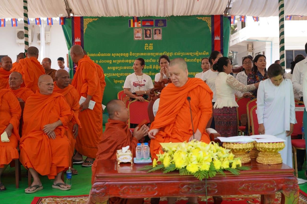សម្ដេចព្រះមហាសុមេធាធិបតី អំ លីមហេង យាងប្រគេនទេយ្យទានដ៏ថ្លៃថ្លាផ្ទាល់ដល់ព្រះសង្ឃភៀសសឹក ១៤០០អង្គ នៅខេត្តបន្ទាយមានជ័យ