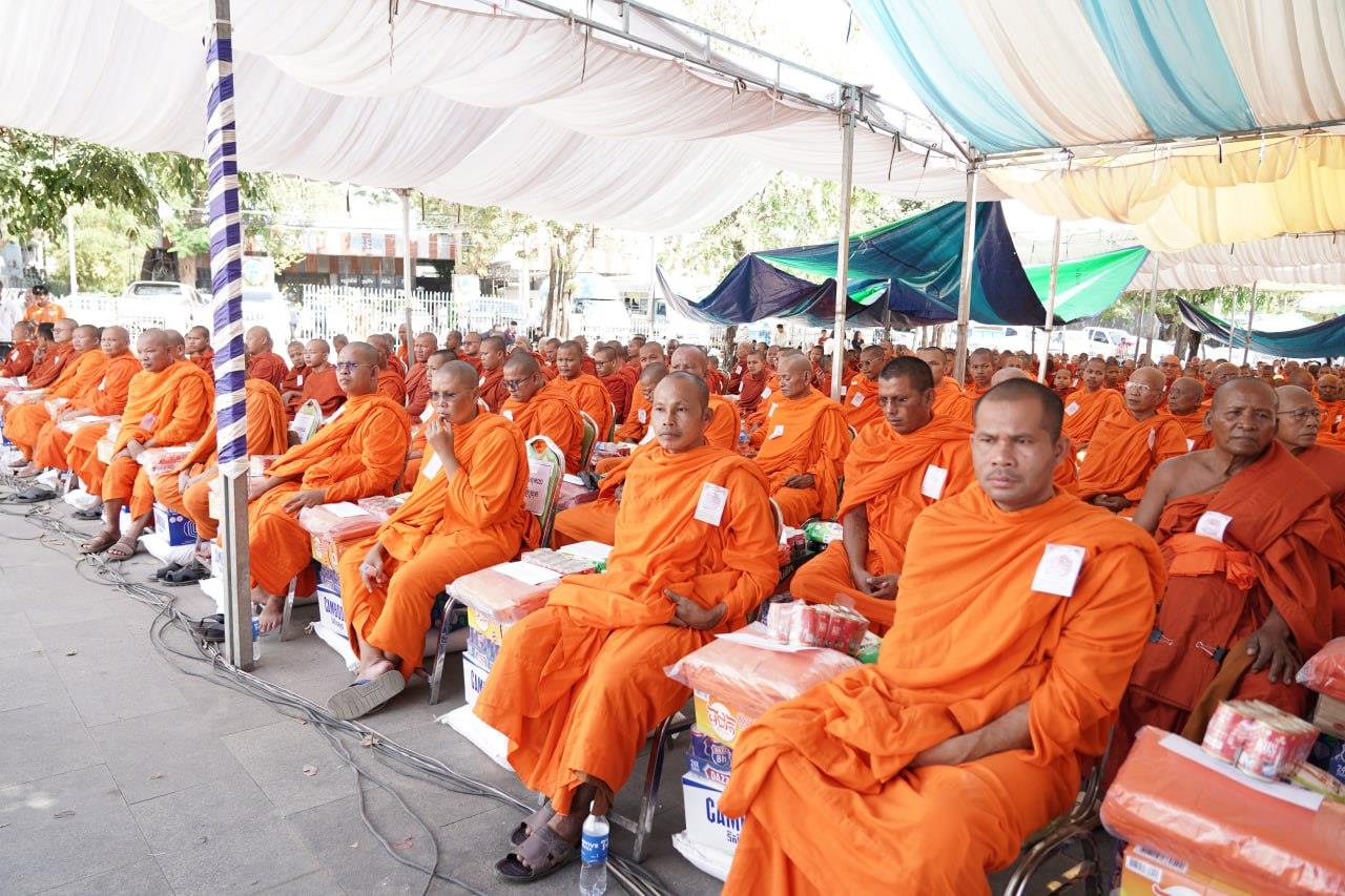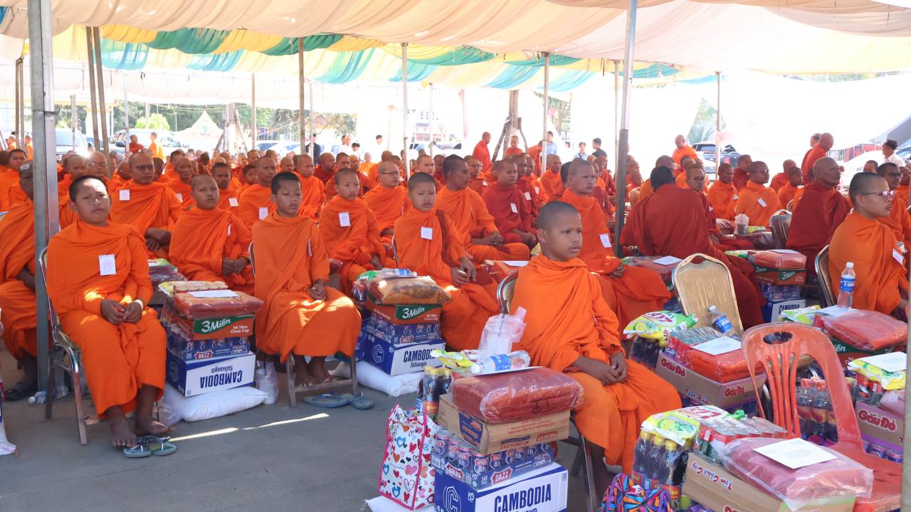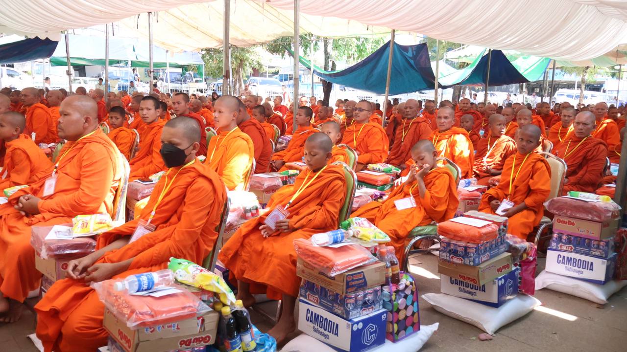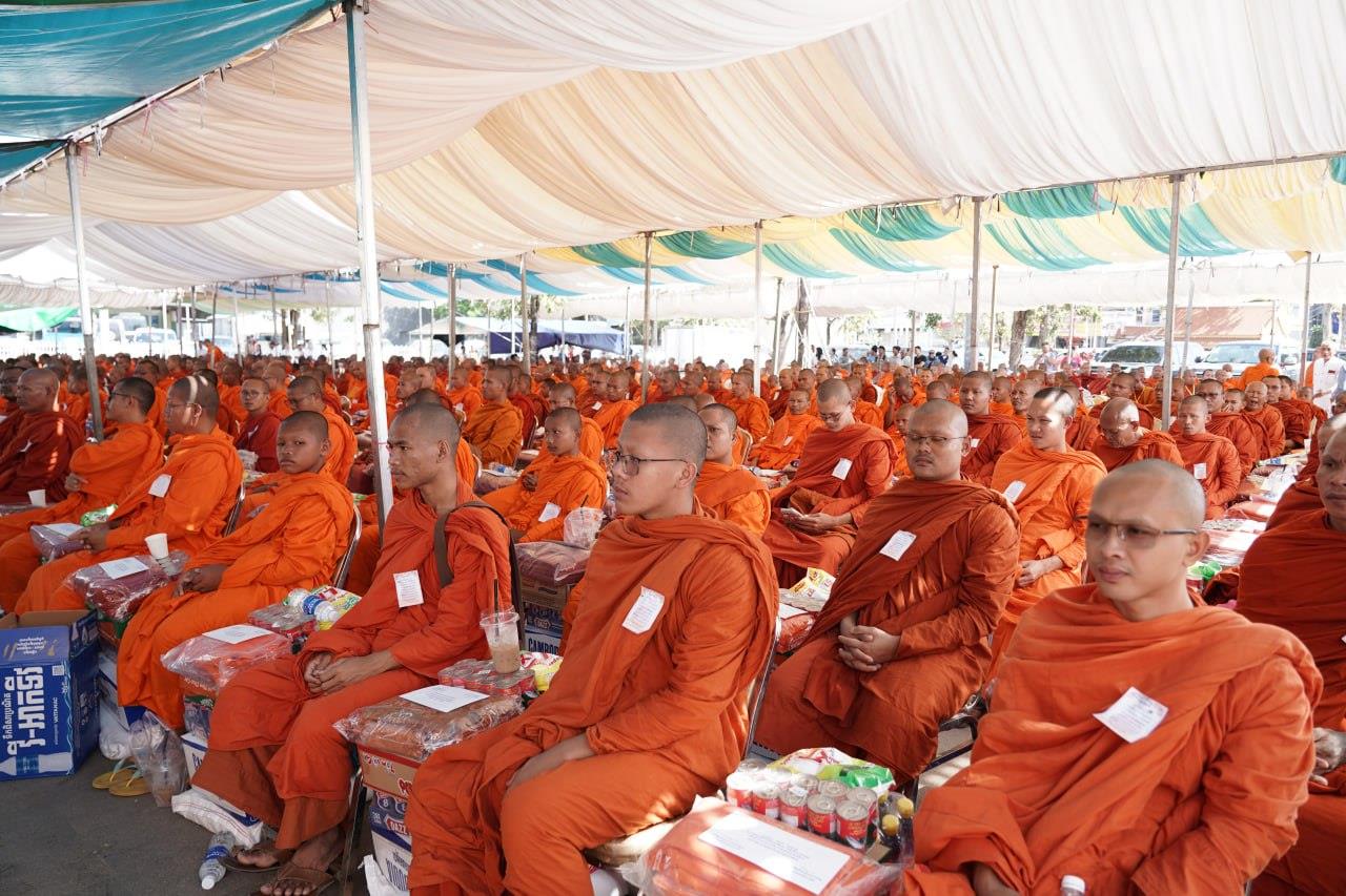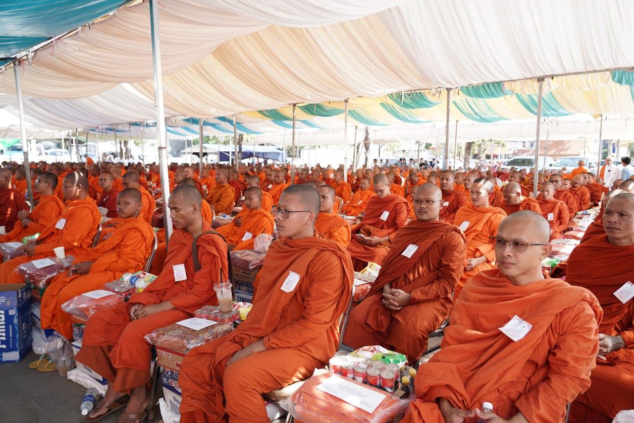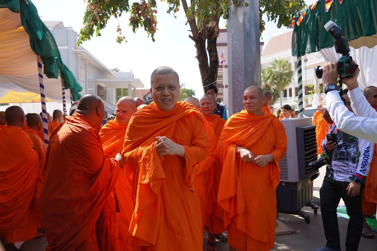 (បន្ទាយមានជ័យ)៖ សម្តេចព្រះមហាសុមេធាធិបតី កិត្តិបណ្ឌិត អំ លឹមហេង សម្តេចព្រះសង្ឃនាយក គណៈមហានិកាយ នៃព្រះរាជាណាចក្រកម្ពុជា អមព្រះរាជដំណើរដោយសម្តេចព្រះសង្ឃនាយករង សម្តេច ព្រះរាជាគណៈ ប្រតិភូសង្ឃជាន់ខ្ពស់ នៅរសៀលថ្ងៃទី៦ ខែមករា ឆ្នាំ២០២៥ បានយាងមកសំណេះសំណាល សួរសុខទុក្ខ និងប្រគេនទេយ្យទានដ៏ថ្លៃថ្លាផ្ទាល់ដល់ព្រះសង្ឃភៀសសឹកចំនួន ១៤០០អង្គ នៅខេត្តបន្ទាយមានជ័យ។