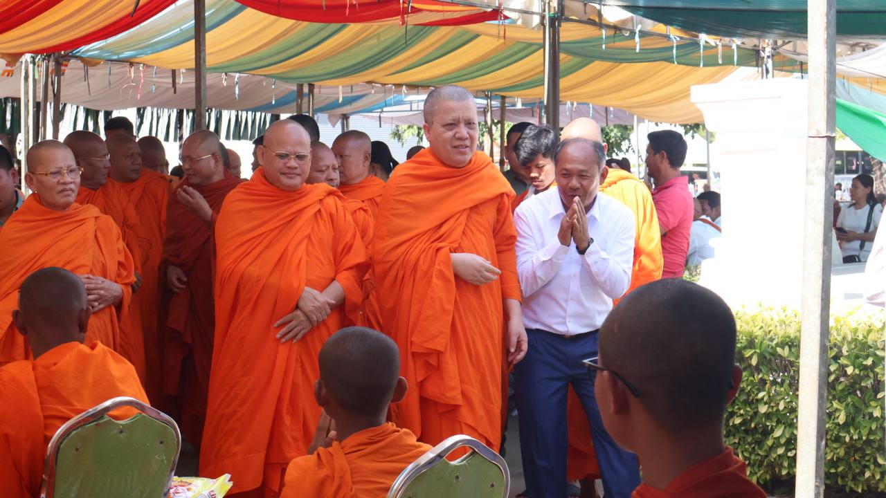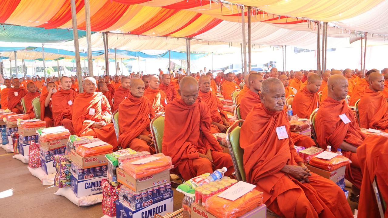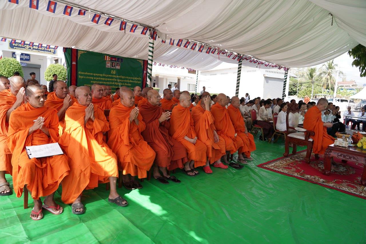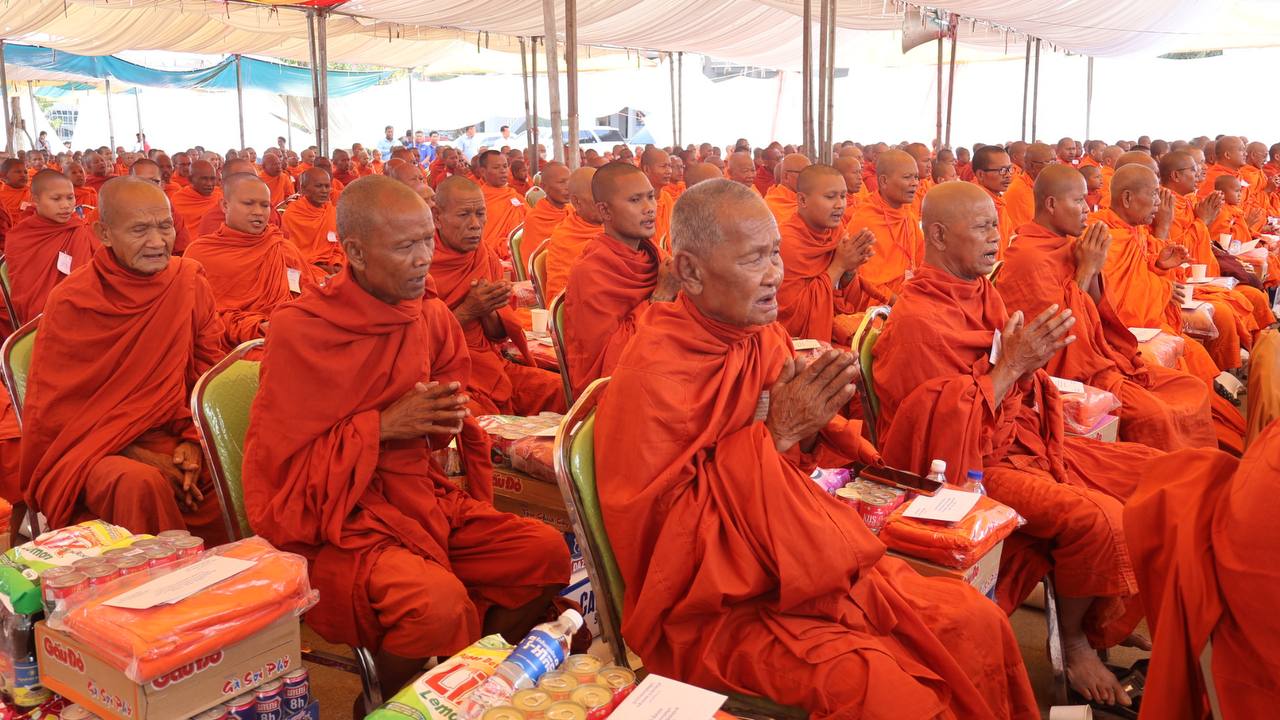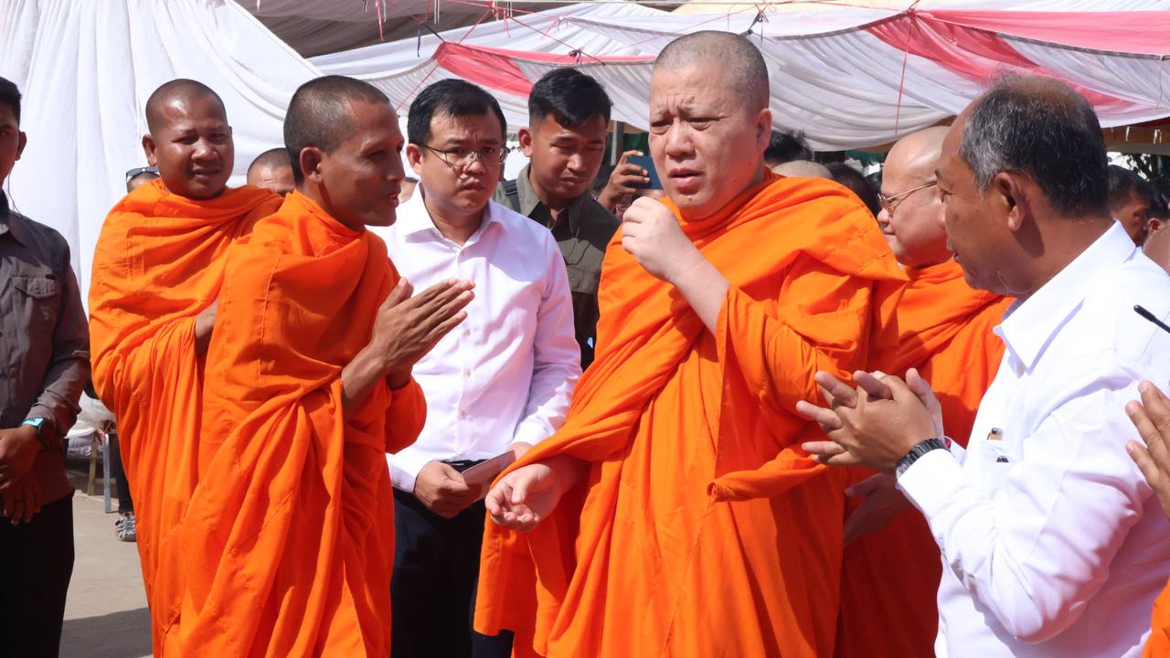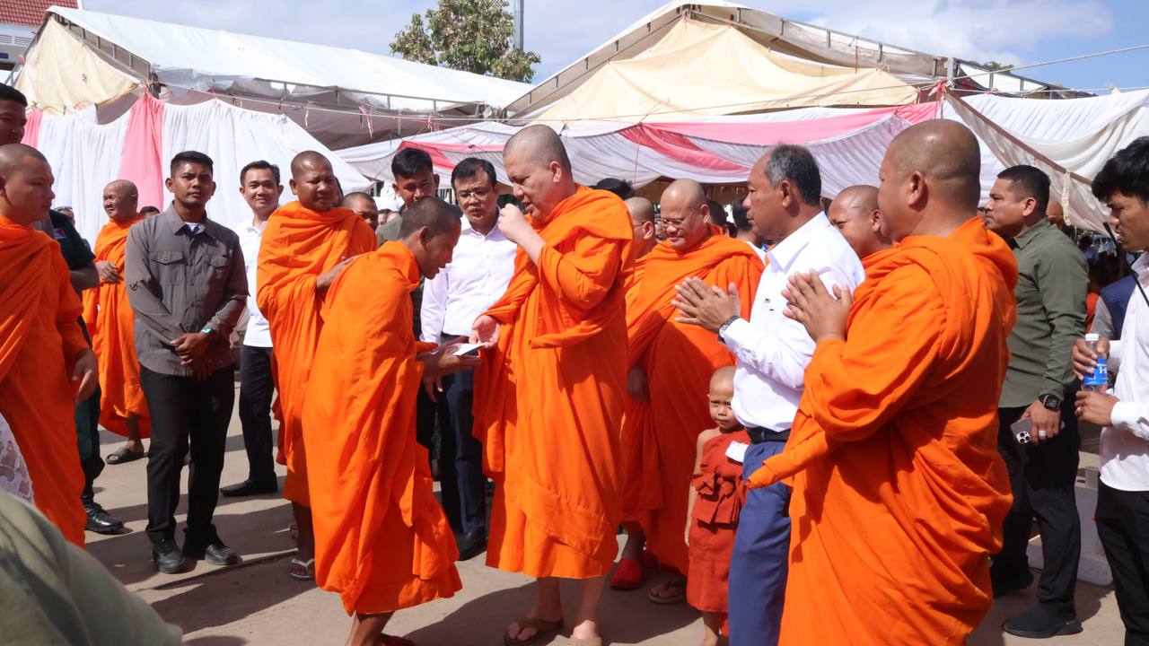 (បន្ទាយមានជ័យ)៖ សម្តេចព្រះមហាសុមេធាធិបតី កិត្តិបណ្ឌិត អំ លឹមហេង សម្តេចព្រះសង្ឃនាយក គណៈមហានិកាយ នៃព្រះរាជាណាចក្រកម្ពុជា អមព្រះរាជដំណើរដោយសម្តេចព្រះសង្ឃនាយករង សម្តេច ព្រះរាជាគណៈ ប្រតិភូសង្ឃជាន់ខ្ពស់ នៅរសៀលថ្ងៃទី៦ ខែមករា ឆ្នាំ២០២៥ បានយាងមកសំណេះសំណាល សួរសុខទុក្ខ និងប្រគេនទេយ្យទានដ៏ថ្លៃថ្លាផ្ទាល់ដល់ព្រះសង្ឃភៀសសឹកចំនួន ១៤០០អង្គ នៅខេត្តបន្ទាយមានជ័យ។
