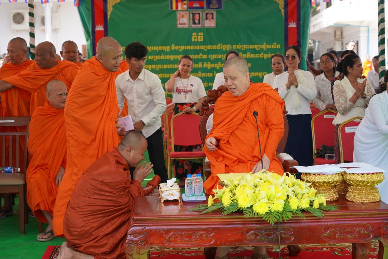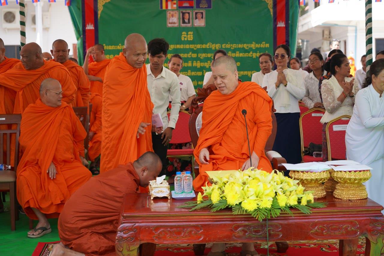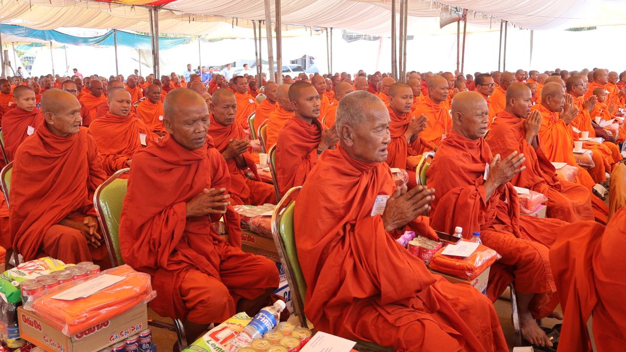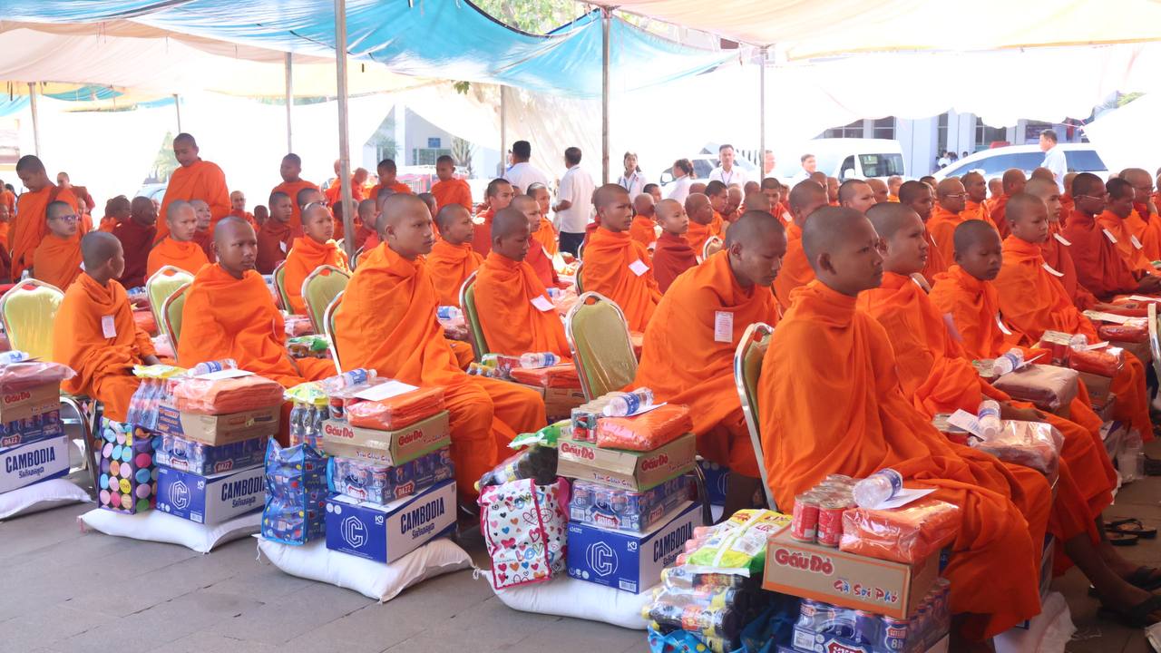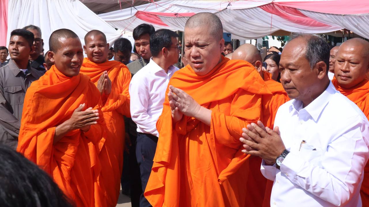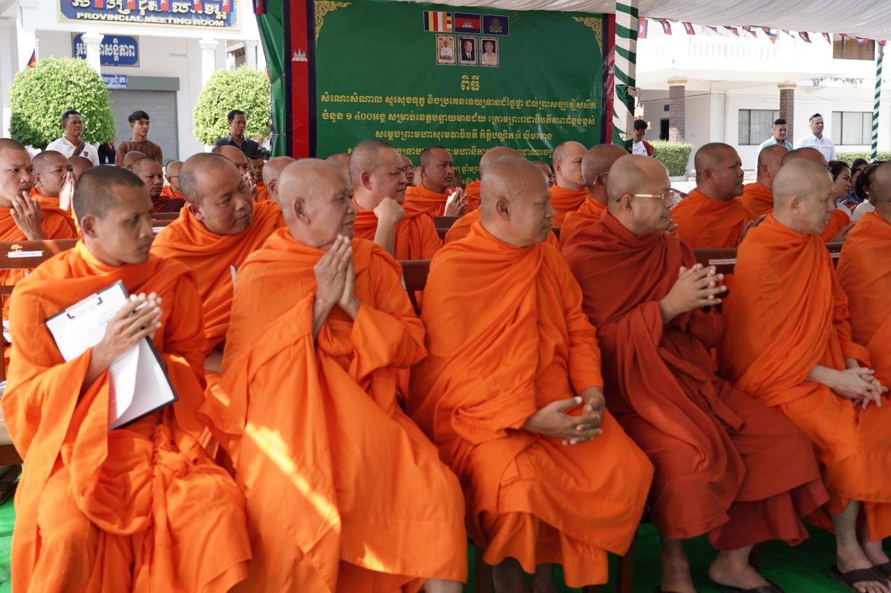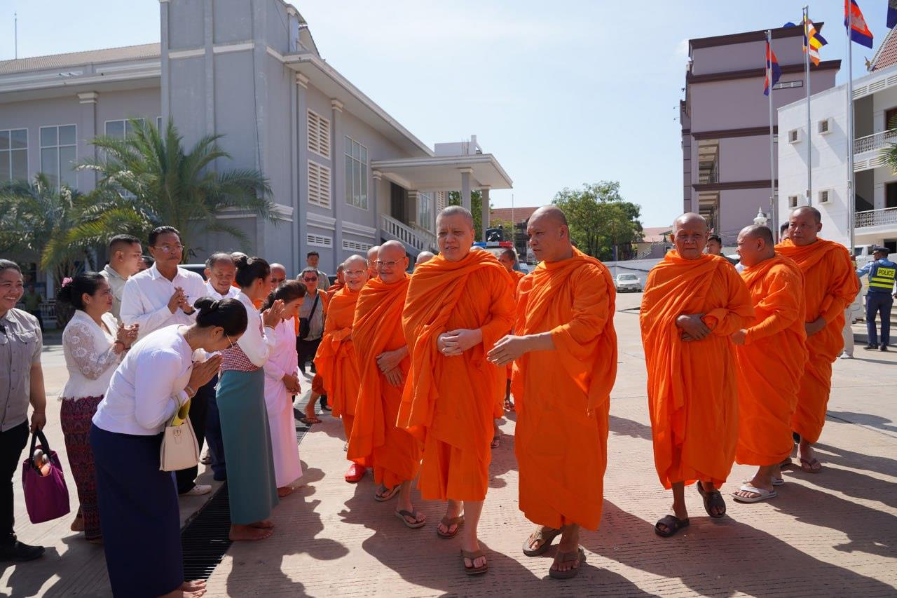 (បន្ទាយមានជ័យ)៖ សម្តេចព្រះមហាសុមេធាធិបតី កិត្តិបណ្ឌិត អំ លឹមហេង សម្តេចព្រះសង្ឃនាយក គណៈមហានិកាយ នៃព្រះរាជាណាចក្រកម្ពុជា អមព្រះរាជដំណើរដោយសម្តេចព្រះសង្ឃនាយករង សម្តេច ព្រះរាជាគណៈ ប្រតិភូសង្ឃជាន់ខ្ពស់ នៅរសៀលថ្ងៃទី៦ ខែមករា ឆ្នាំ២០២៥ បានយាងមកសំណេះសំណាល សួរសុខទុក្ខ និងប្រគេនទេយ្យទានដ៏ថ្លៃថ្លាផ្ទាល់ដល់ព្រះសង្ឃភៀសសឹកចំនួន ១៤០០អង្គ នៅខេត្តបន្ទាយមានជ័យ។