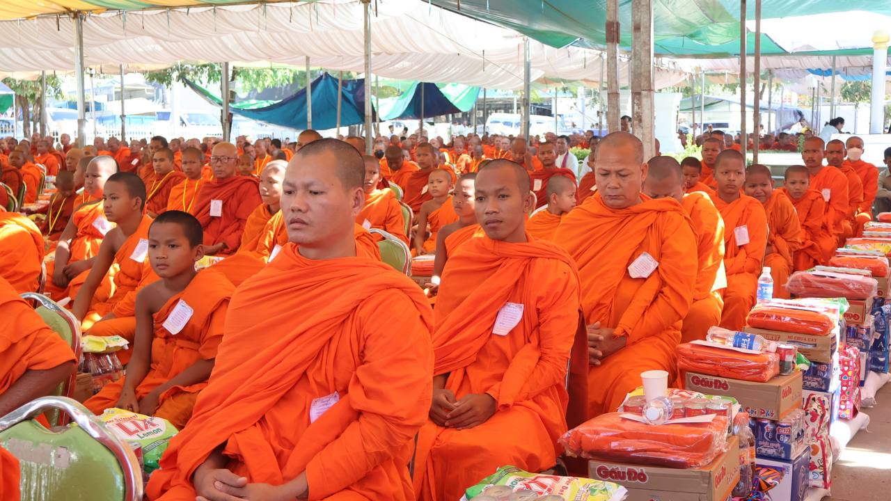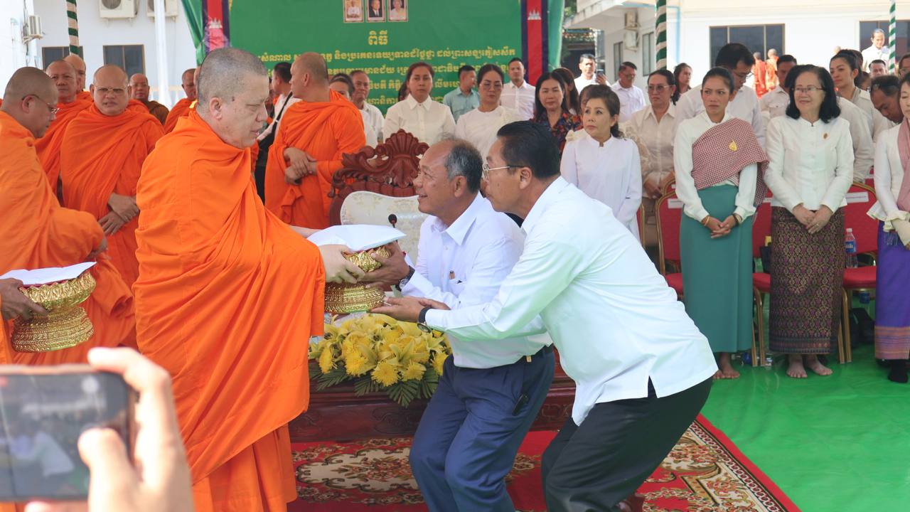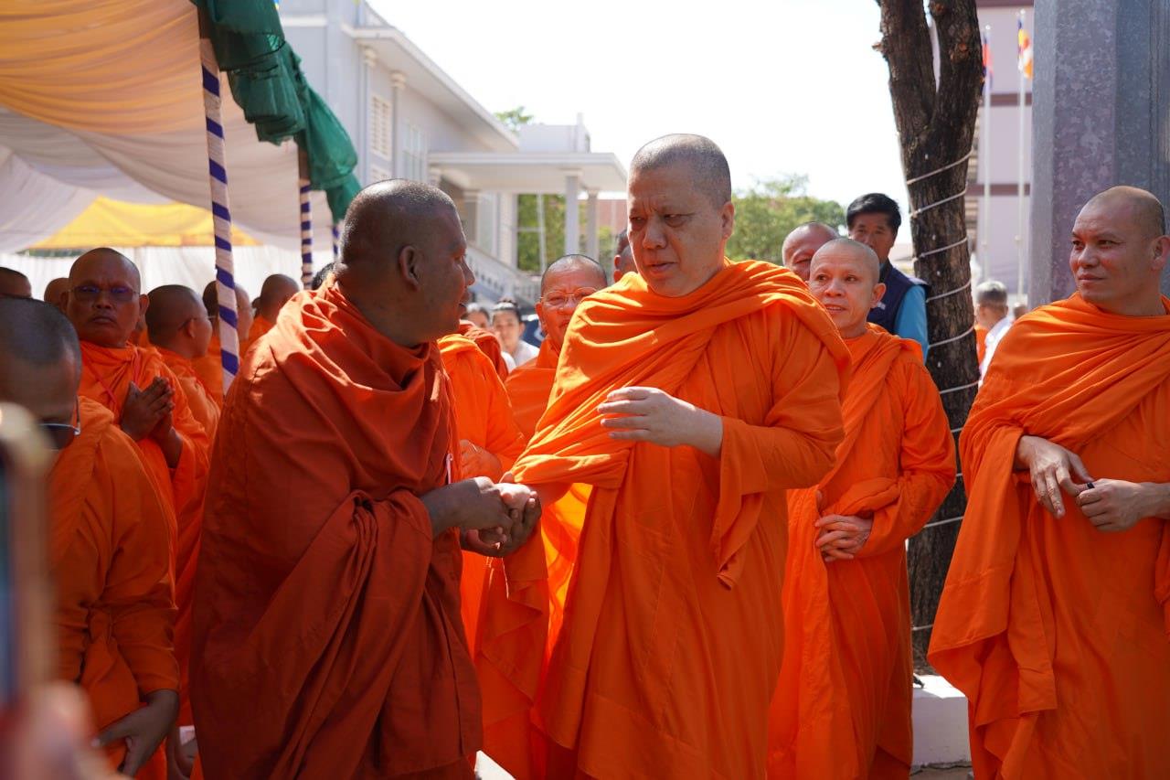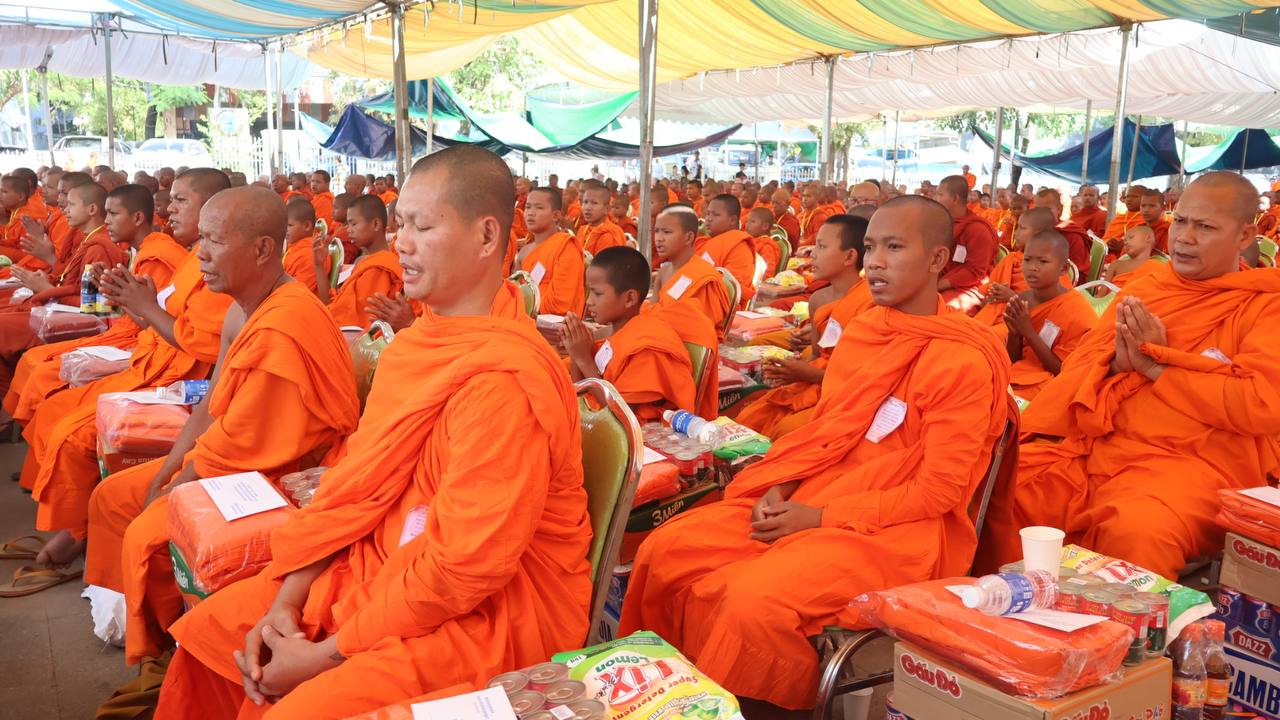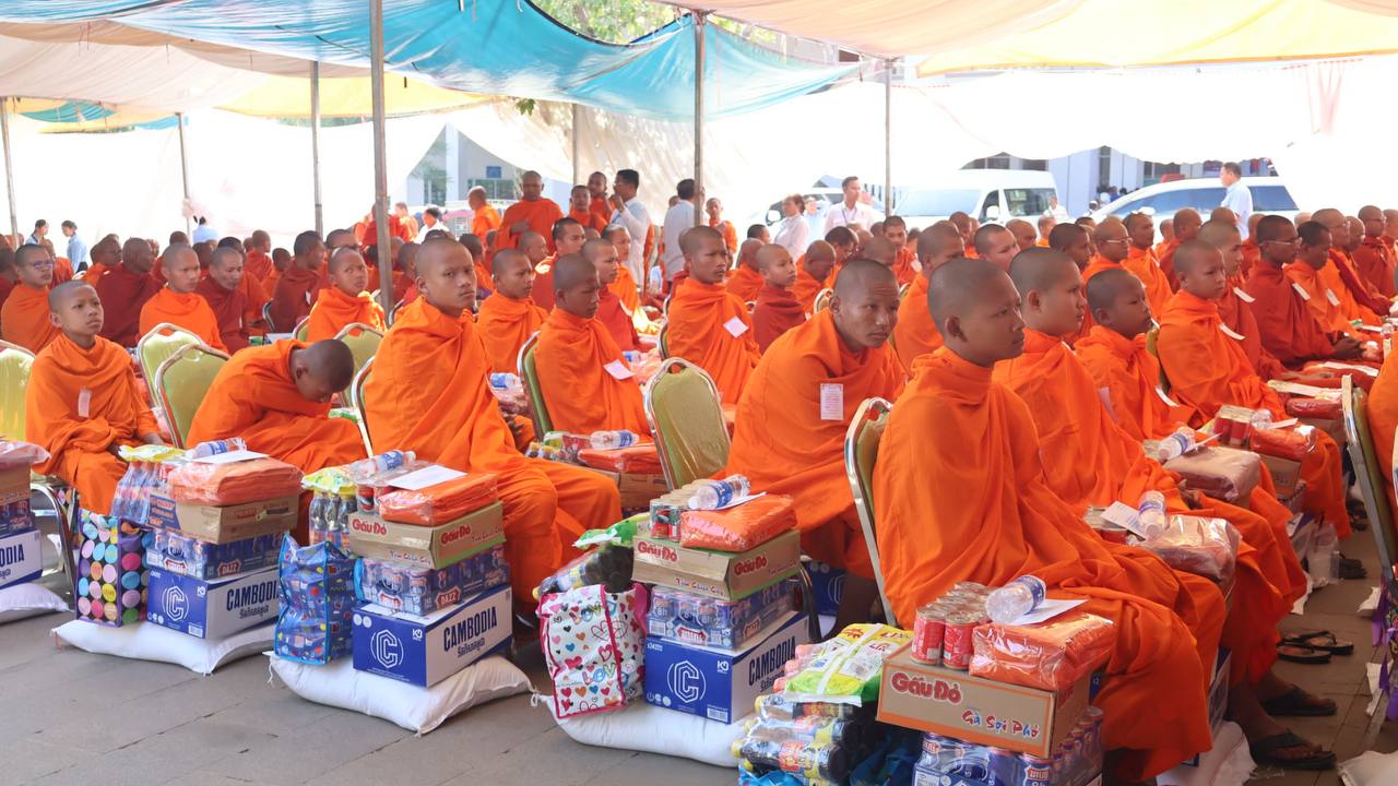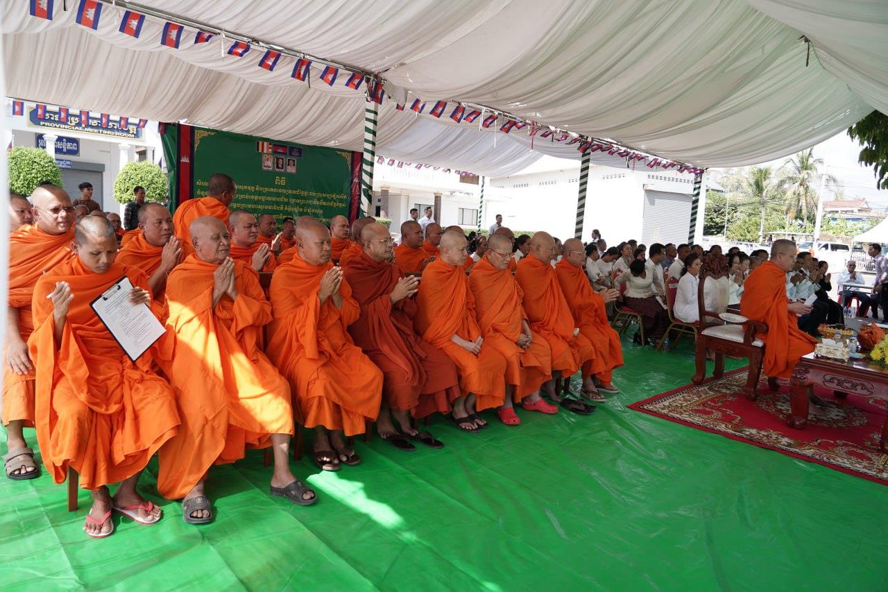 (បន្ទាយមានជ័យ)៖ សម្តេចព្រះមហាសុមេធាធិបតី កិត្តិបណ្ឌិត អំ លឹមហេង សម្តេចព្រះសង្ឃនាយក គណៈមហានិកាយ នៃព្រះរាជាណាចក្រកម្ពុជា អមព្រះរាជដំណើរដោយសម្តេចព្រះសង្ឃនាយករង សម្តេច ព្រះរាជាគណៈ ប្រតិភូសង្ឃជាន់ខ្ពស់ នៅរសៀលថ្ងៃទី៦ ខែមករា ឆ្នាំ២០២៥ បានយាងមកសំណេះសំណាល សួរសុខទុក្ខ និងប្រគេនទេយ្យទានដ៏ថ្លៃថ្លាផ្ទាល់ដល់ព្រះសង្ឃភៀសសឹកចំនួន ១៤០០អង្គ នៅខេត្តបន្ទាយមានជ័យ។