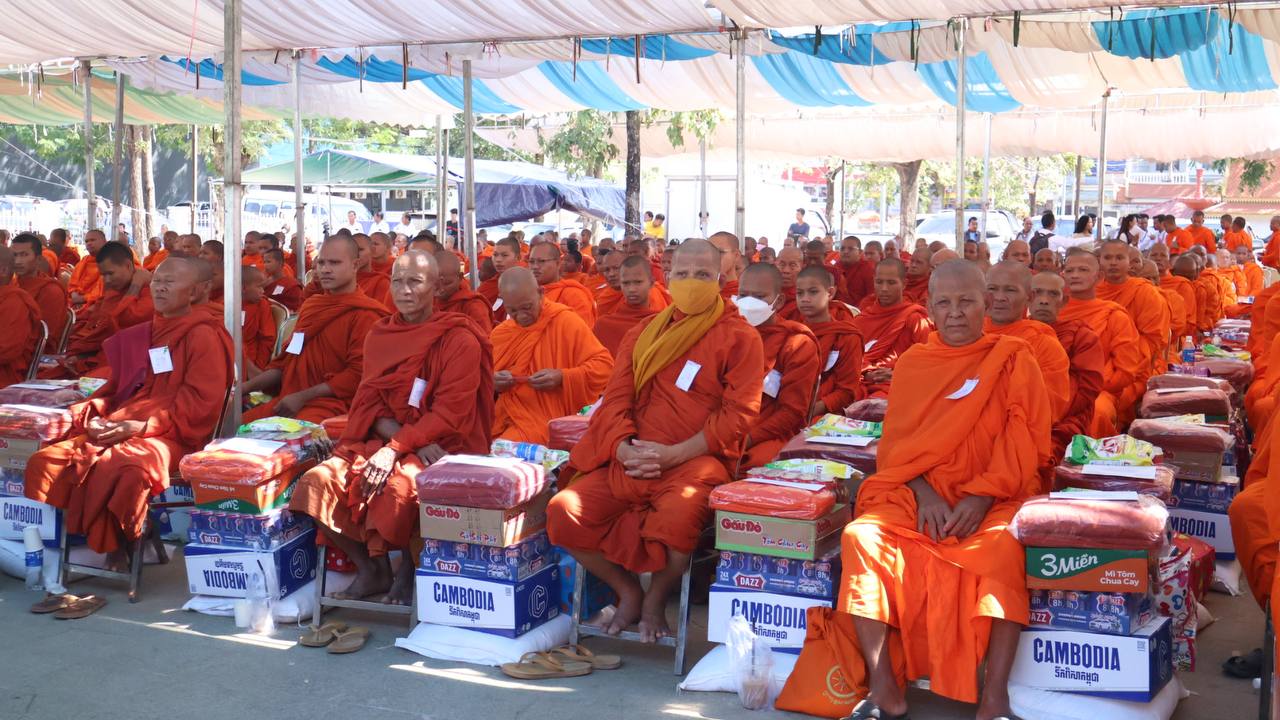 លោក ក៏បានអរព្រះរាជគុណ សម្ដេចព្រះសង្ឃនាយក ដែលបានយាងមកដោយផ្ទាល់ប្រគេនទេយ្យទានដល់ព្រះសង្ឃភៀសសឹក ១៤០០អង្គ នាពេលនេះ។