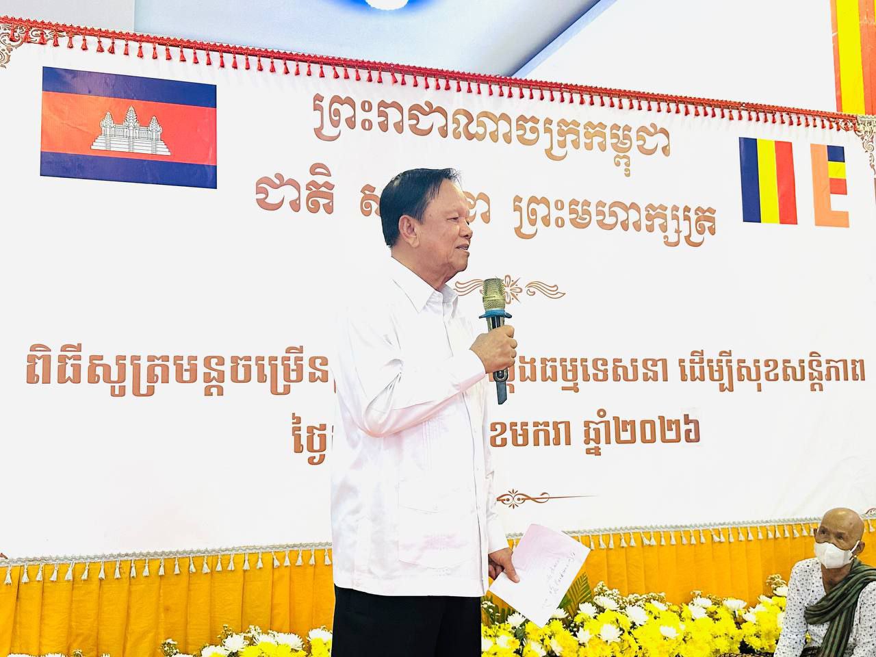 លោកថ្លែងបែបនេះ ក្នុងឱកាសអញ្ជើញរំលឹកខួបលើកទី៤៧ ថ្ងៃ៧មករា និងធ្វើពិធីបួងសួងសុំសេចក្ដីសុខសន្តិភាព ព្រមទាំងឧទ្ទិសកុសលដល់វិញ្ញាណក្ខន្ធវីរកងទ័ពដែលបានពលីនៅសមរភូមិមុខ នៅព្រឹកថ្ងៃទី៧ ខែមករា ឆ្នាំ២០២៦ នៅវត្តគោកពោធិ៍ ស្ថិតក្នុងឃុំគោកពោធិ៍ ស្រុកបូរីជលសារ ខេត្តតាកែវ។