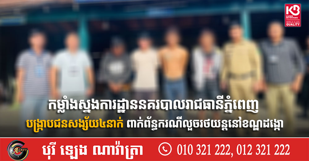 កម្លាំងស្នងការដ្ឋាននគរបាលរាជធានីភ្នំពេញ បង្ក្រាបជនសង្ស័យ៤នាក់ ពាក់ព័ន្ធករណីលួចរថយន្ដនៅខណ្ឌដង្កោ