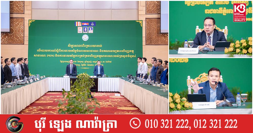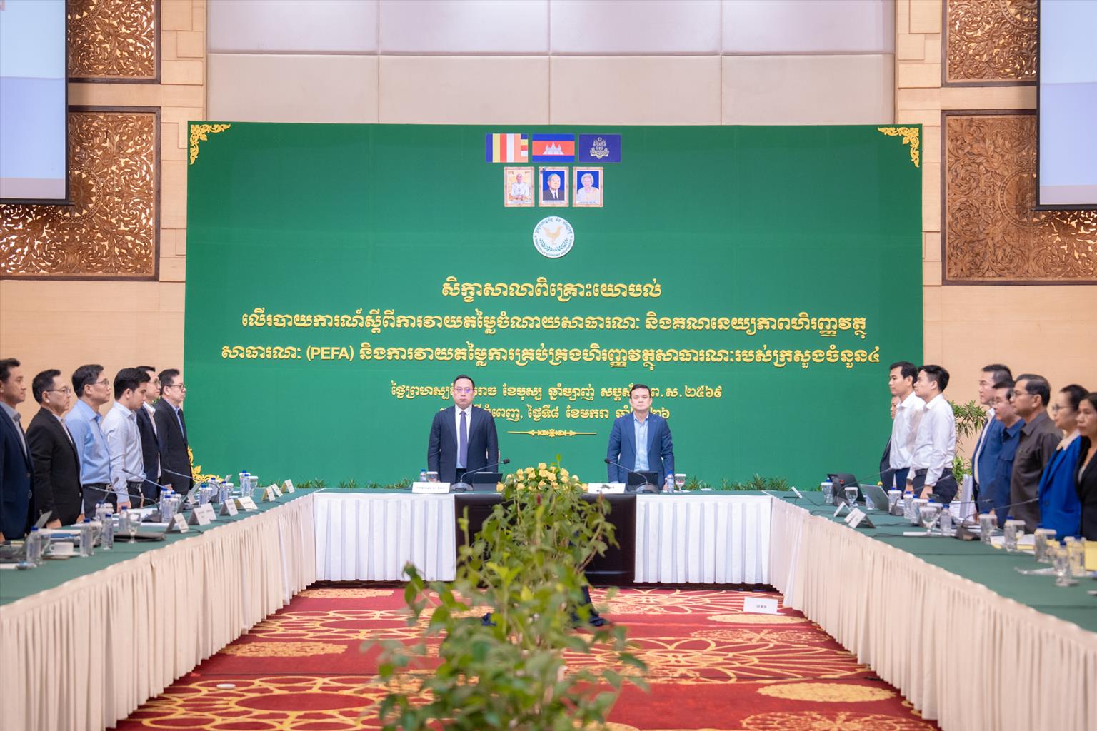 (ភ្នំពេញ)៖ អគ្គលេខាធិការដ្ឋានគណៈកម្មាធិការដឹកនាំការងារកែទម្រង់ ការគ្រប់គ្រងហិរញ្ញវត្ថុសាធារណៈ (អ.គ.ហ.) នៃក្រសួងសេដ្ឋកិច្ច និងហិរញ្ញវត្ថុ នាថ្ងៃទី៨ ខែមករា ឆ្នាំ២០២៦នេះ បានរៀបចំសិក្ខាសាលាពិគ្រោះយោបល់លើរបាយការណ៍ ស្តីពីការវាយតម្លៃចំណាយសាធារណៈ និងគណនេយ្យភាពហិរញ្ញវត្ថុសាធារណៈ និងការវាយតម្លៃប្រព័ន្ធហិរញ្ញវត្ថុសាធារណៈ របស់ក្រសួងចំនួន៤ គឺក្រសួងកសិកម្ម រុក្ខាប្រមាញ់ និងនេសាទ, ក្រសួងធនធានទឹក និងឧតុនិយម, ក្រសួងសាធារណការ និងដឹកជញ្ចូន និងក្រសួងការងារ និងបណ្តុះណ្តាលវិជ្ជាជីវៈ។