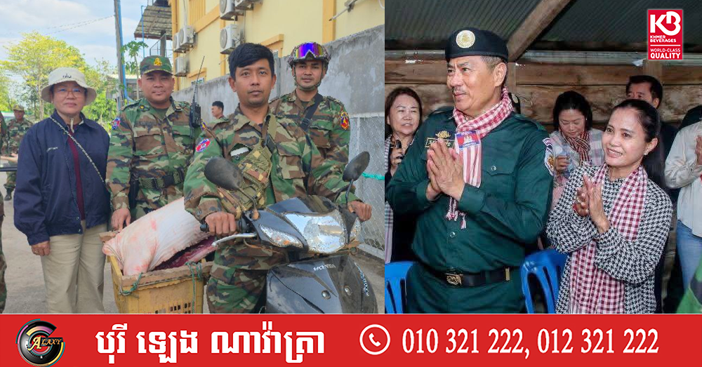 កាលពីម្សិលមិញ លោកស្រី លីម ដារ៉ែន ជួនណារិន្ទ បានឧបត្ថម្ភជ្រូកចំនួន២០ក្បាល ដល់កម្លាំងយោធាដែលឈរជើងនៅជួរមុខទិសប្រាសាទព្រះវិហារ តាថាវ និងភ្នំ៣៩៨ផងដែរ។