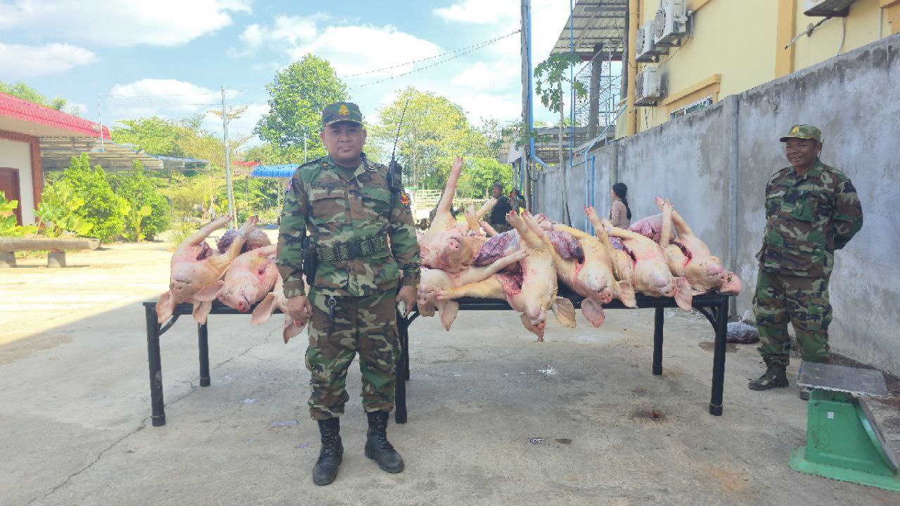 លោកស្រី លីម ដារ៉ែន ជួនណារិន្ទ បន្ដឧបត្ថម្ភជ្រូក១២ក្បាល ដល់កម្លាំងកងពលតូចអន្ដរាគមន៍លេខ៧ ឈរជើងទិសភ្នំខ្មោច ខេត្តព្រះវិហារ