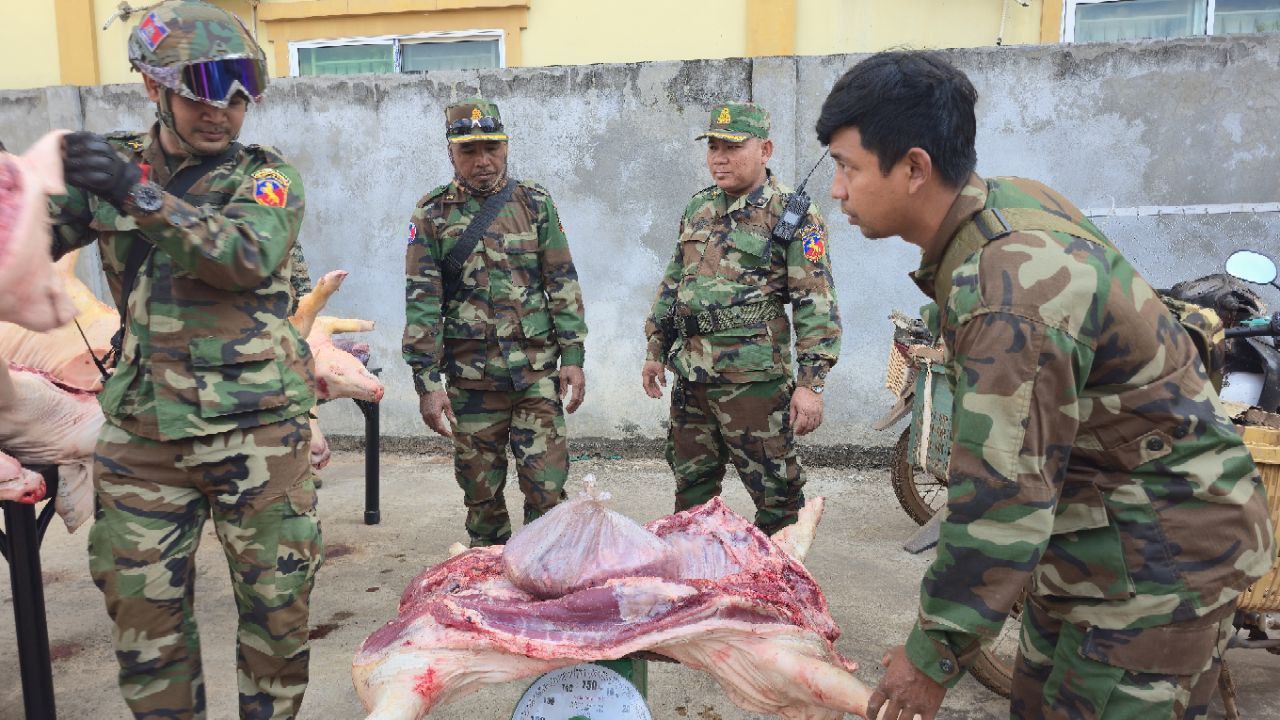 (ព្រះវិហារ)៖ លោកស្រី លីម ដារ៉ែន ភរិយាលោកឧត្តមសេនីយ៍ឯក ជួន ណារិន្ទ អគ្គស្នងការរង និងជាស្នងការនគរបាលរាជធានីភ្នំពេញ បានបន្ដឧបត្ថម្ភសាច់ជ្រូកចំនួន១២ក្បាល ដល់កម្លាំងទាំង៤វរសេនាតូច និងកម្លាំង នៃកងពលតូចអន្ដរាគមន៍លេខ៧ ឈរជើងទិសភ្នំខ្មោច ខេត្តព្រះវិហារ។