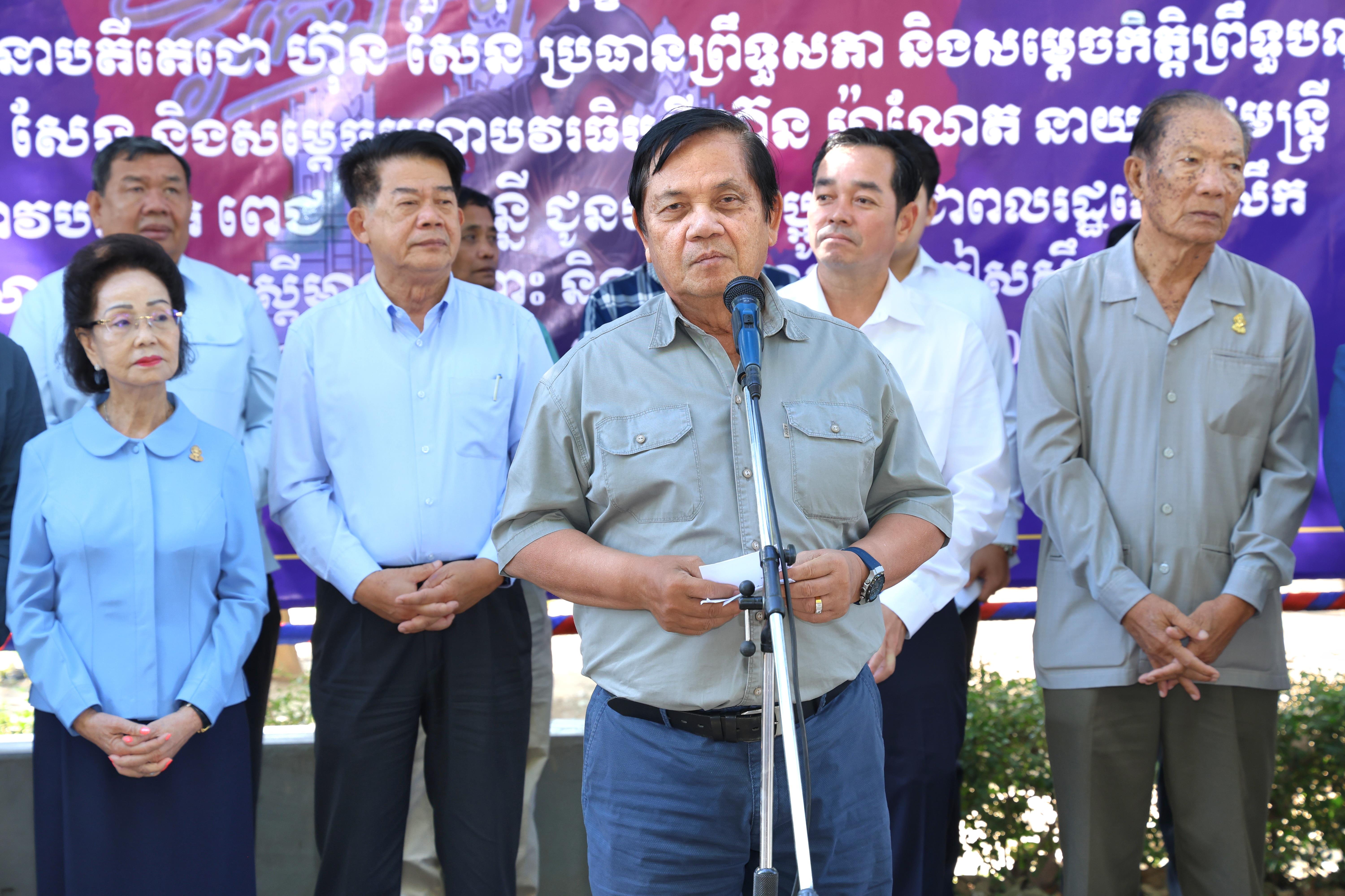 លោក បានបន្ថែមថា សម្ដេចតេជោ ហ៊ុន សែន ដែលជាអគ្គមគ្គុទេសក៍ជាតិដ៏ឆ្នើម និងជាស្ថាបនិកសន្តិភាពប្រទេសជាតិ ព្រមទាំង សម្តេចធិបតី ប្រមុខរាជរដ្ឋាភិបាល ដែលពោរពេញដោយថាមពលនិងបញ្ញាញាណឈ្លៀសវៃ តែងតែយកចិត្តទុកដាក់ខ្ពស់ចំពោះសុខទុក្ខរបស់បងប្អូនប្រជាពលរដ្ឋទាំងអស់ដែលបានភៀសខ្លួនចេញពីលំនៅឋាន និងវីរយុទ្ធជនដែលបាននឹងកំពុងឈរជើងយ៉ាងរឹងមាំ តស៊ូ ក្រាញននៀល ការពារទឹកដីមាតុភូមិកម្ពុជា និងបានផ្តល់អនុសាសន៍ដ៏ខ្ពង់ខ្ពស់ថ្លៃថ្លាដល់គ្រប់សមាជិក សមាជិការព្រឹទ្ឋសភា និងអាជ្ញាធរគ្រប់ជាន់ថ្នាក់ទាំងអស់ ឱ្យយកចិត្តទុកដាក់ជួយសម្រួល ដោះស្រាយការលំបាក ខ្វះខាត និងថែទាំសុខភាព ដល់បងប្អូនទាំងអស់នៅក្នុងកាលៈទេសៈដ៏លំបាកនេះ។